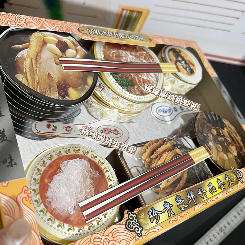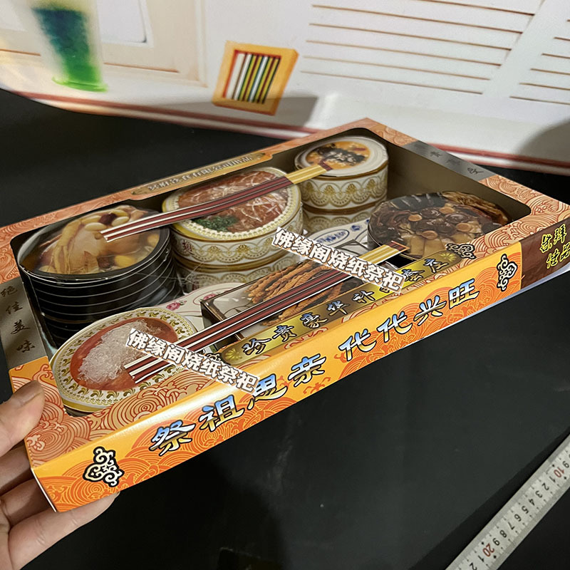 盒装营养补品人参鲍鱼海参烧纸五七忌日清明寒衣节祭祀用品