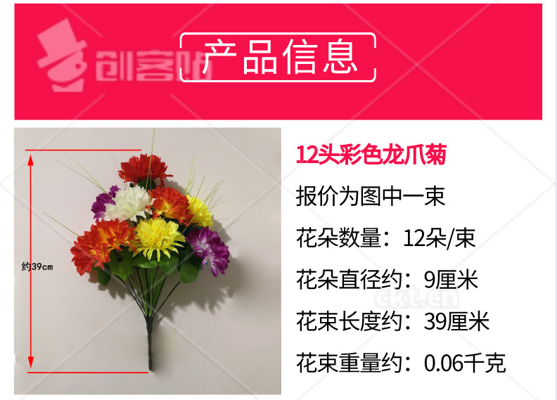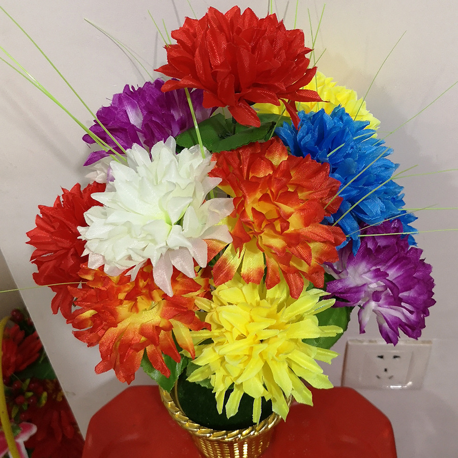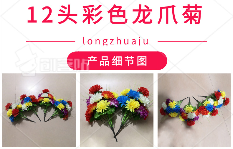12头彩色龙爪菊花清明祭祀祭祖陵园装饰仿真佛供扫墓小花雏菊绢花