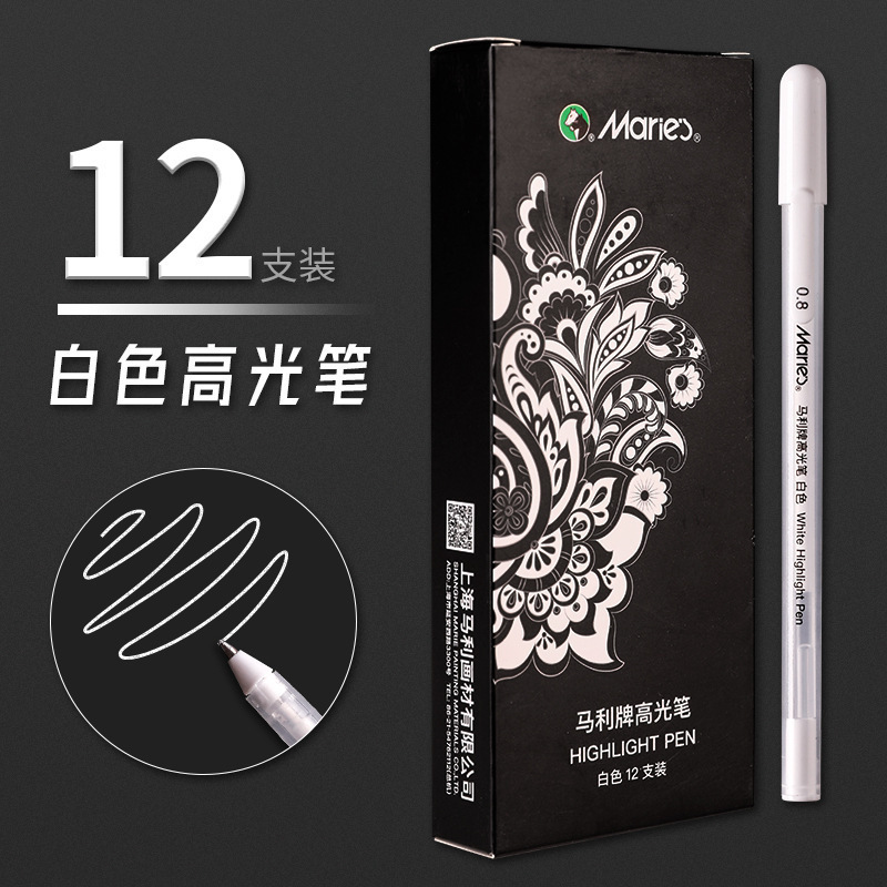 马利白色高光笔绘画笔签字笔手绘马克美术高光白笔单支美术专用笔