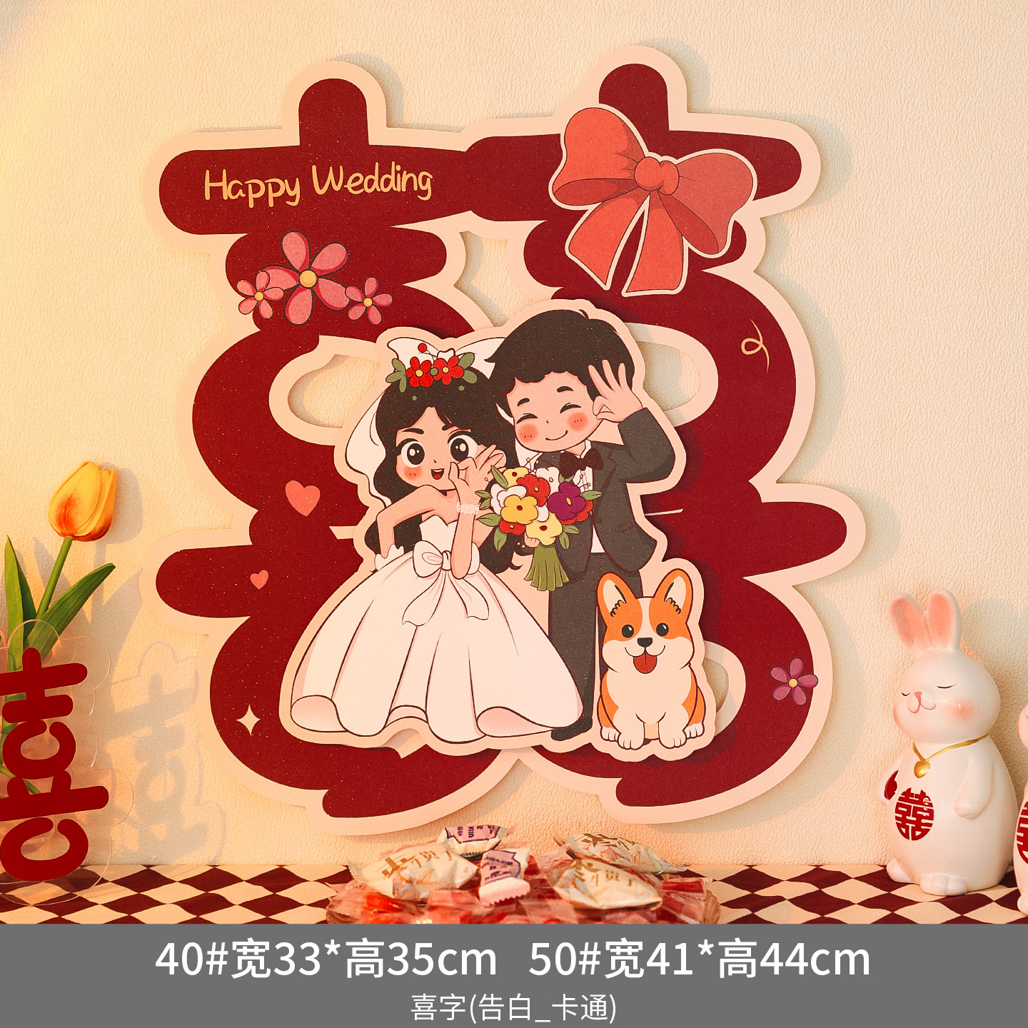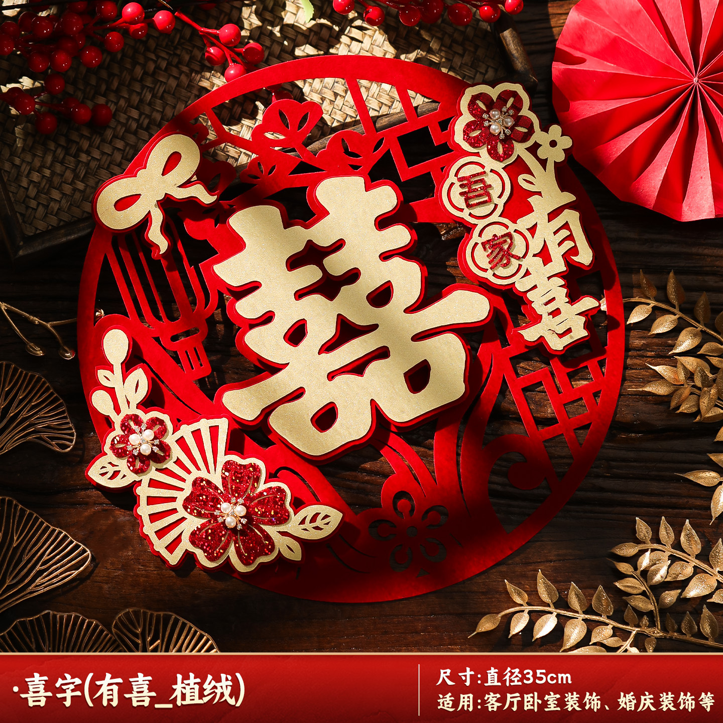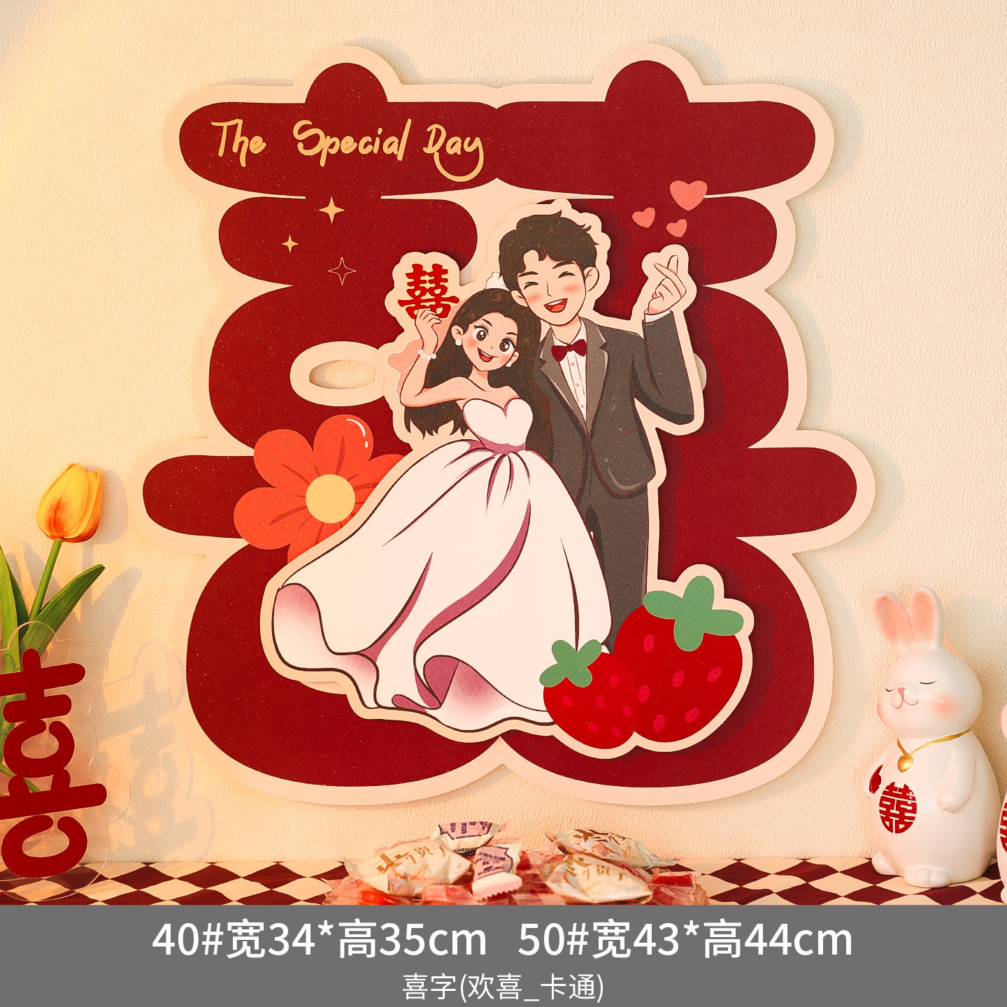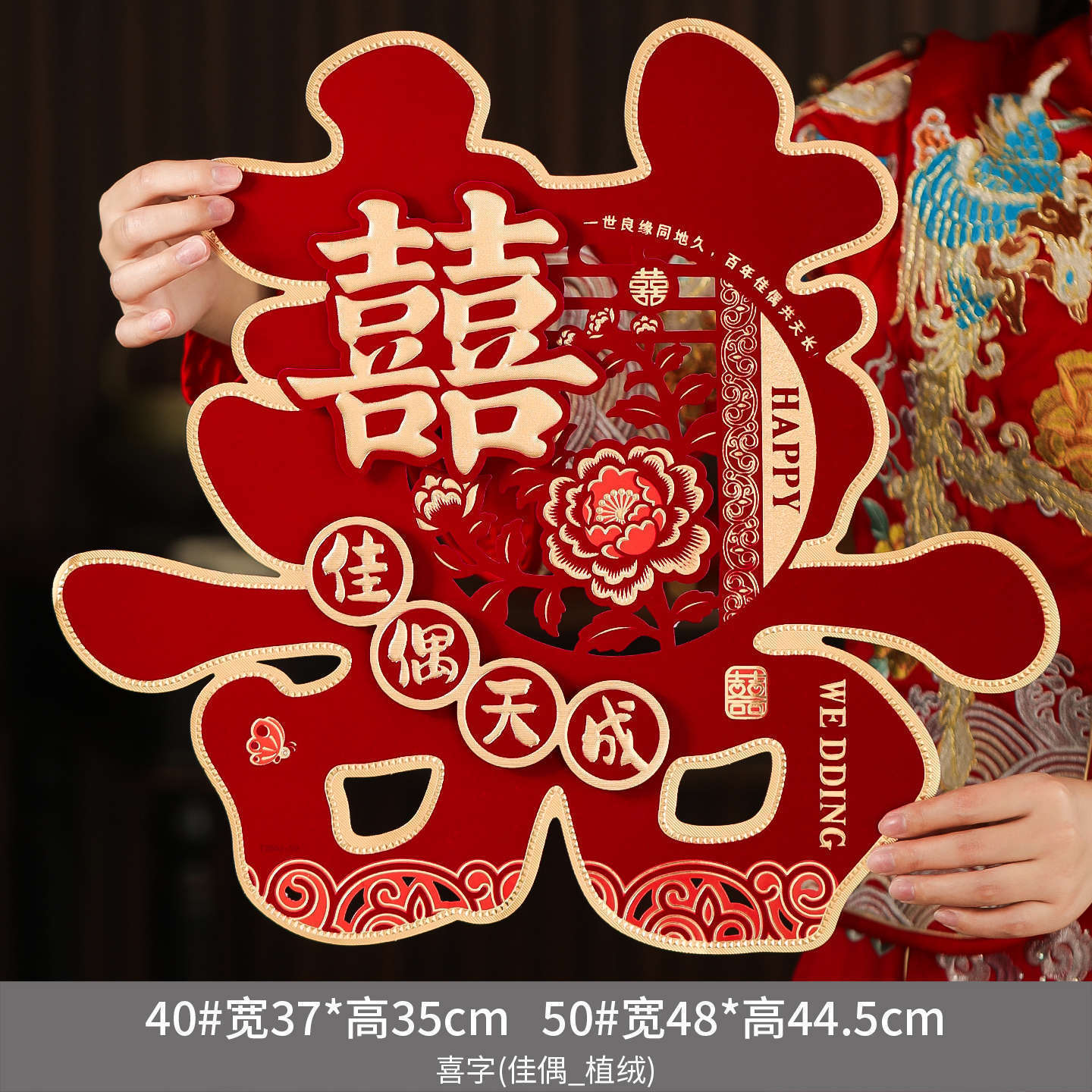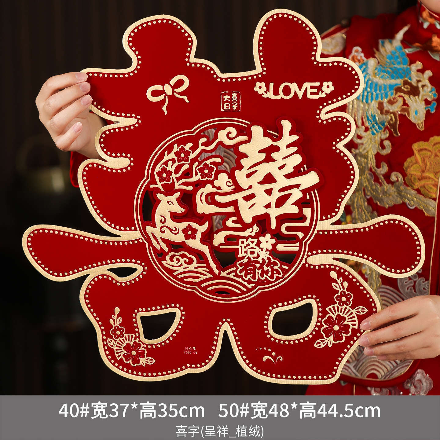 喜字贴结婚专用婚房布置装饰婚礼客厅入户男女方卧室门喜立体贴纸结婚喜字专用婚房入户门贴大门卧室婚礼布置卡通窗花囍字贴纸装饰