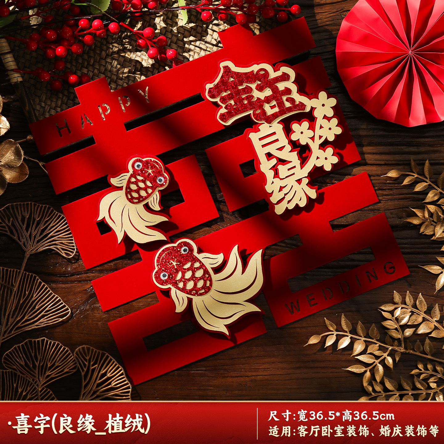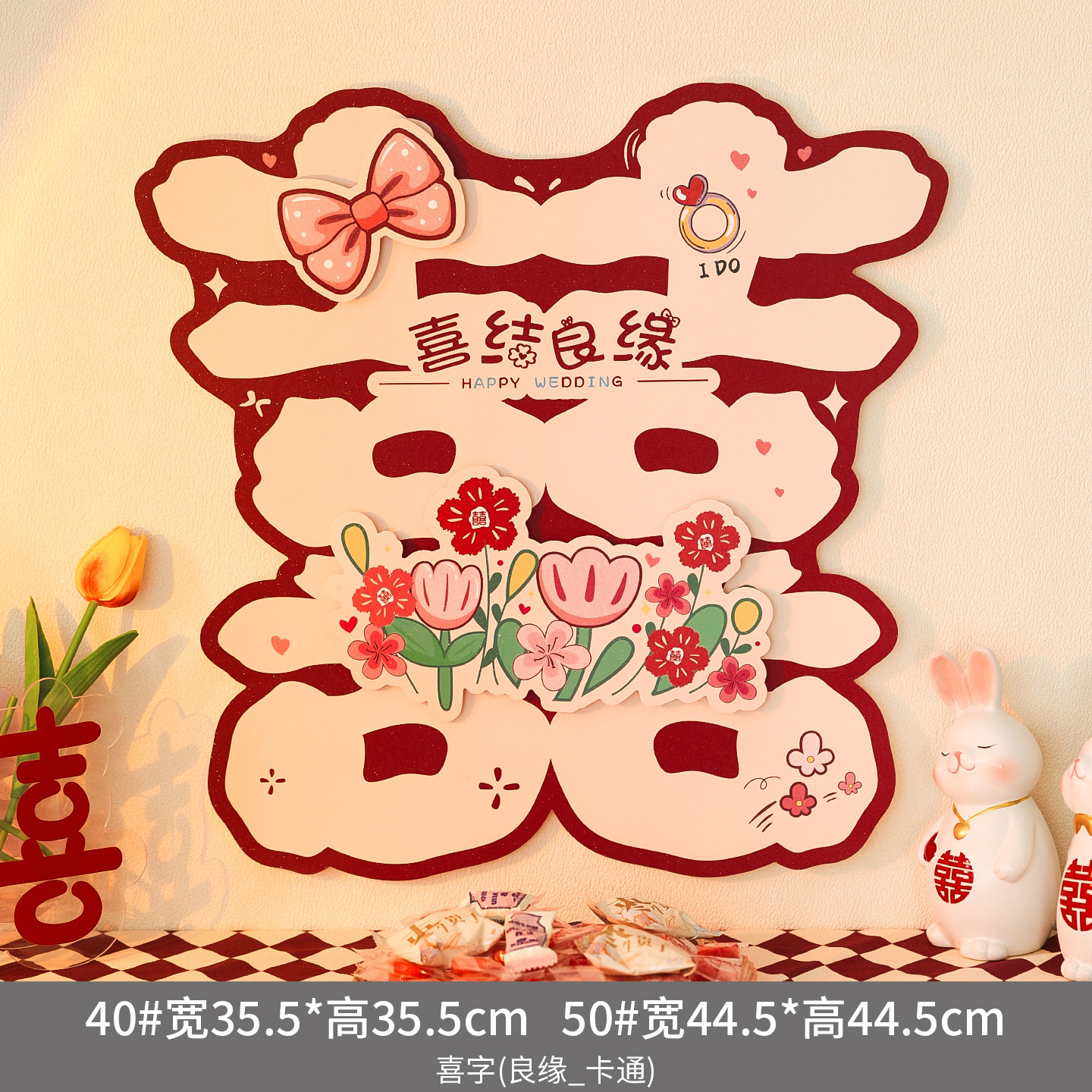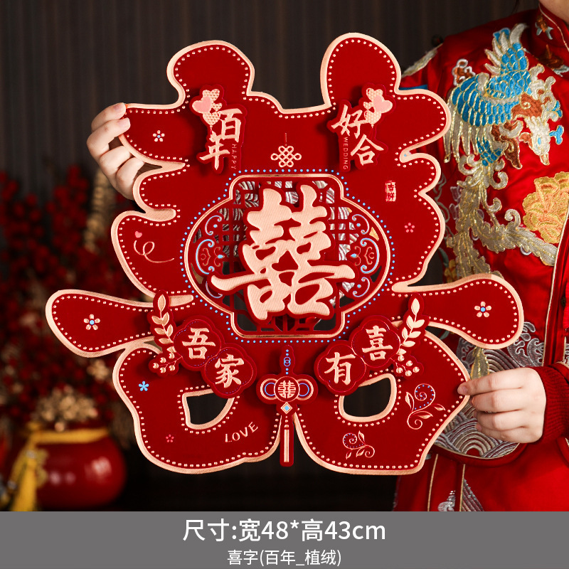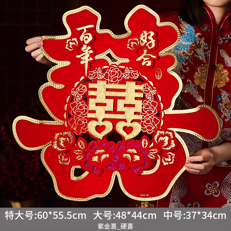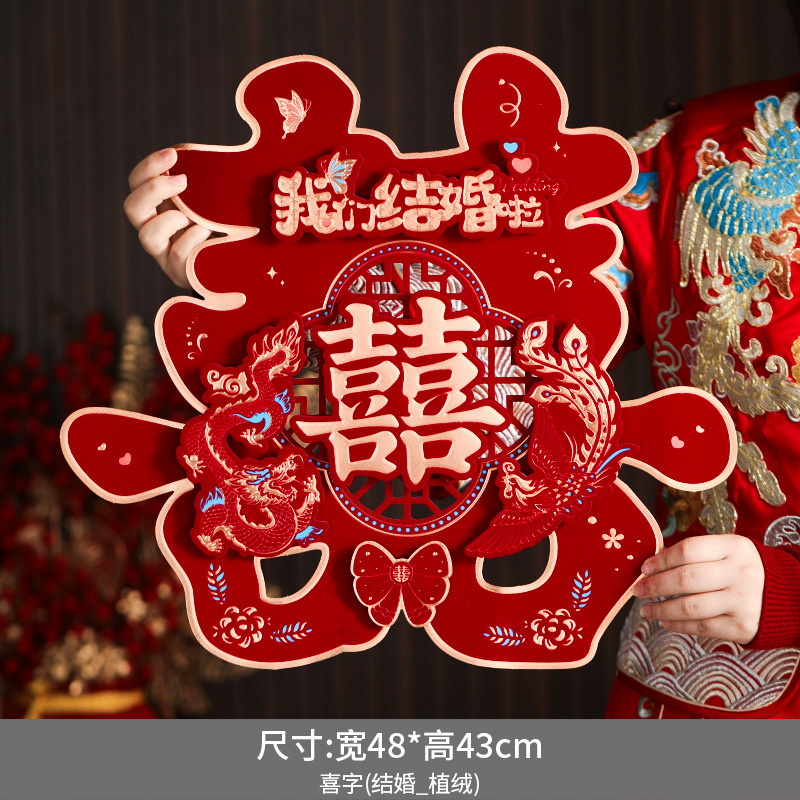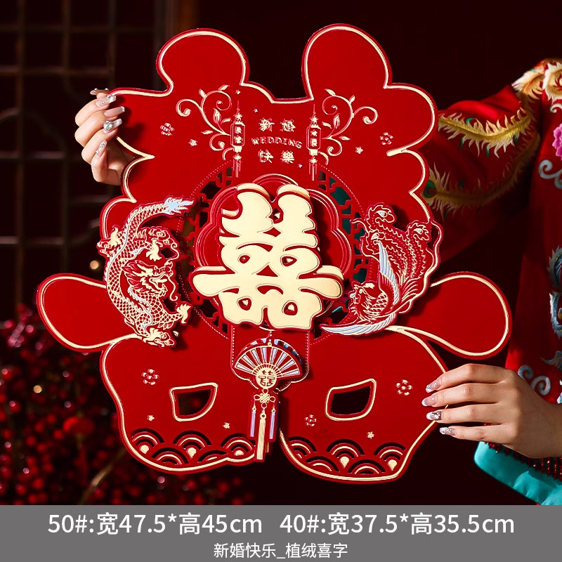 喜字贴结婚专用婚房布置装饰婚礼客厅入户男女方卧室门喜立体贴纸结婚喜字专用婚房入户门贴大门卧室婚礼布置卡通窗花囍字贴纸装饰