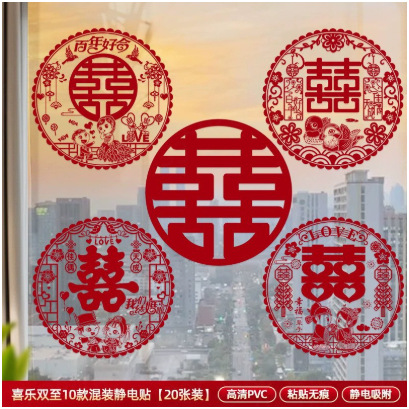 喜字结婚专用静电贴窗户玻璃囍字贴婚礼婚房布置婚车装饰窗花囍字