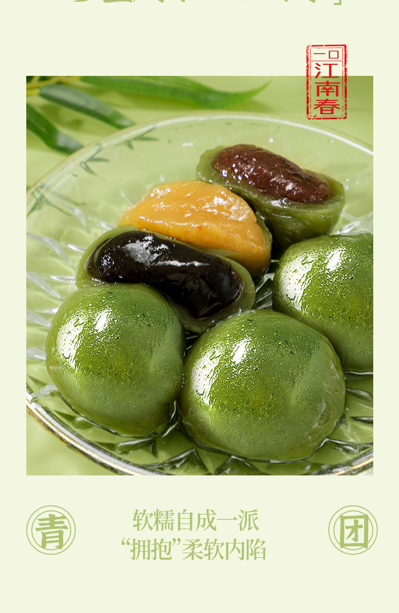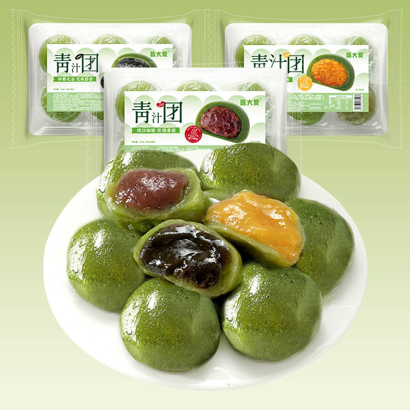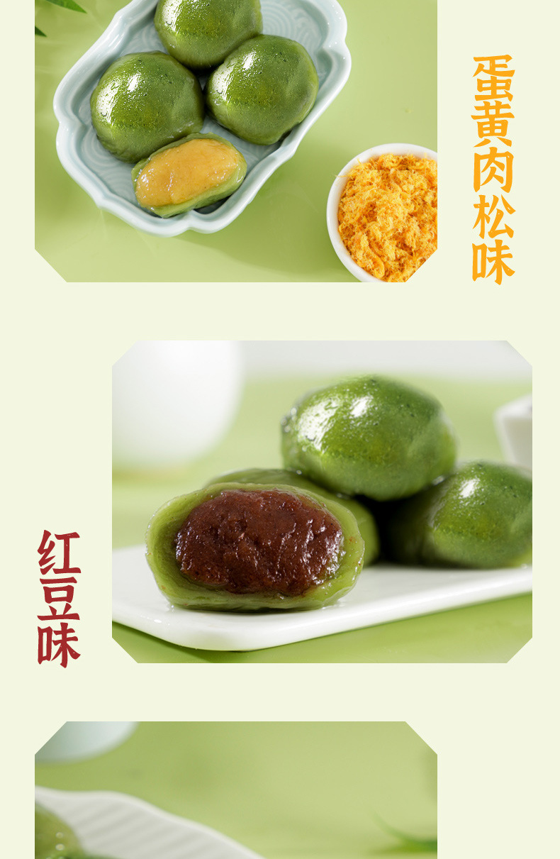 艾草青汁团子蛋黄肉松豆沙芝麻糯米滋雪媚娘网红零食清明特产糕点
