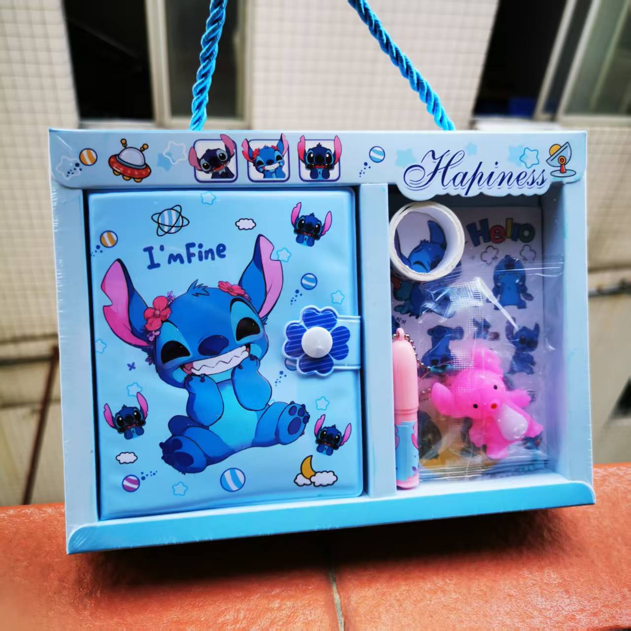 手账礼盒套装 内含彩色内页手账本+贴纸+卡通挂件+胶带+笔