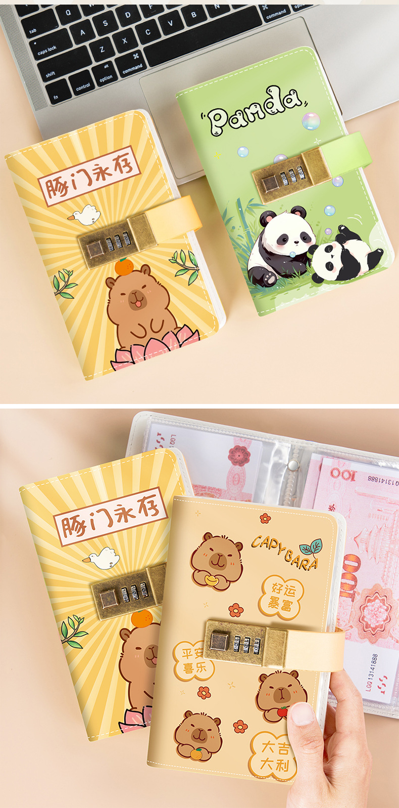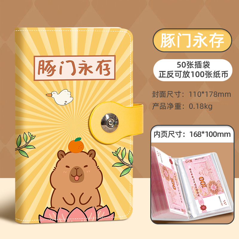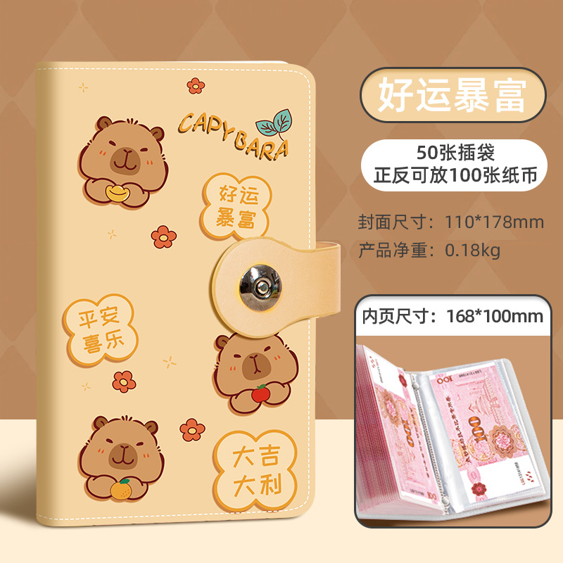 卡皮巴拉存钱本记账本现金收纳袋小学生家庭带锁理财存钱袋手账本