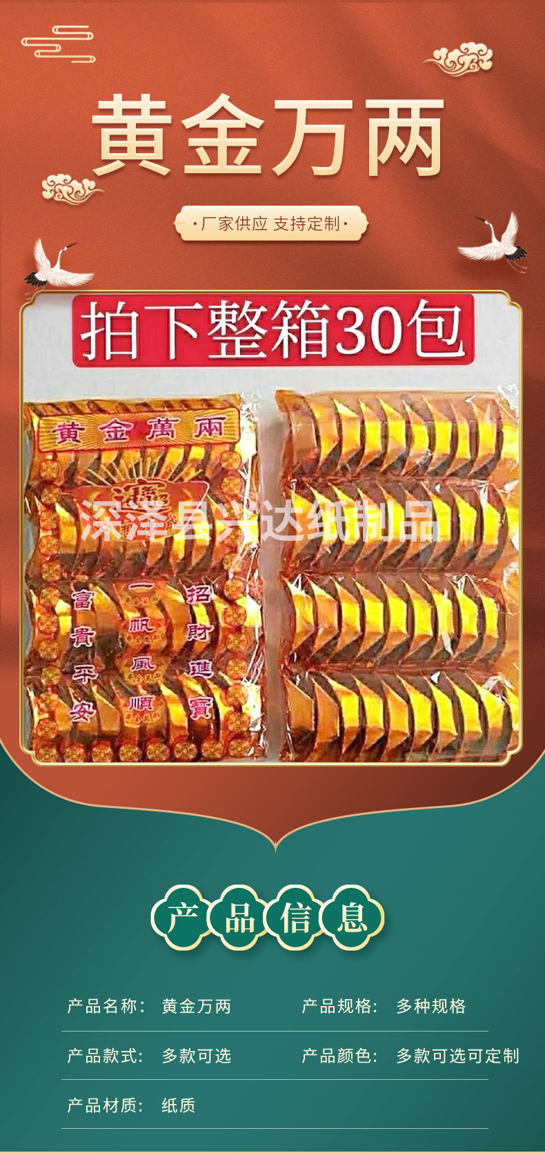 祭祀用品金元宝黄金万两整箱清明节祭祖冥币纸钱银元宝烧纸上坟