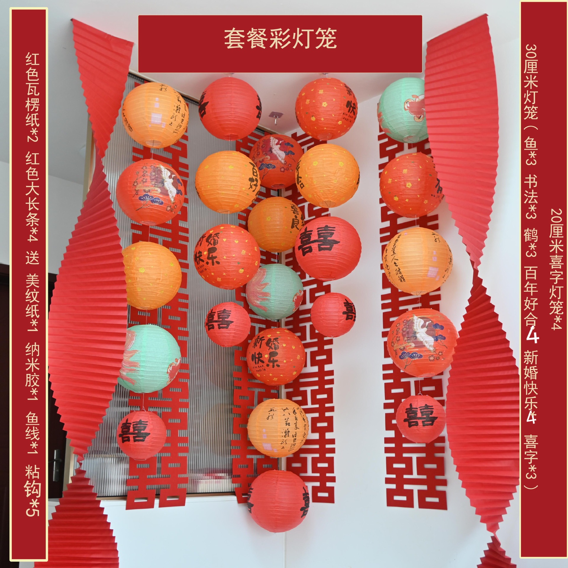 国庆节古风灯笼商场店铺活动场景布置折叠灯笼挂串立柱装饰道具