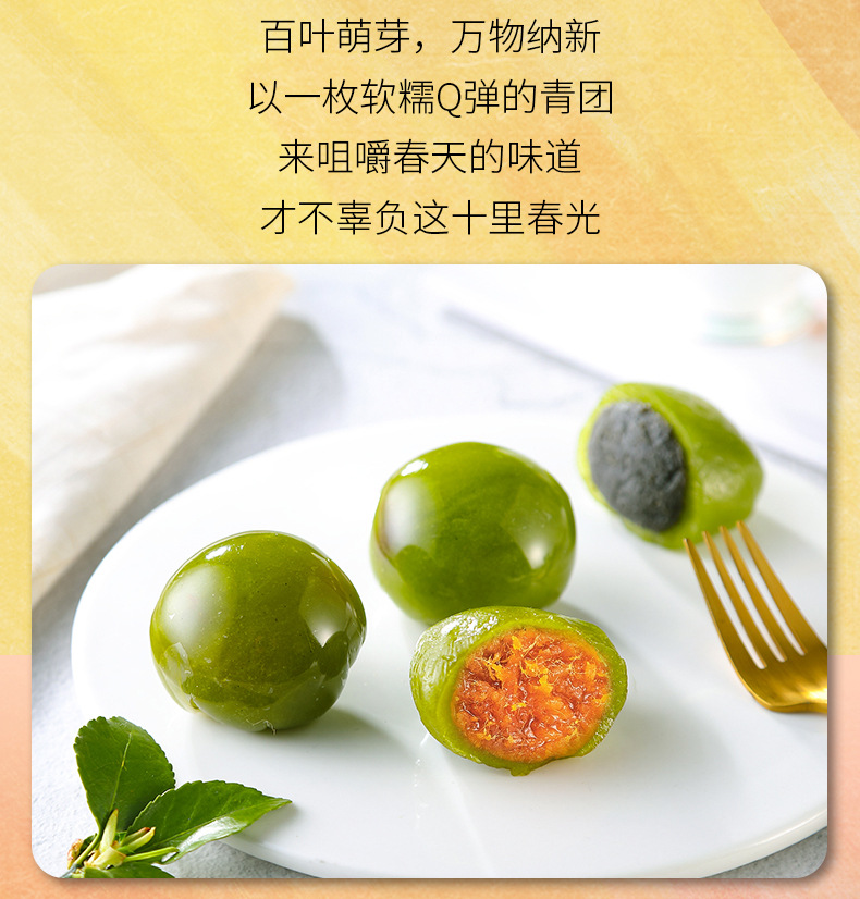 刻凡时令青团蛋黄肉松黑芝麻红豆沙清明果手工小吃网红零食糕点