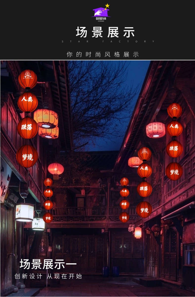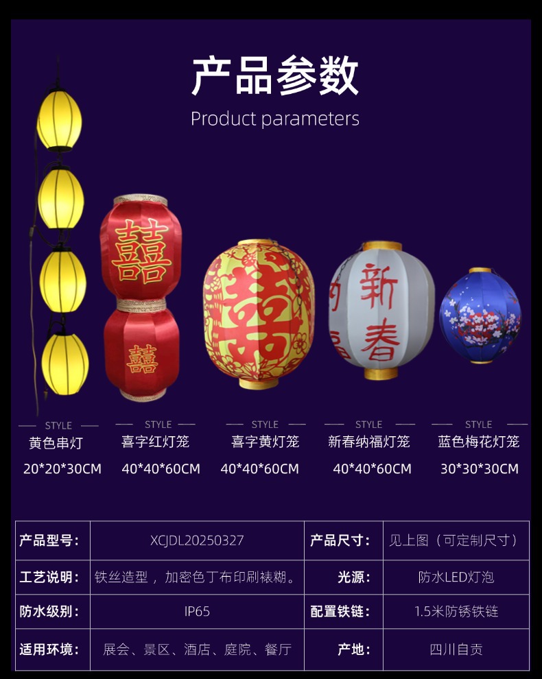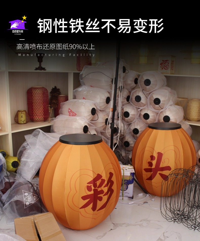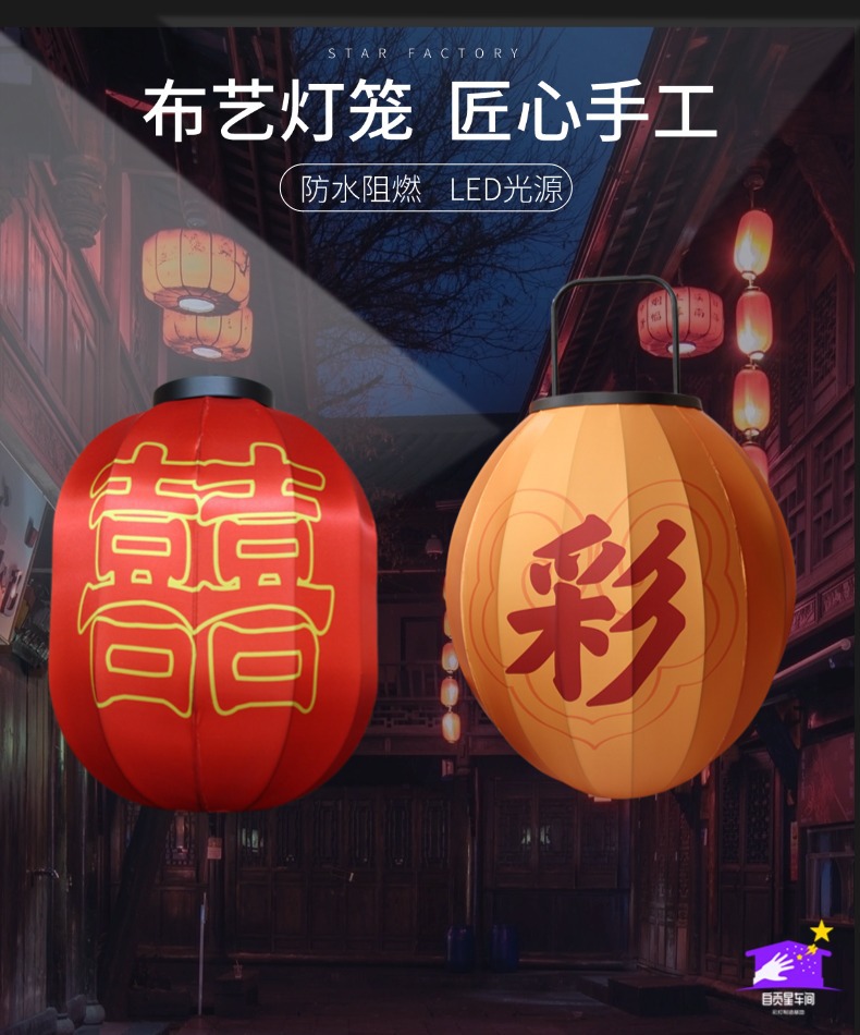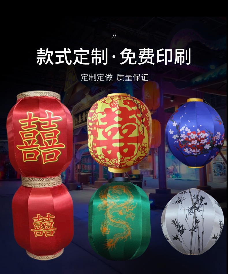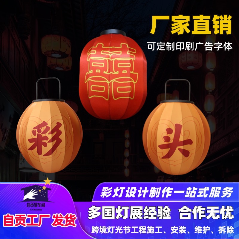 布艺灯笼户外古风装饰挂件喜字灯笼蛇年花灯婚庆展会火锅店冬瓜型