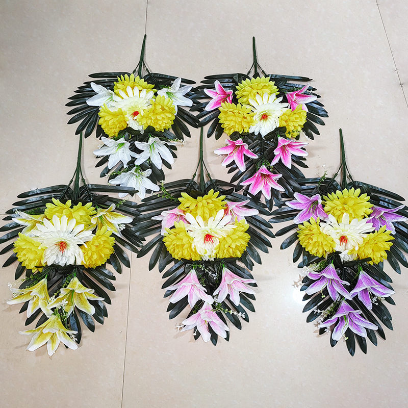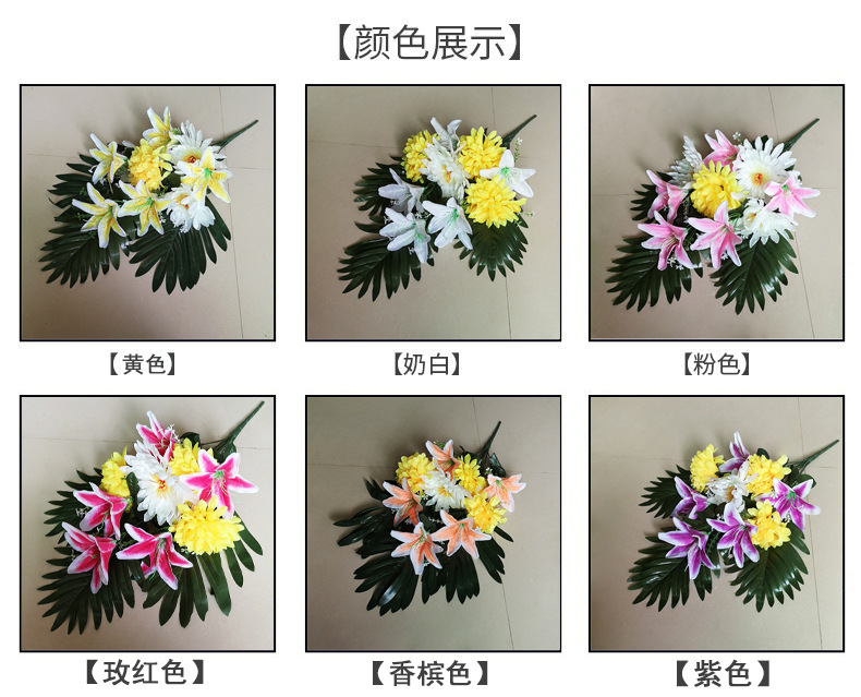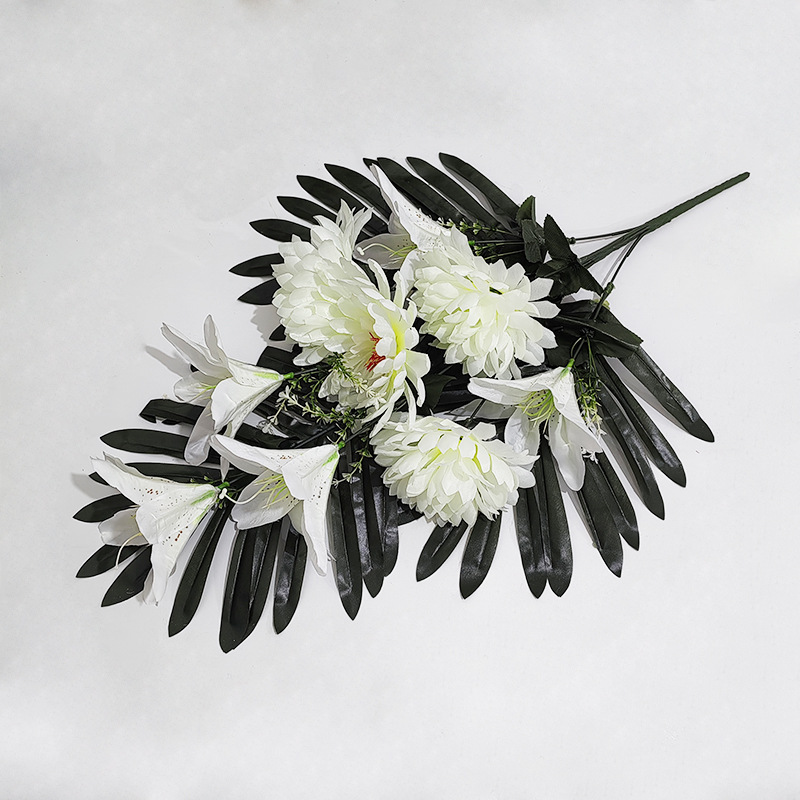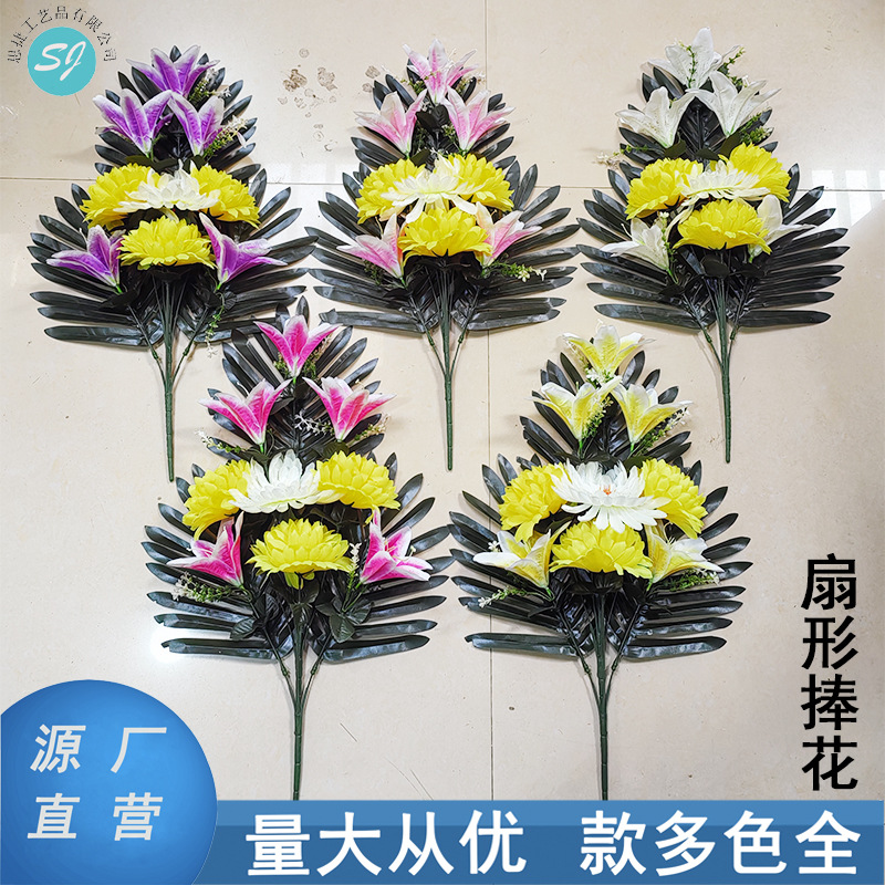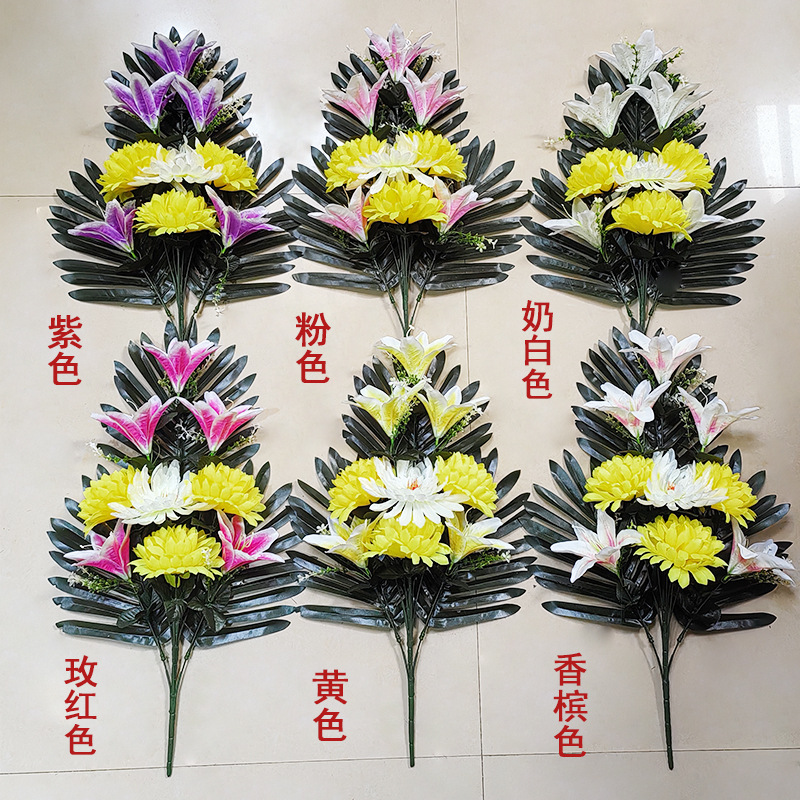 清明花束手捧花仿真花祭祀假花百合菊花追思祭祖扫墓厂家直销批发