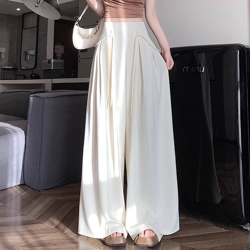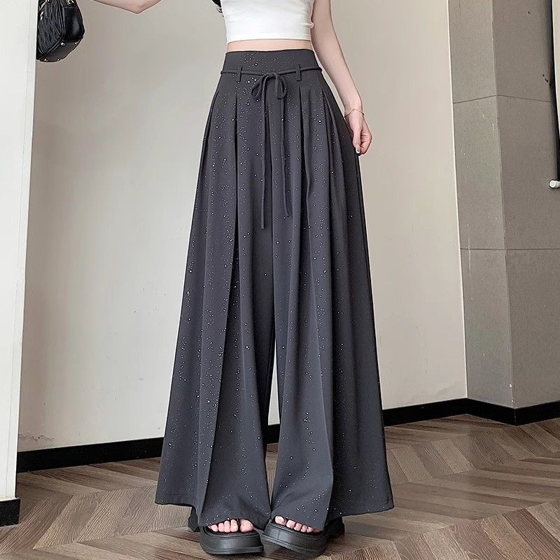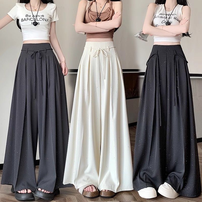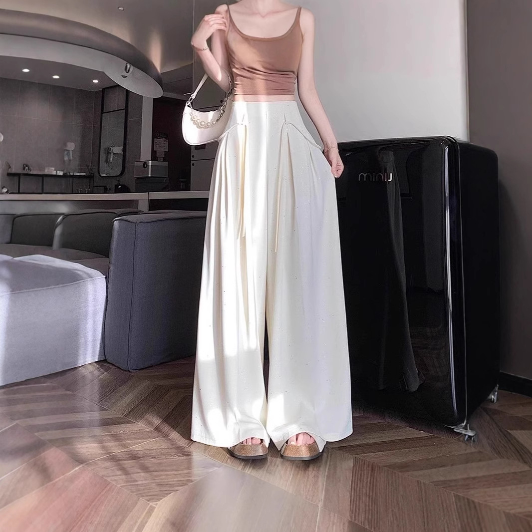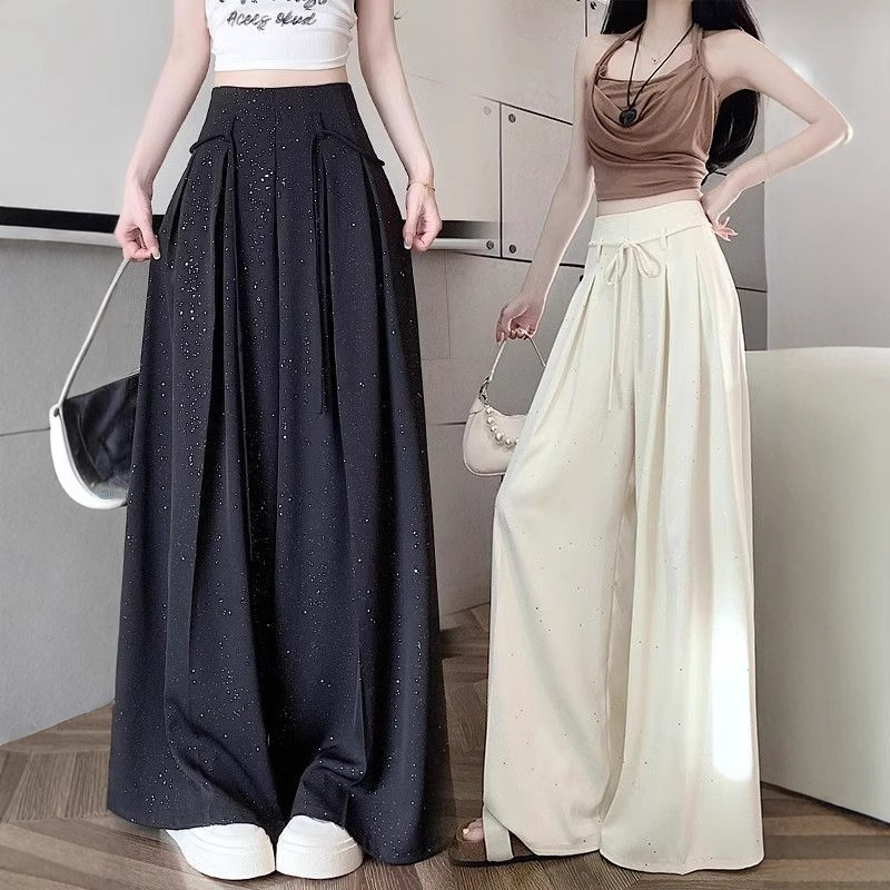 细闪亮片西装休闲裤女2026夏季新款垂坠感高腰显瘦阔腿裙裤拖地裤