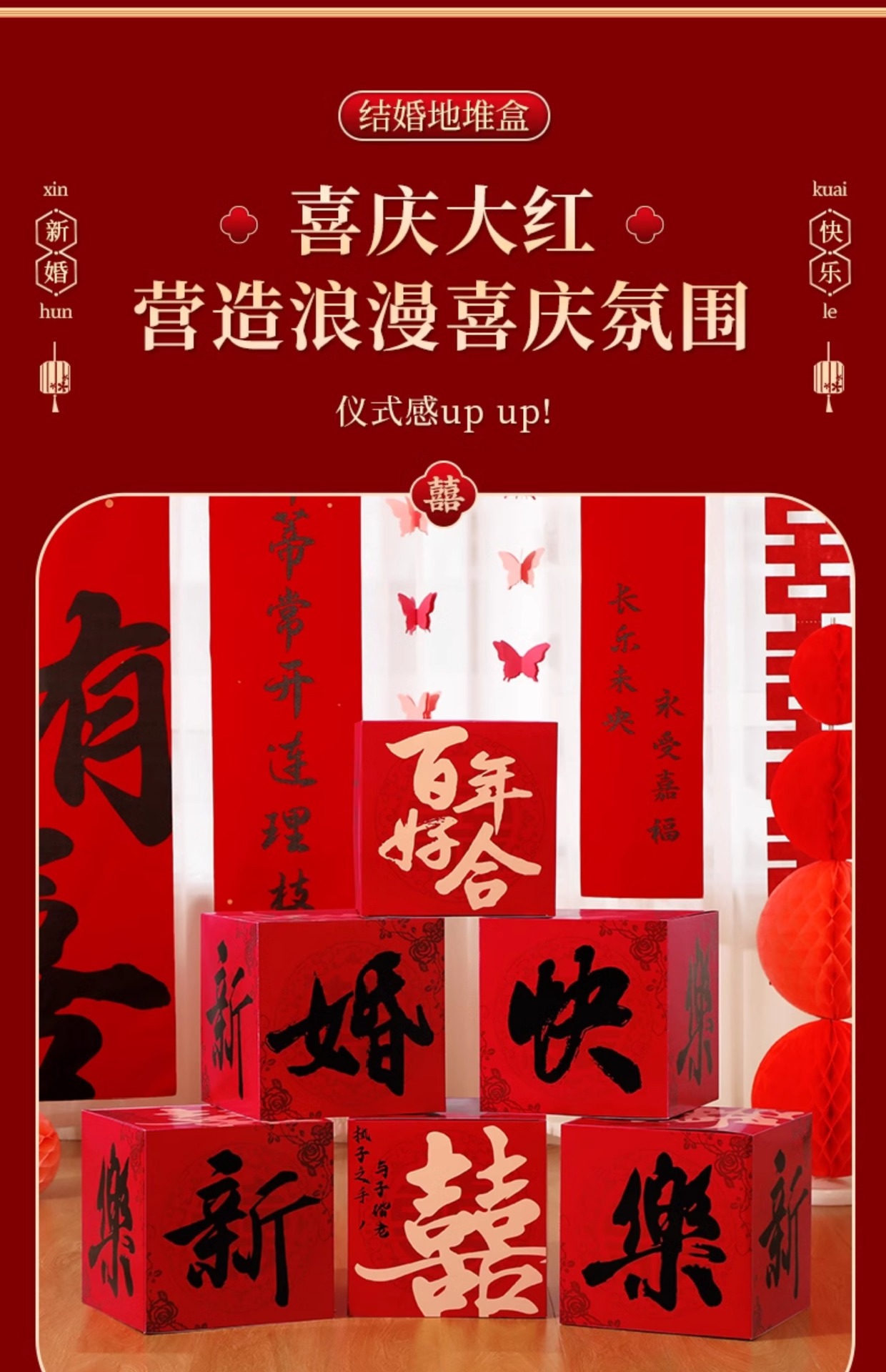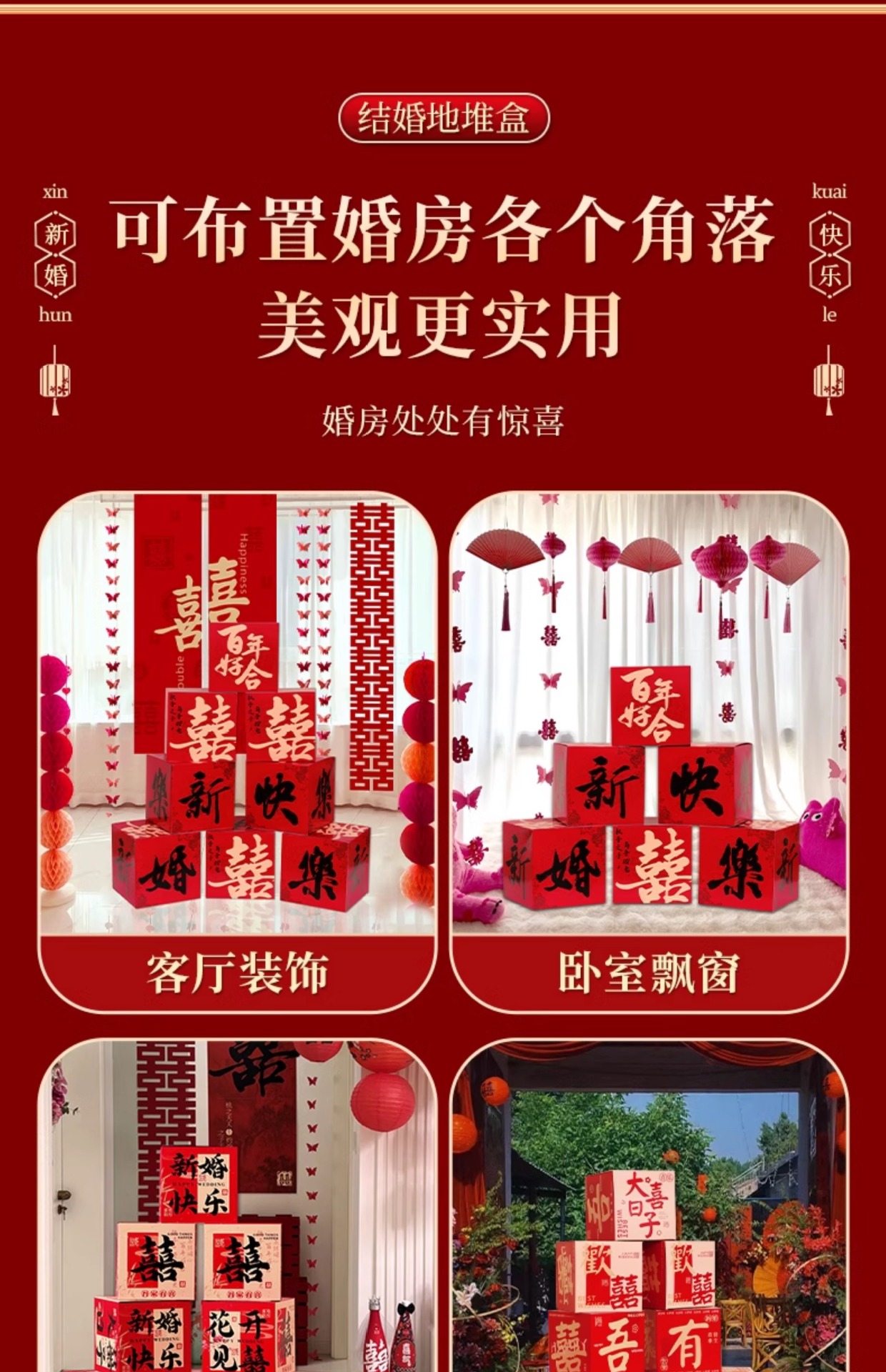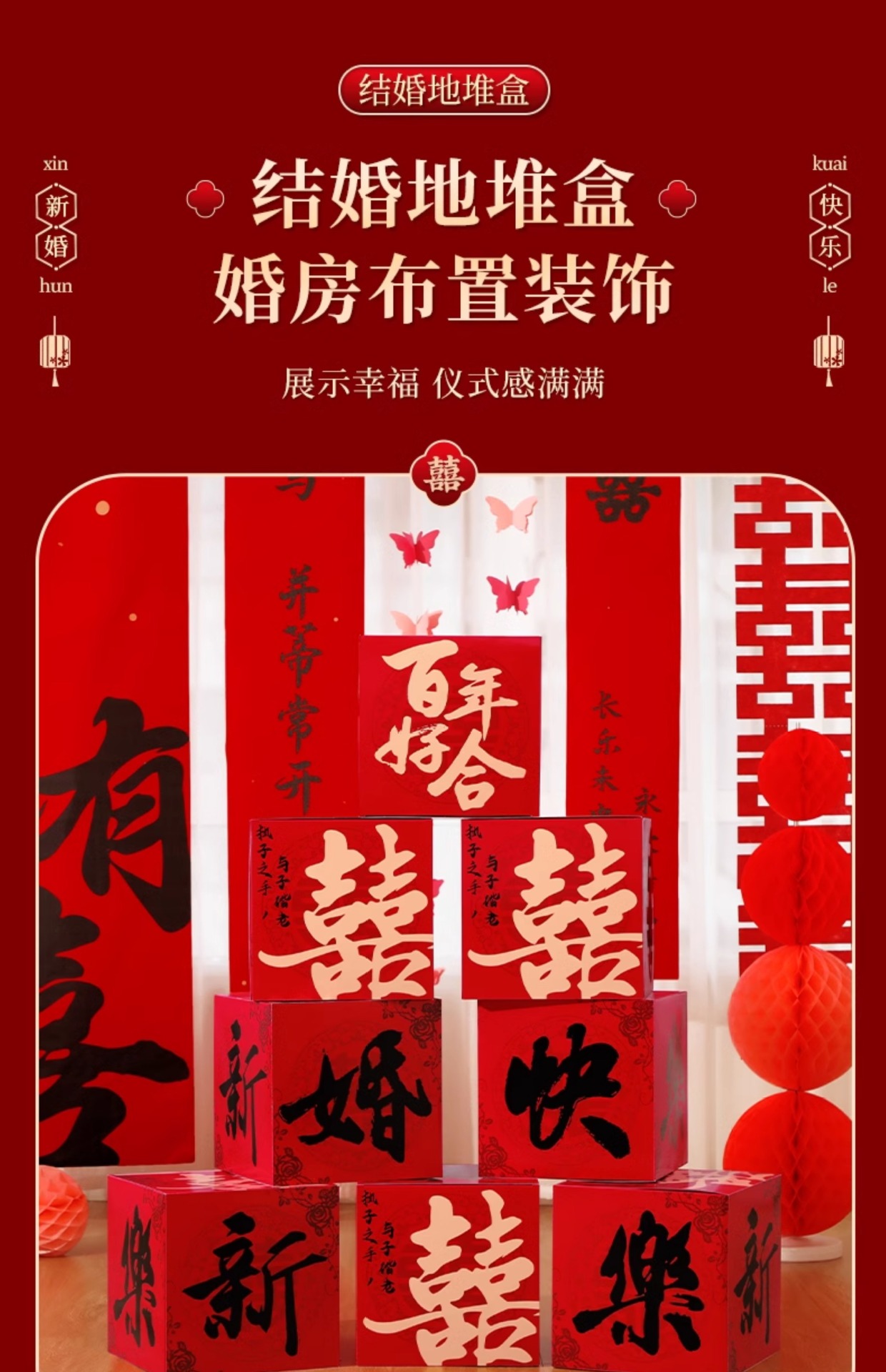婚房布置套装男方客厅喜字结婚装饰落地摆件堆头女方婚礼拍照道具