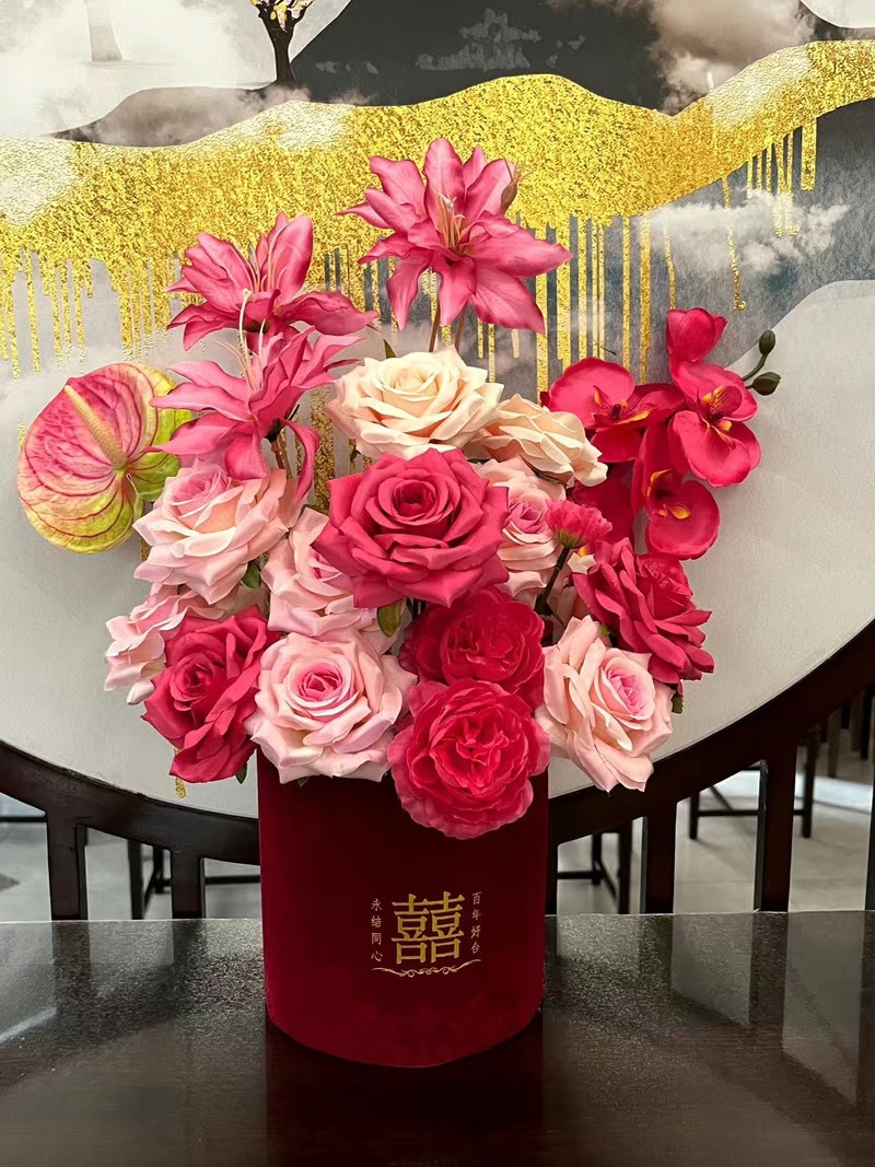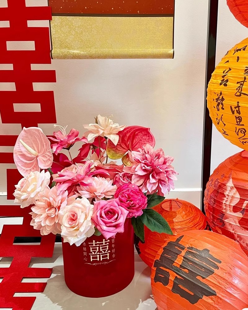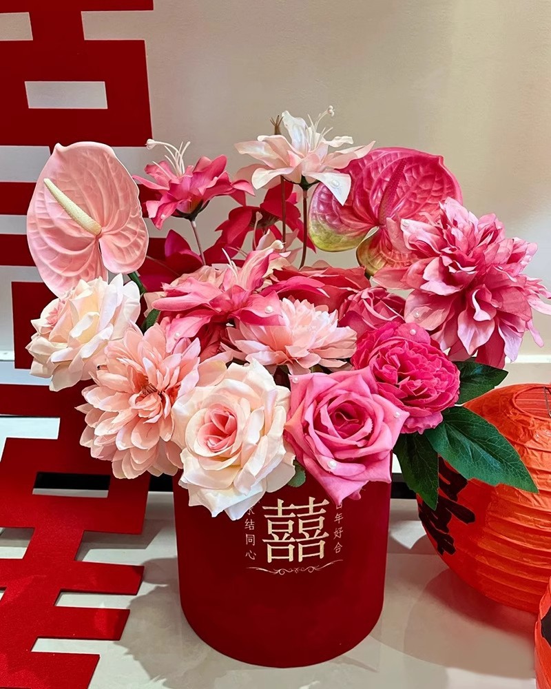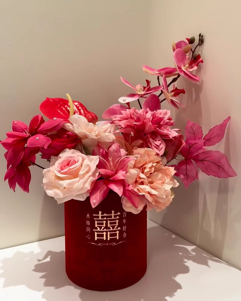 婚房布置仿真花结婚假花抱抱桶小红书婚礼卧室床头装饰花摆件包邮