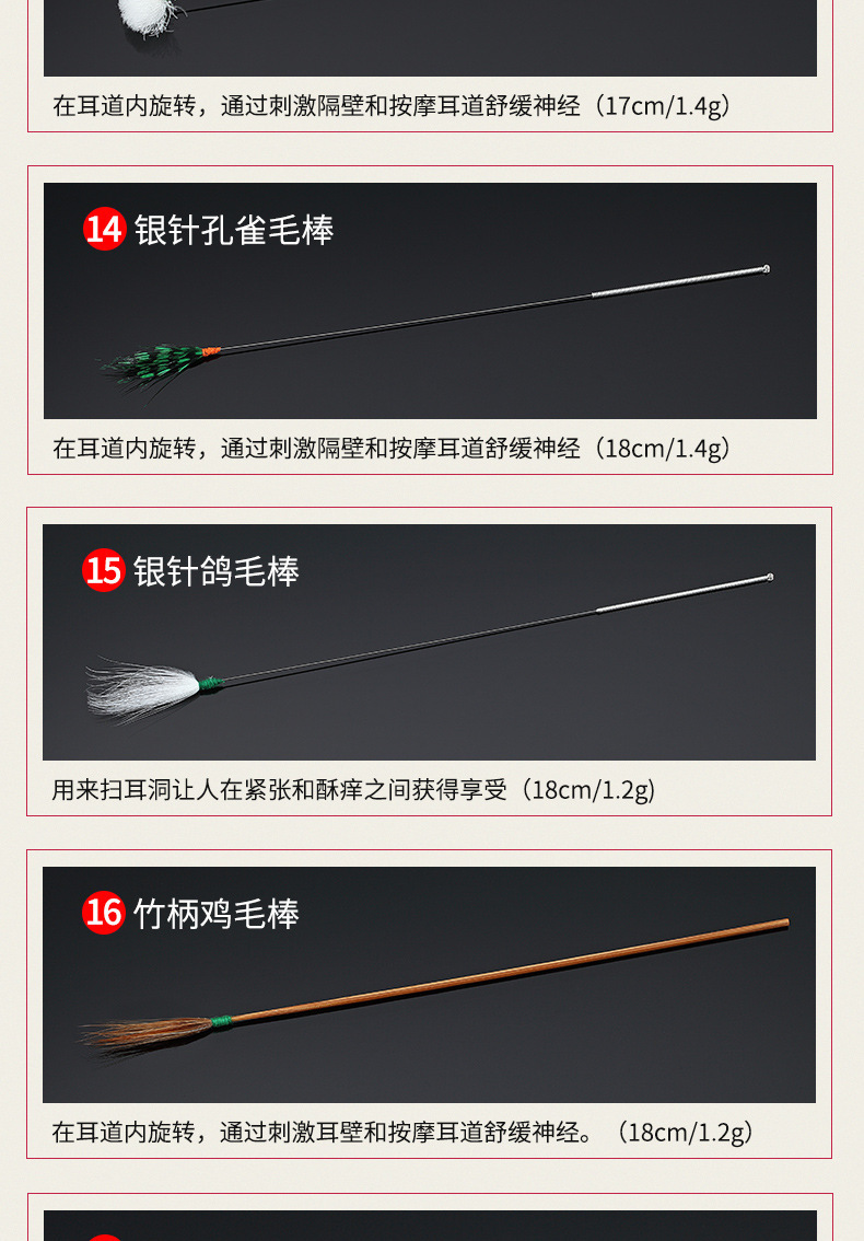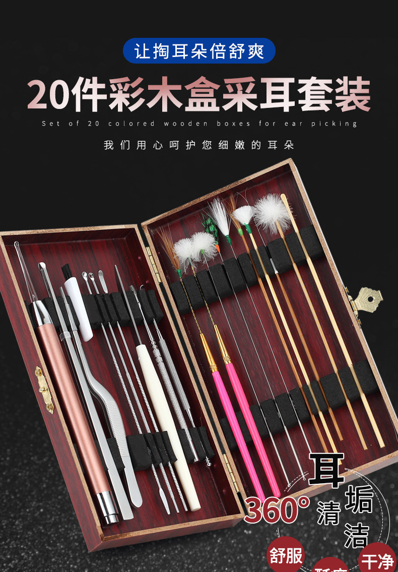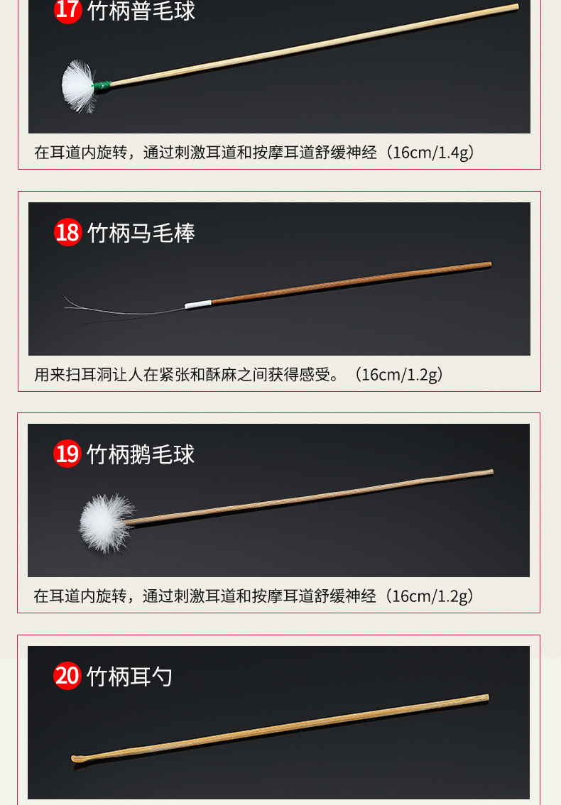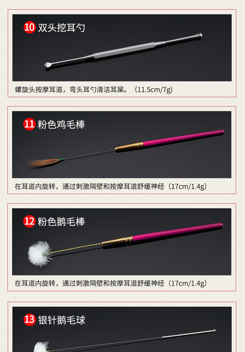现货采耳工具套装鹅毛棒挖耳勺按摩清洁耳道采耳工具一整套掏耳勺