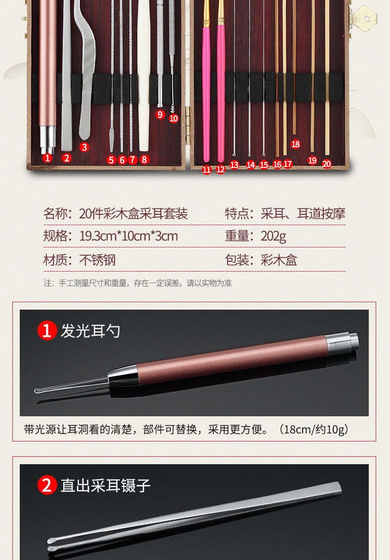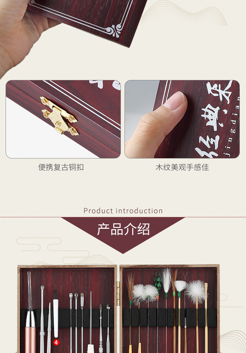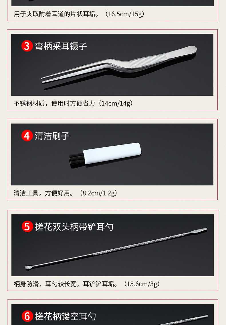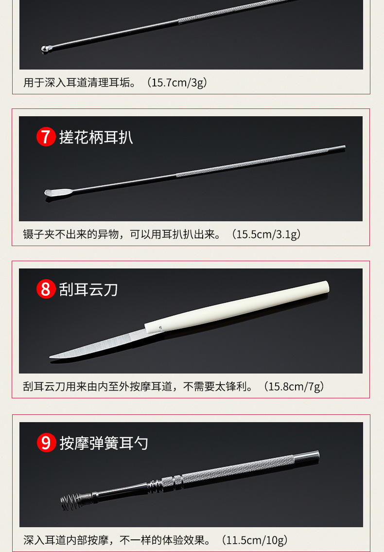 现货采耳工具套装鹅毛棒挖耳勺按摩清洁耳道采耳工具一整套掏耳勺