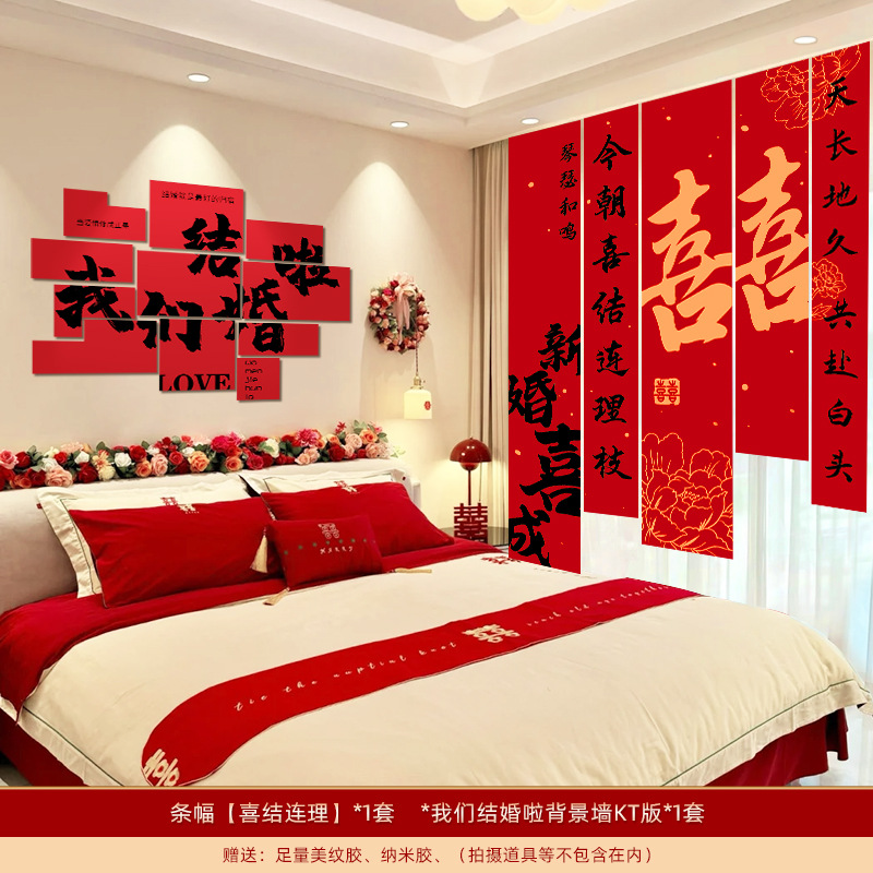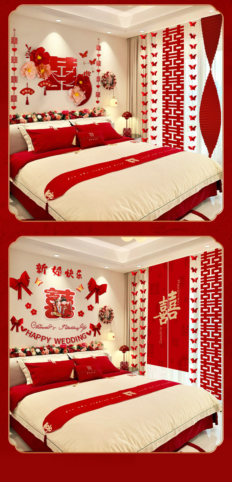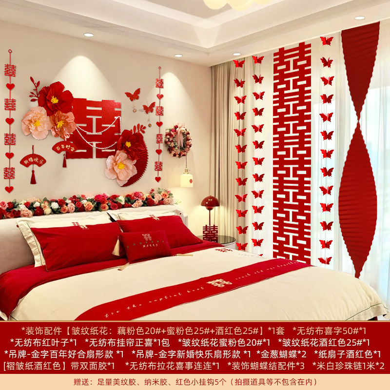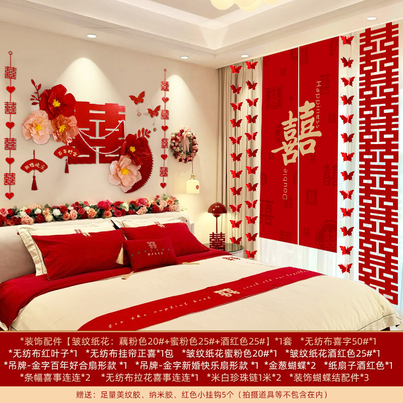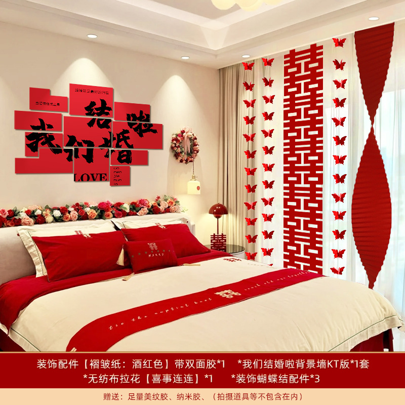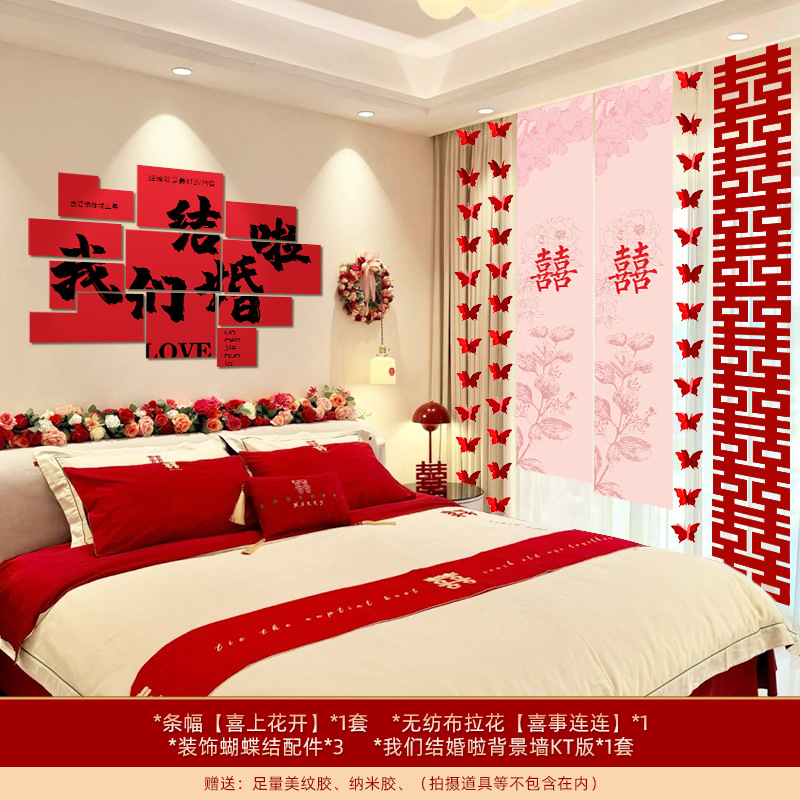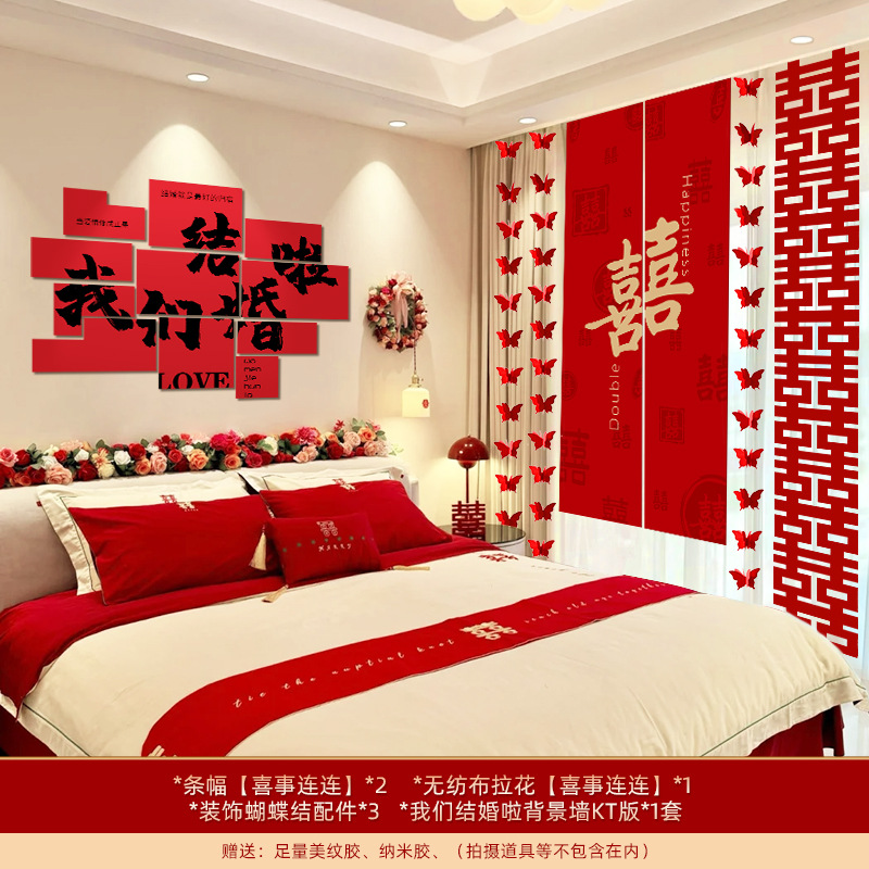 婚房布置套装装饰结婚礼立体蝴蝶窗帘挂件卧室新房拉花长条喜批发