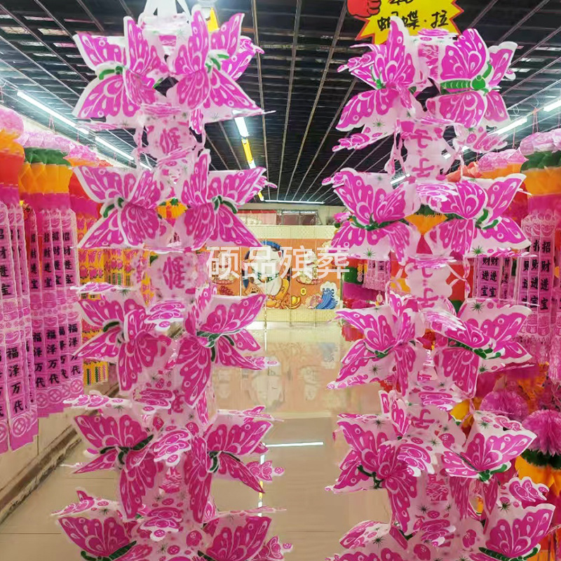 批发火供丧葬蝴蝶拉花清明节殡葬用品纸灯笼白事丧事蝴蝶拉花