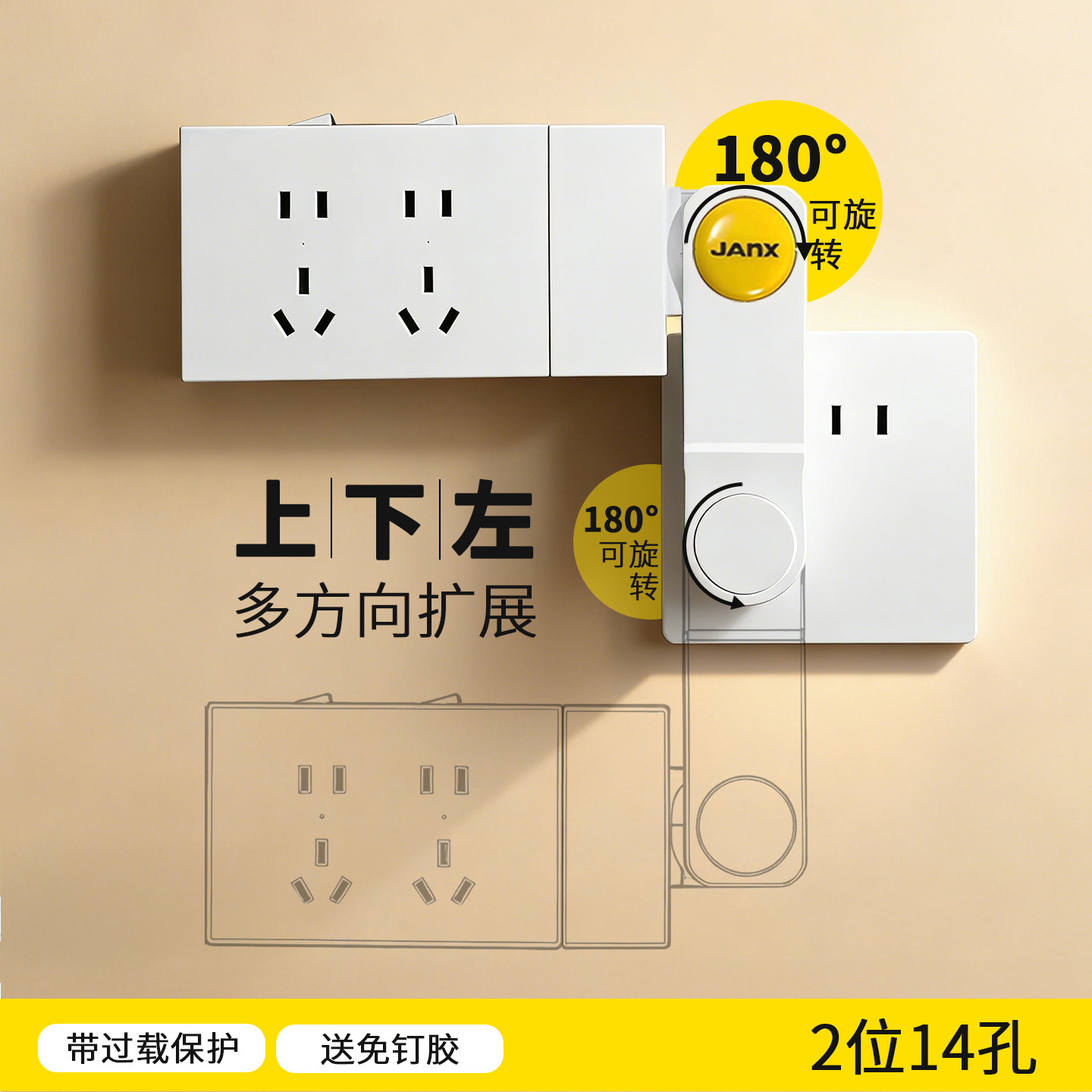 免打孔家用多功能家用排插转多孔明装扩展插座转换器多功能插座