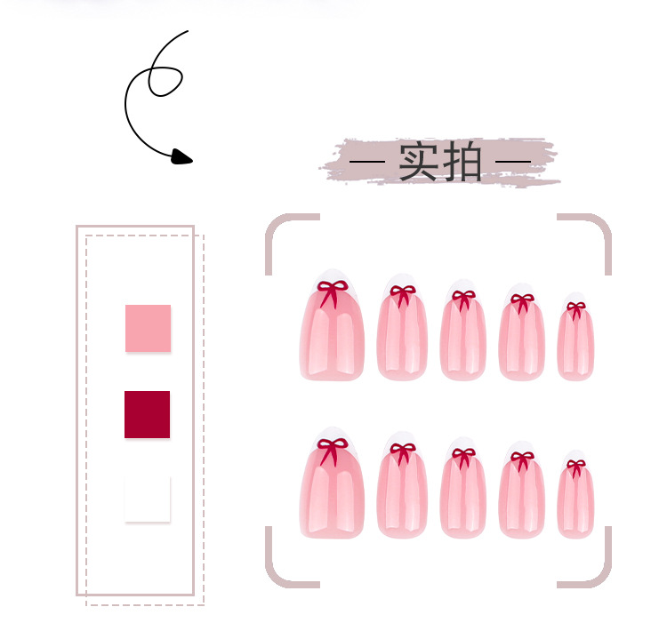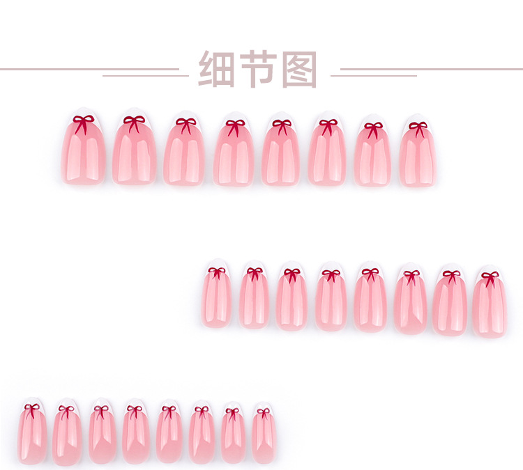 新款简约法式白边美甲情人节穿戴甲红色蝴蝶结可重复甲片成品批发