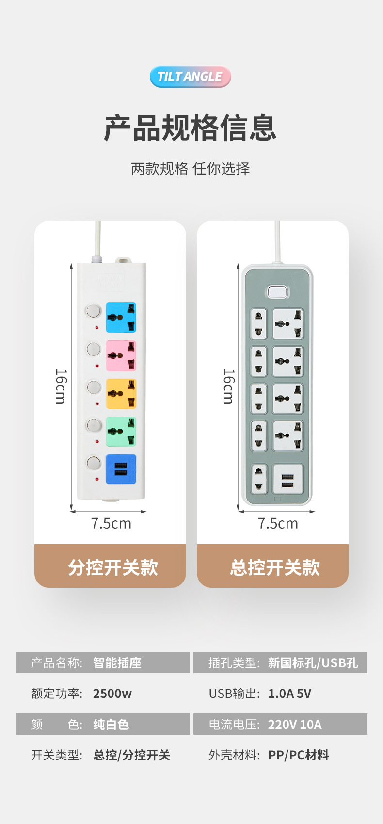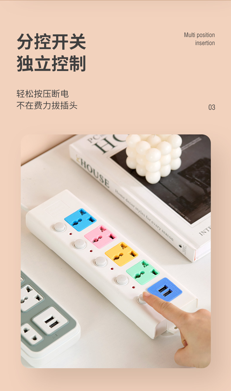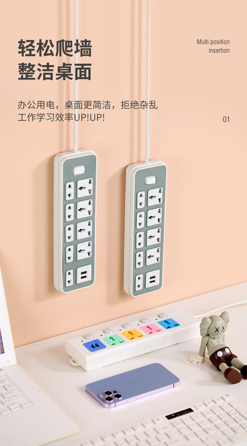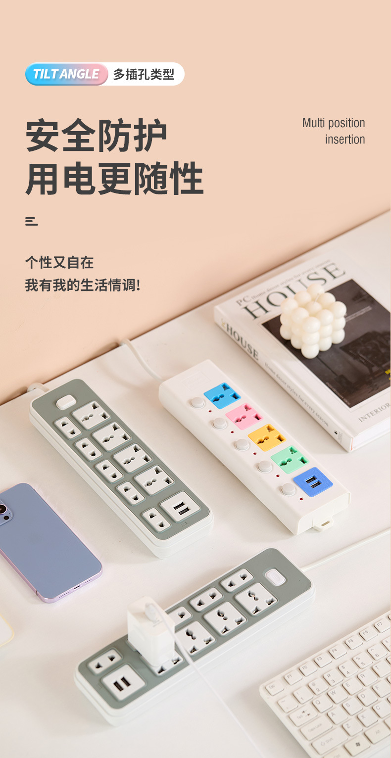 外贸插排通用家用多插位插座排插8米线长多孔位插线板插板跨境