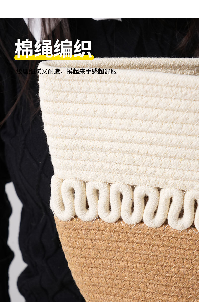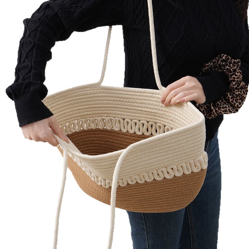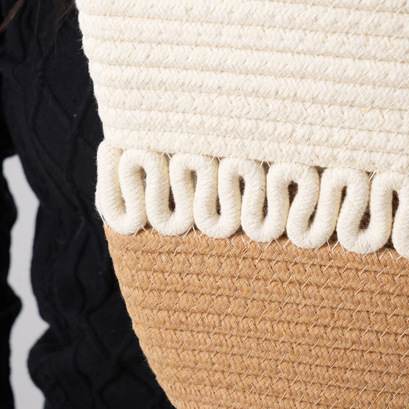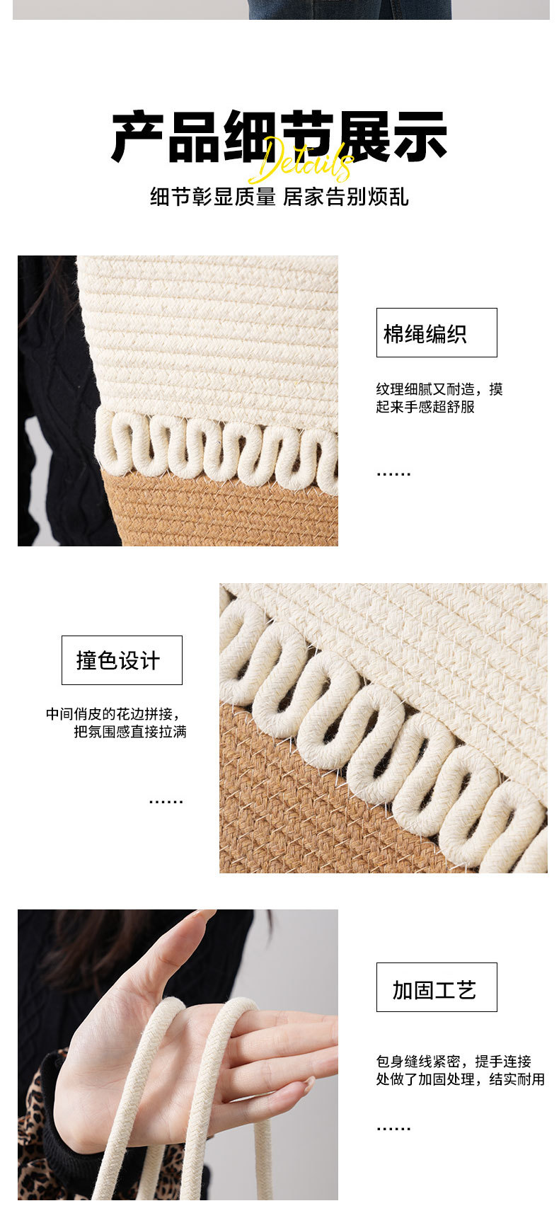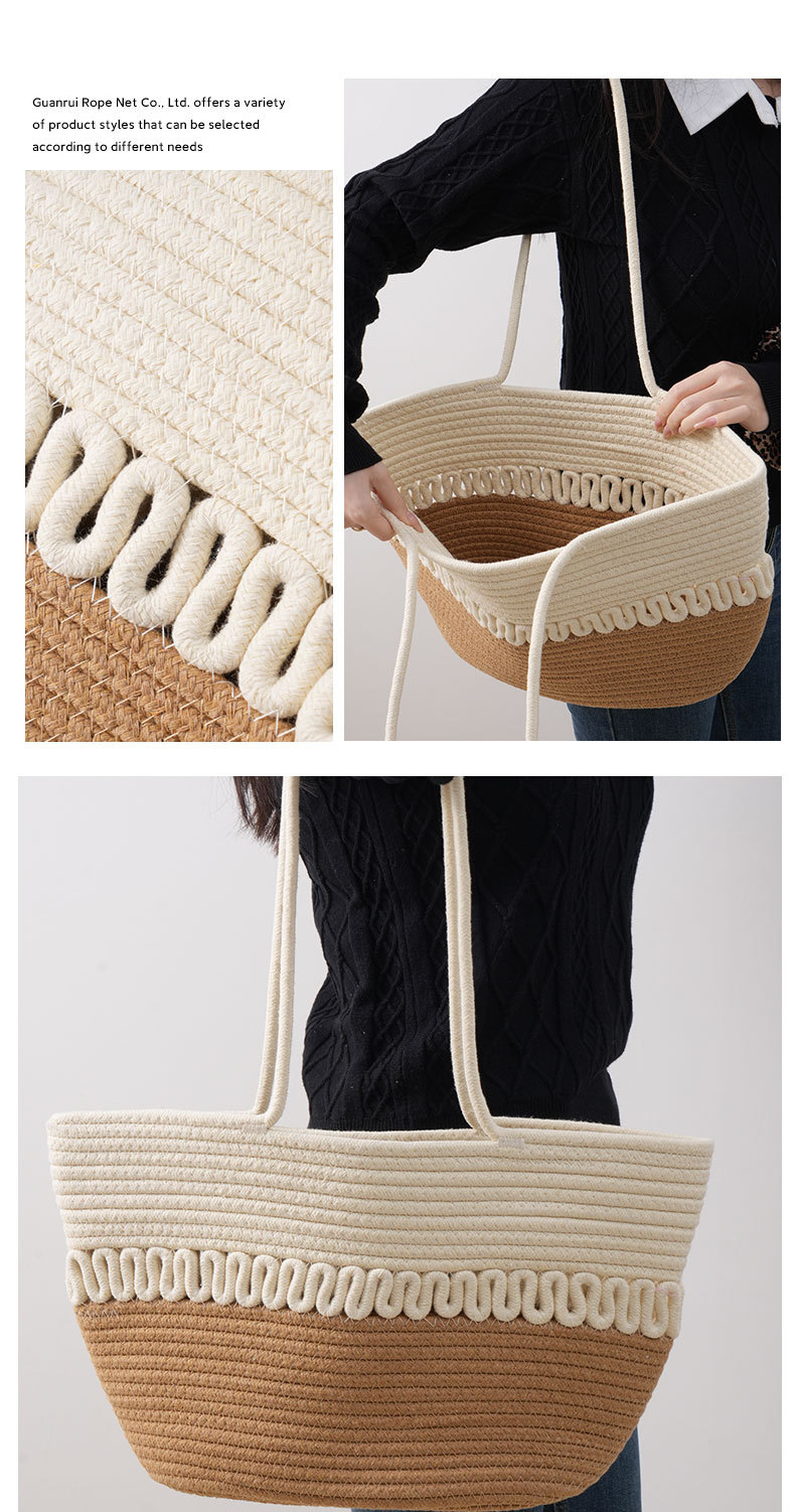 拼色花边编织包 大容量沙滩单肩菜篮子休闲简约托特包镂空 草编包