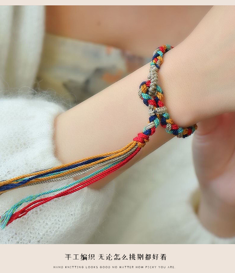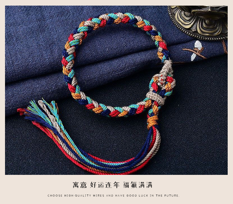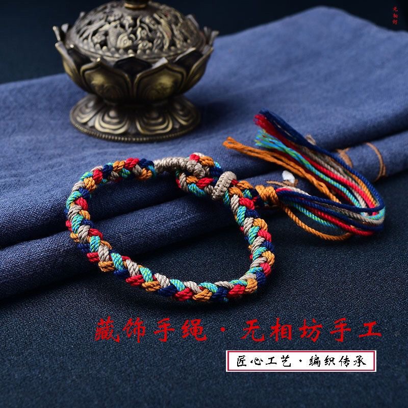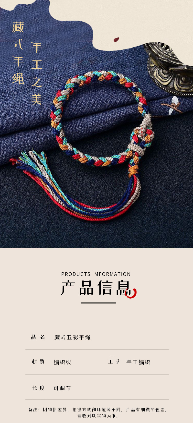 藏式五彩民族风爆款手绳可调节手搓棉线纯手工编织本命年情侣礼物