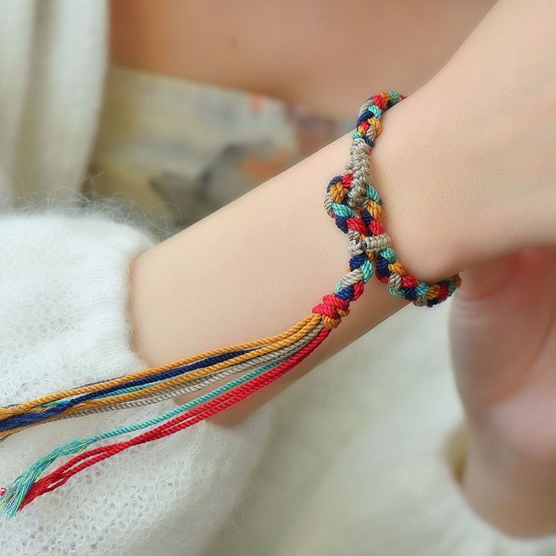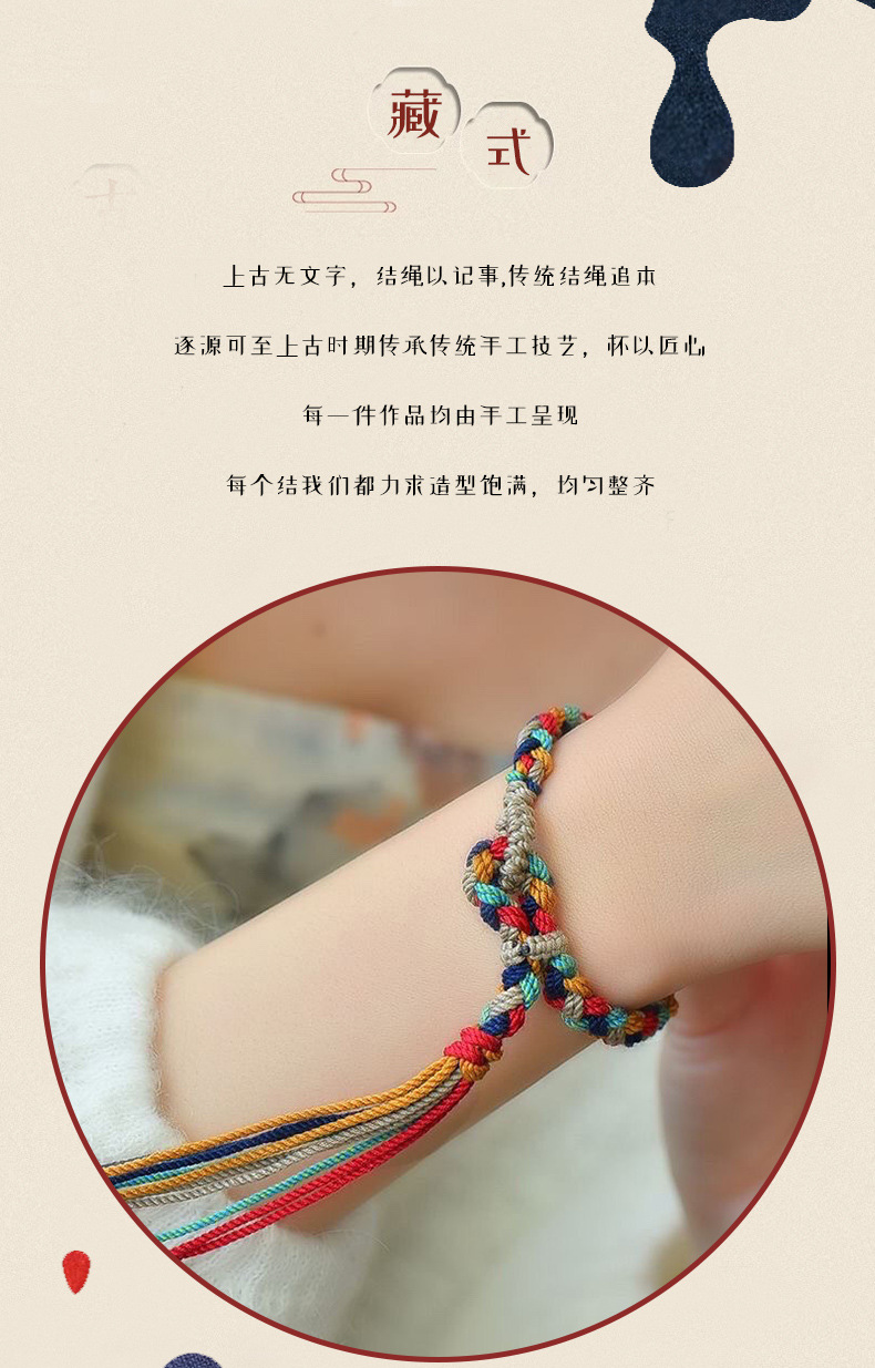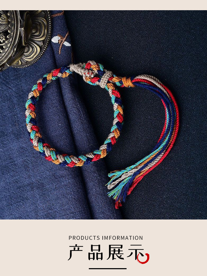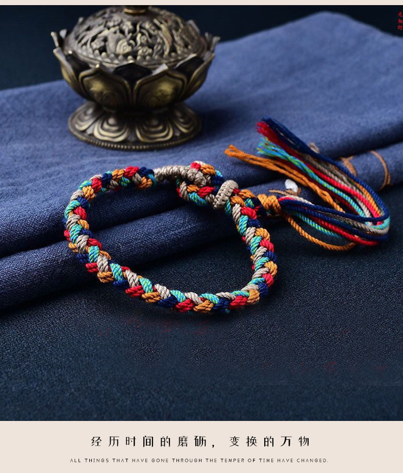 藏式五彩民族风爆款手绳可调节手搓棉线纯手工编织本命年情侣礼物