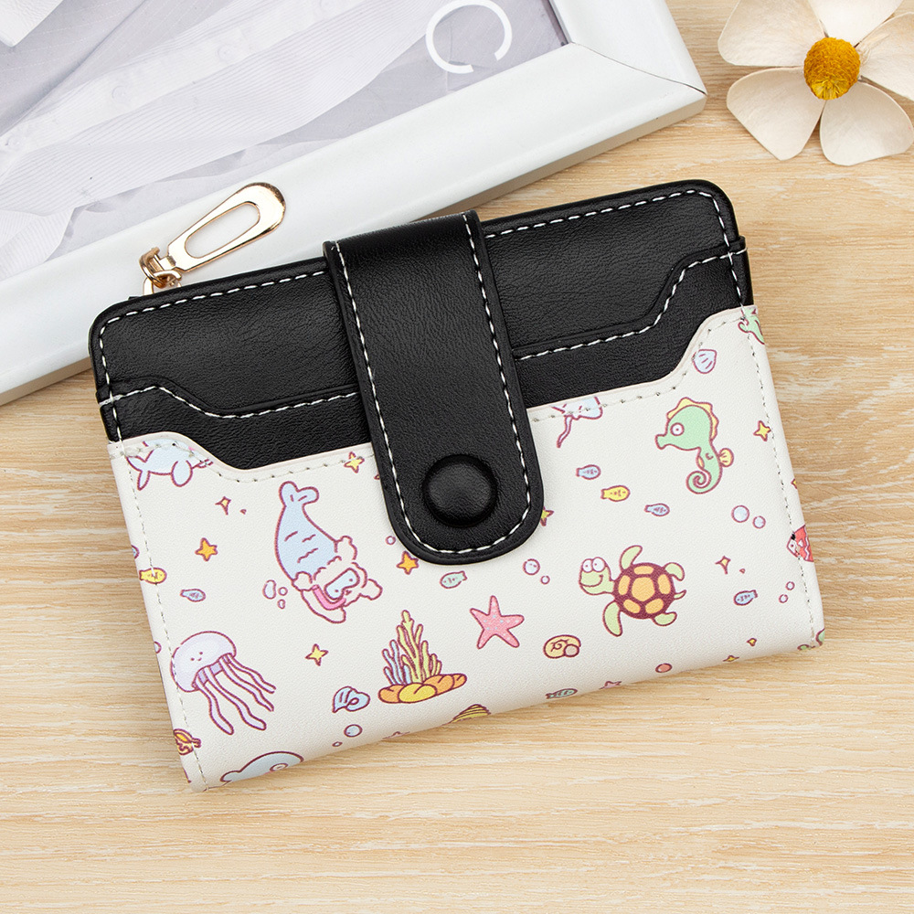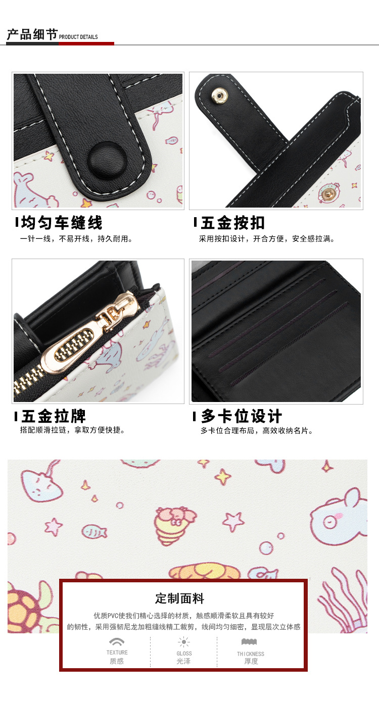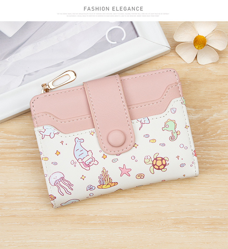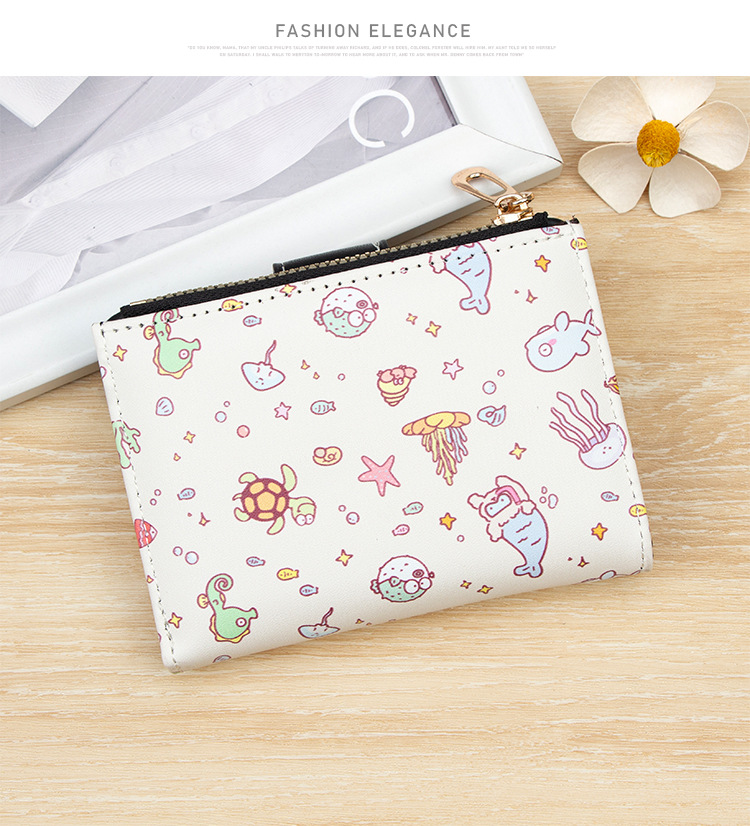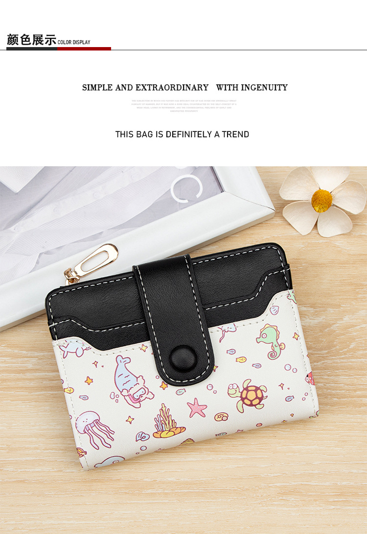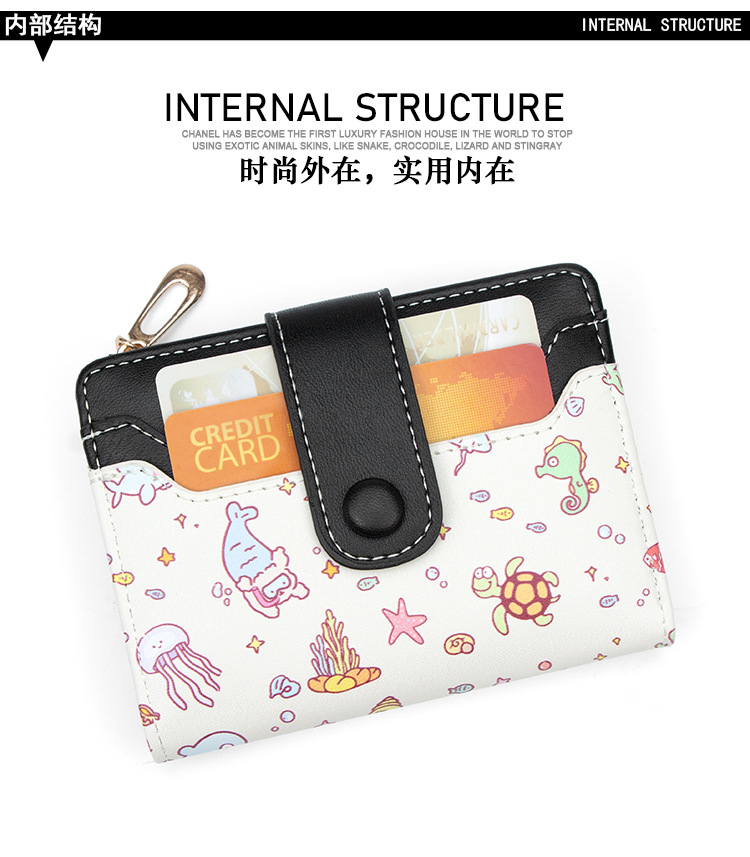 新款女士短款钱包韩版ins风跨境可爱卡通两折按扣钱夹拉链零钱包