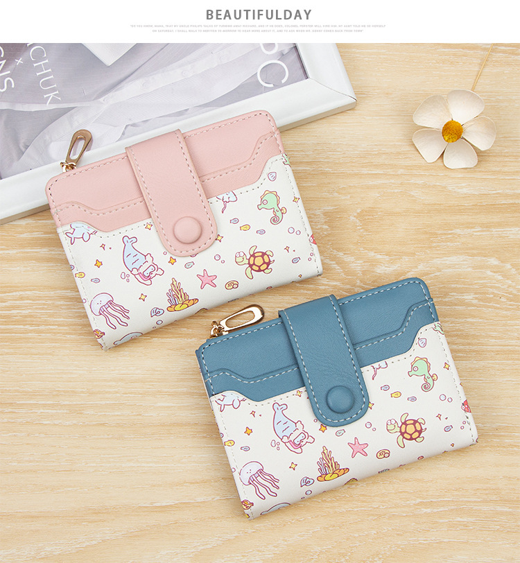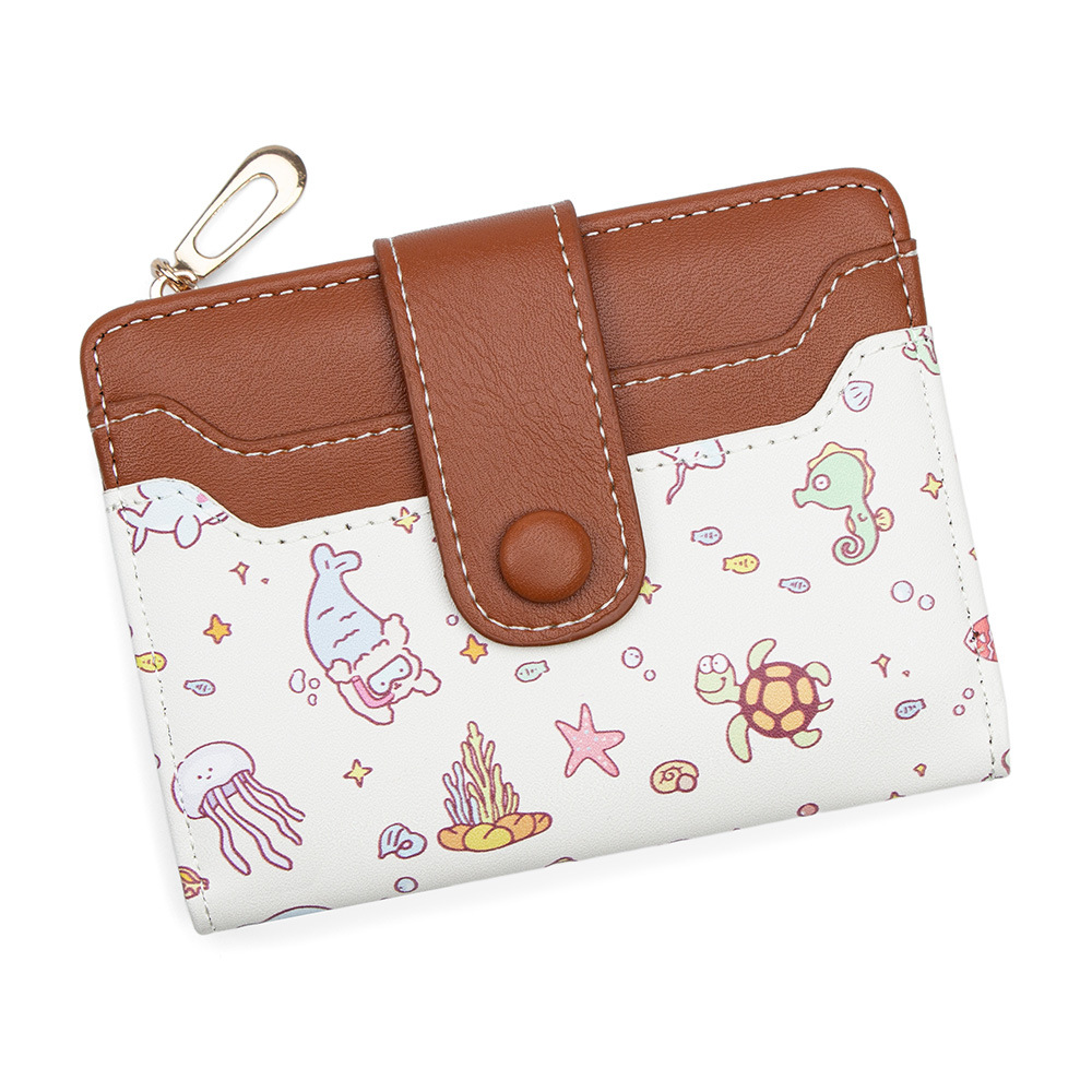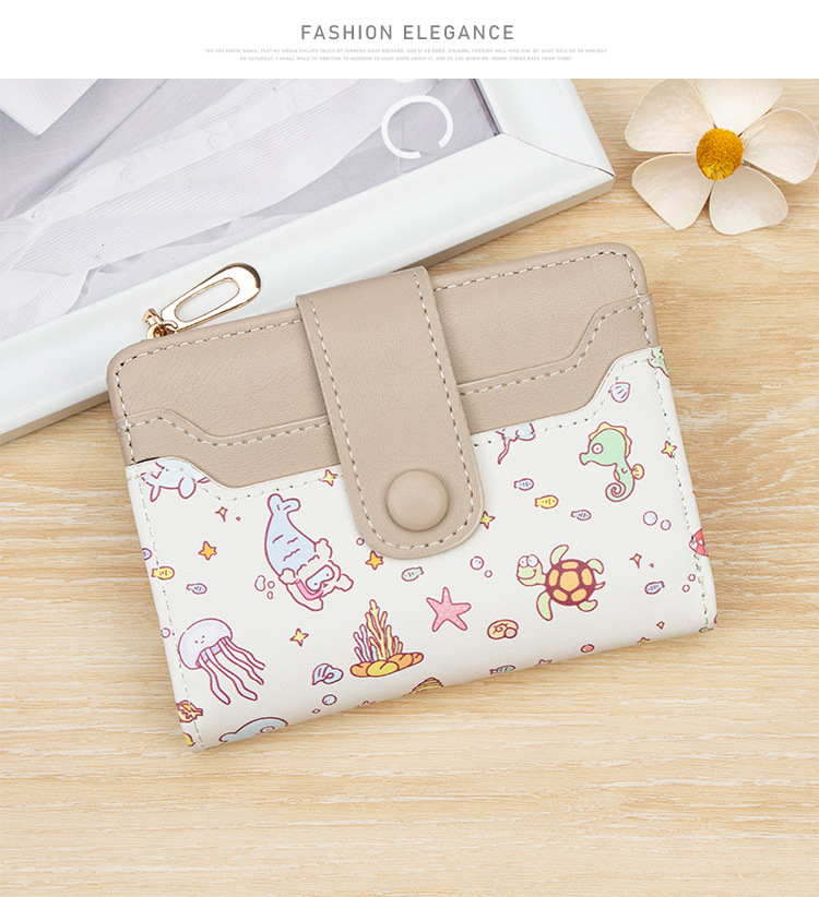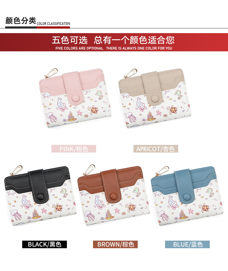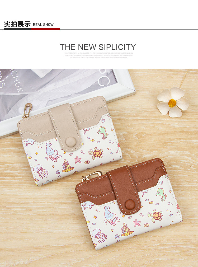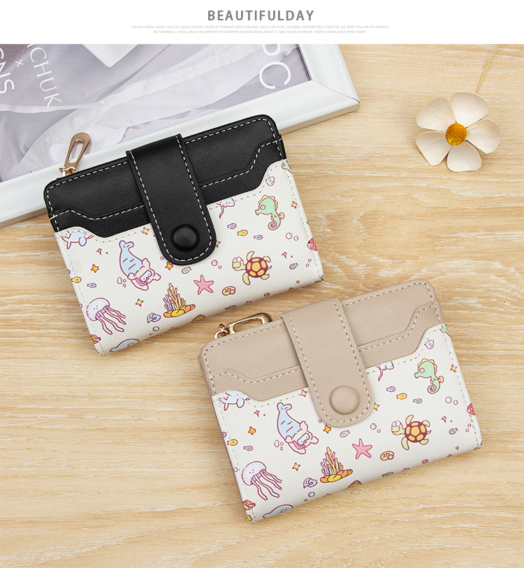 新款女士短款钱包韩版ins风跨境可爱卡通两折按扣钱夹拉链零钱包