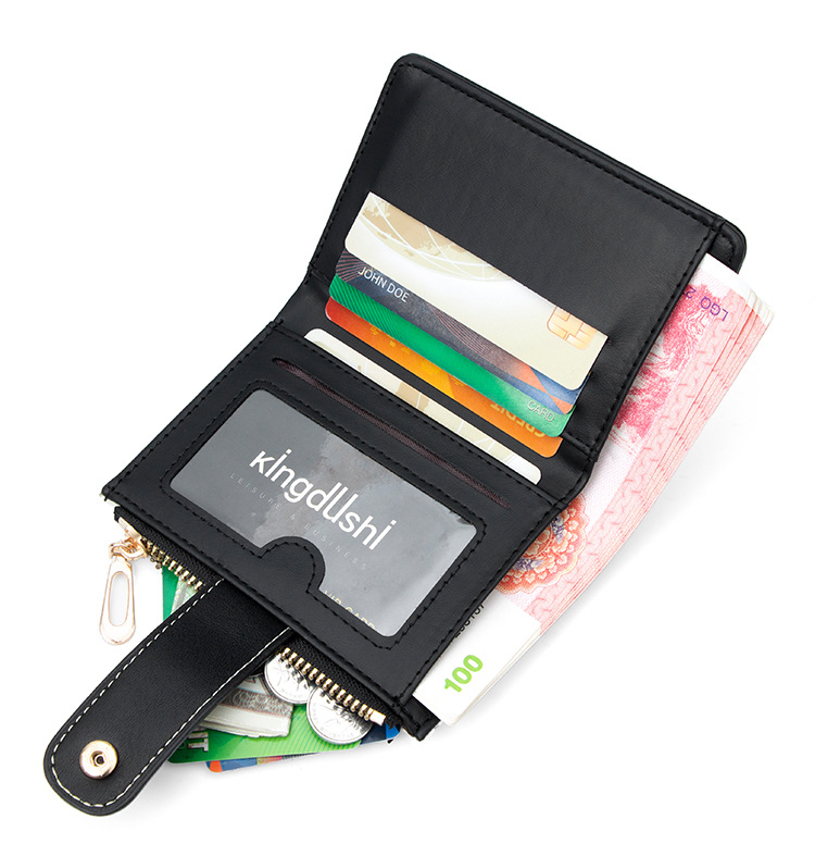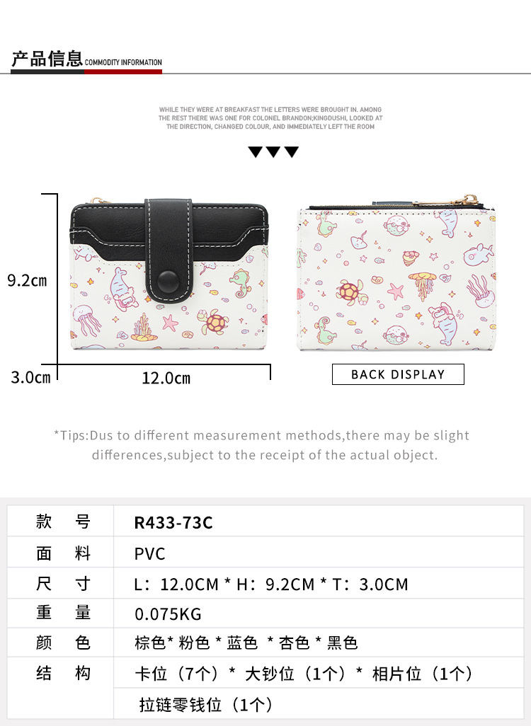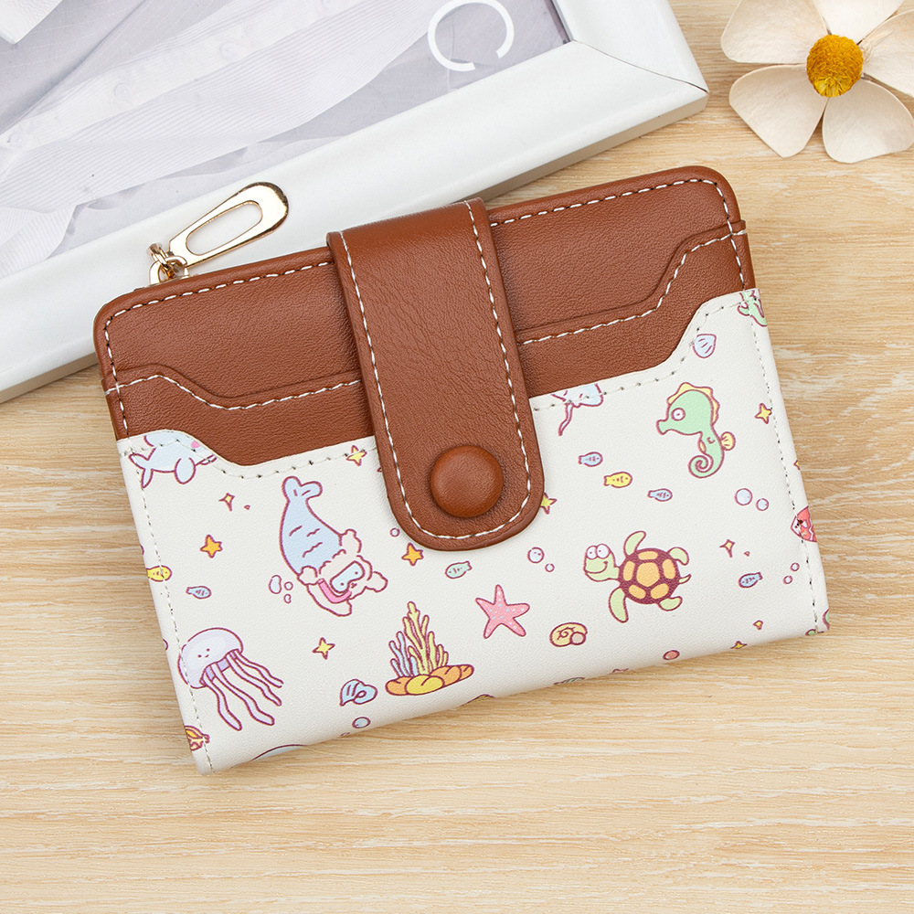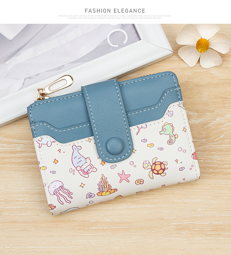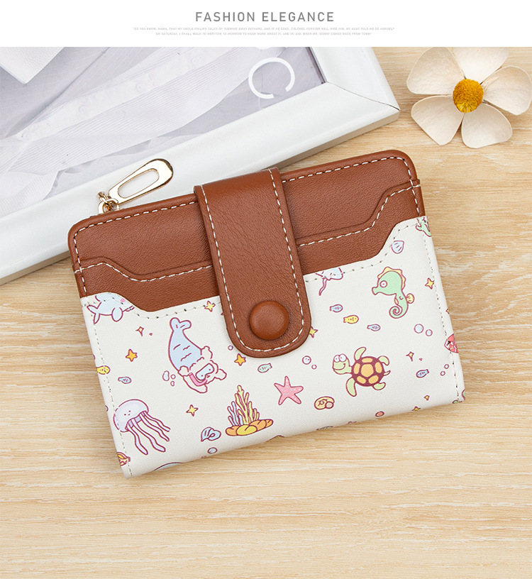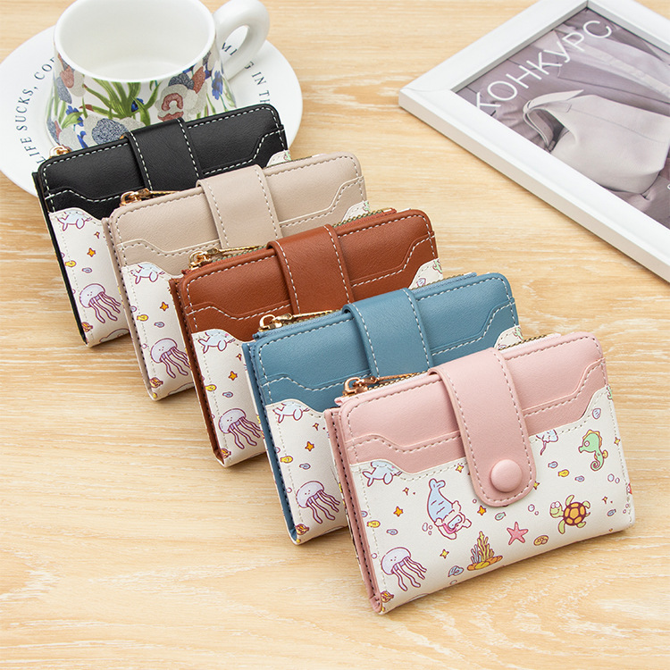 新款女士短款钱包韩版ins风跨境可爱卡通两折按扣钱夹拉链零钱包