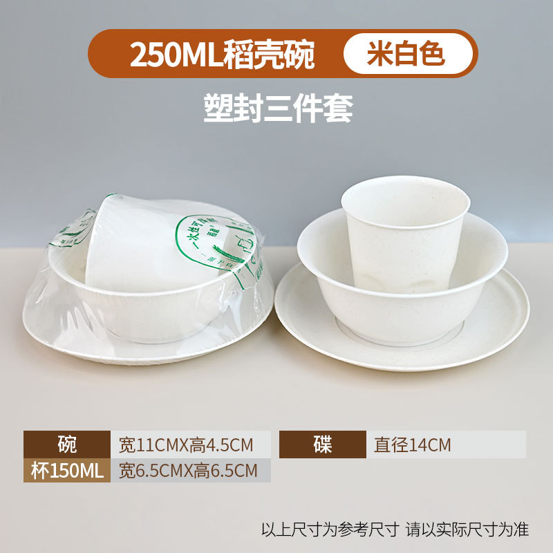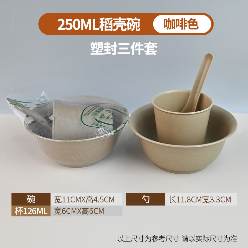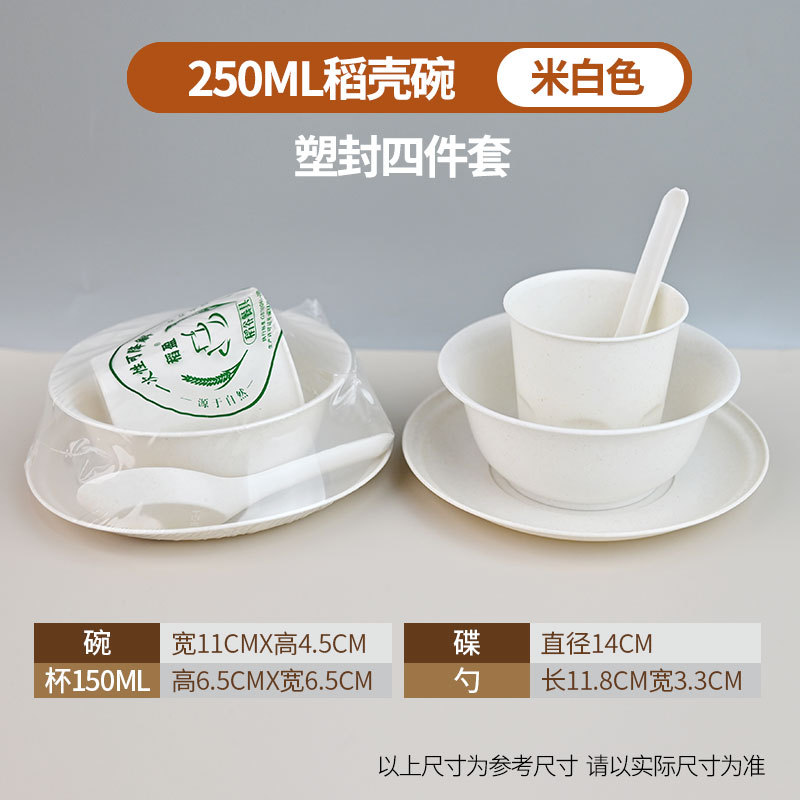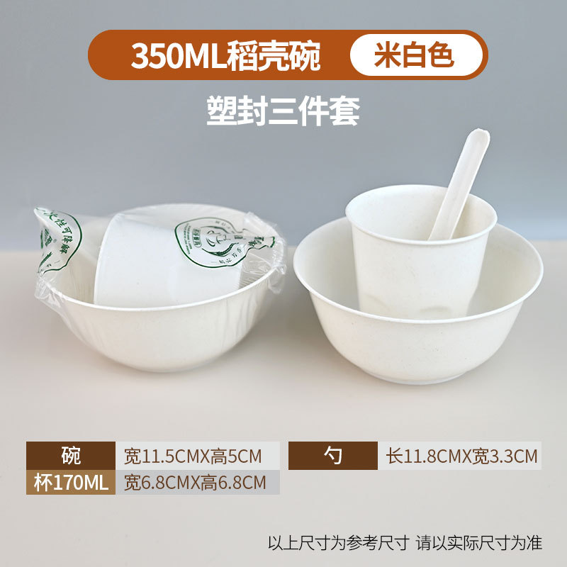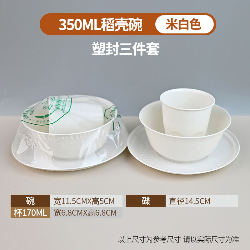 定制食品级碗筷酒席三件套组合套装商用稻壳一次性餐具四件套饭碗