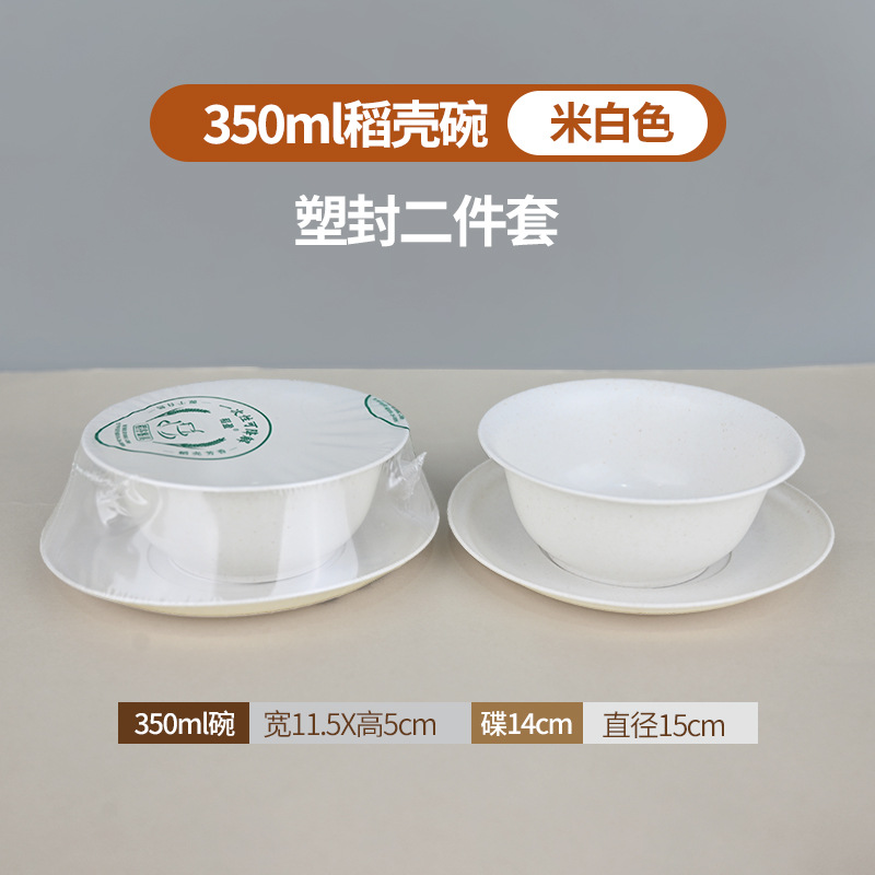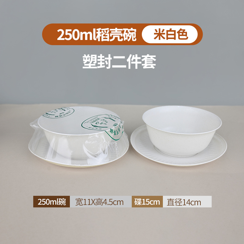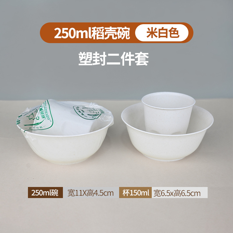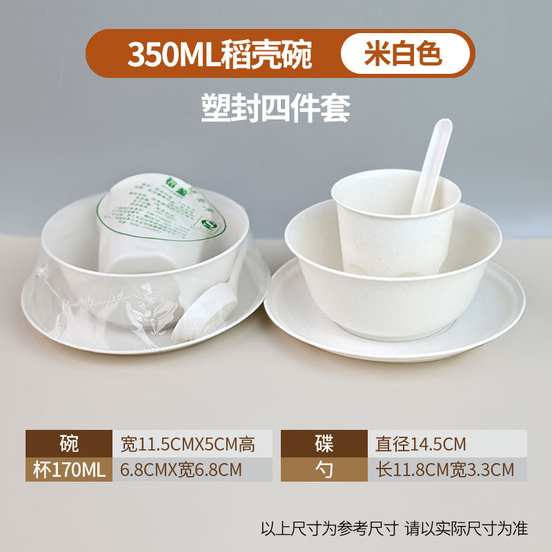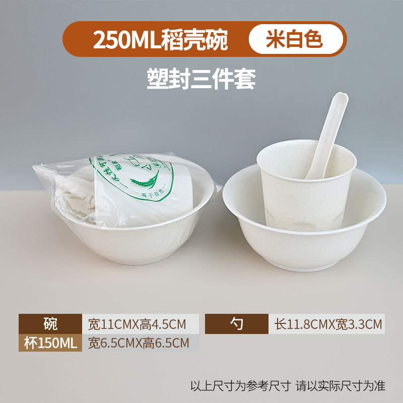定制食品级碗筷酒席三件套组合套装商用稻壳一次性餐具四件套饭碗
