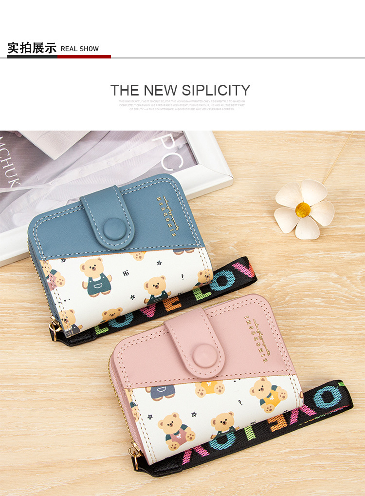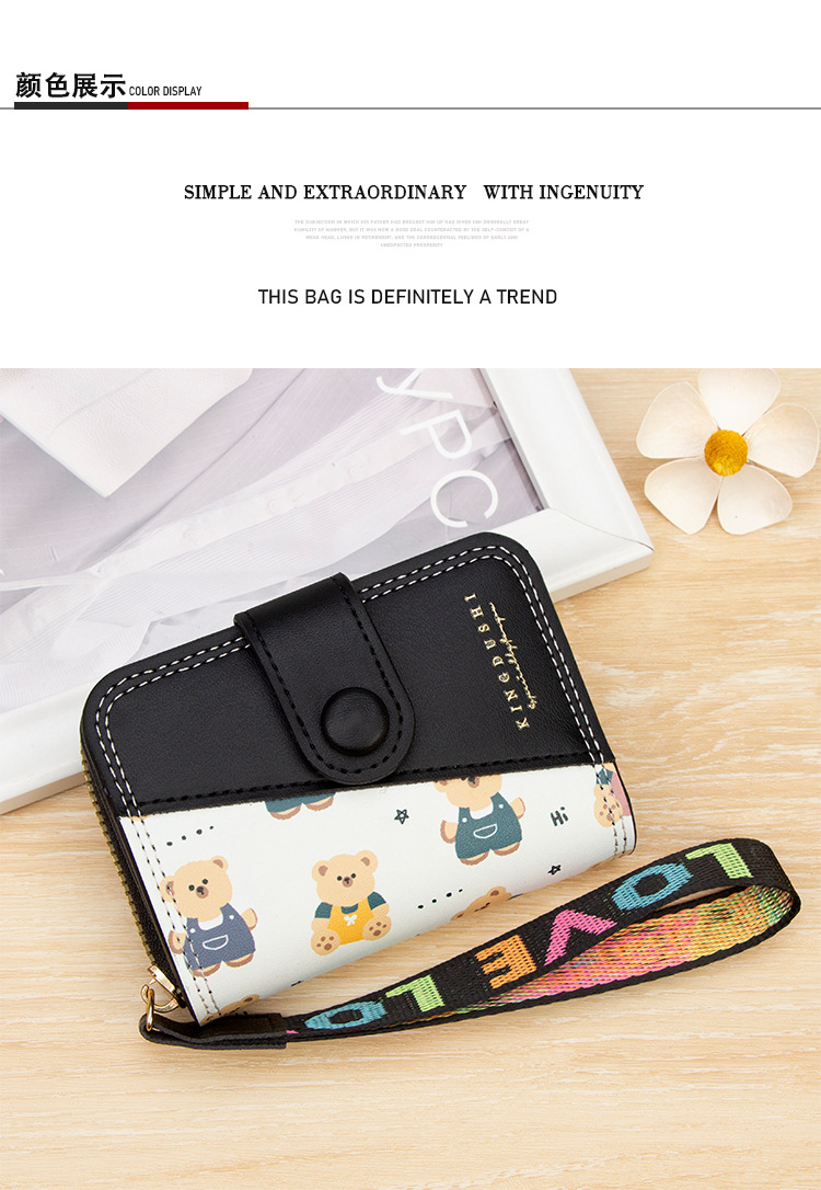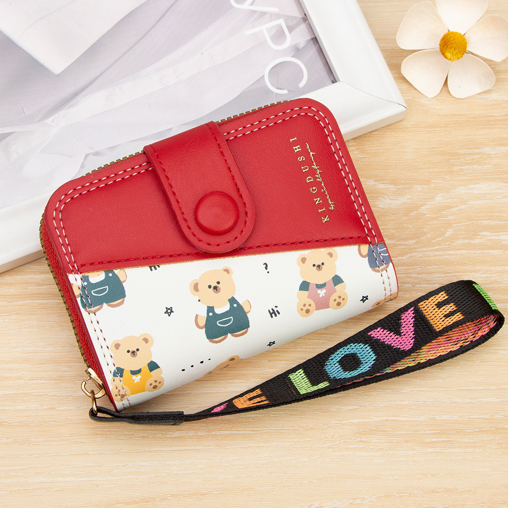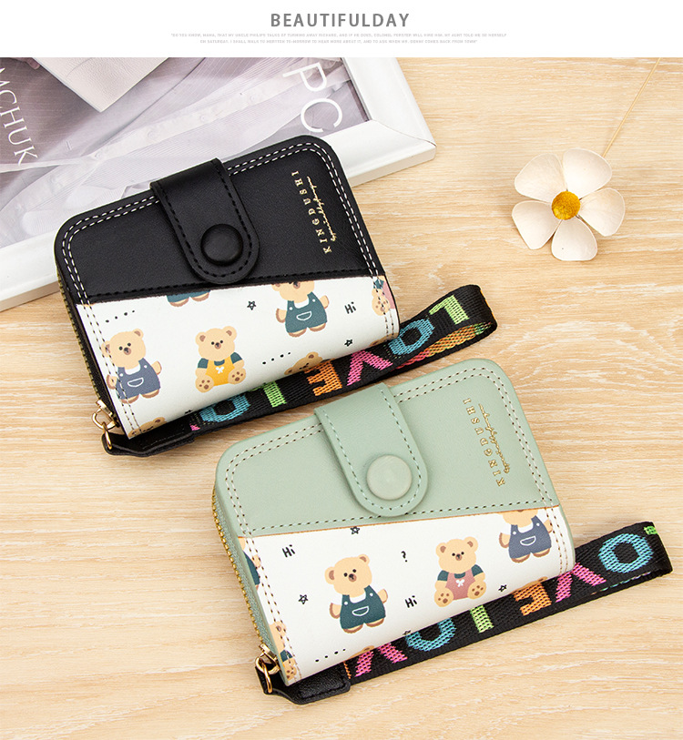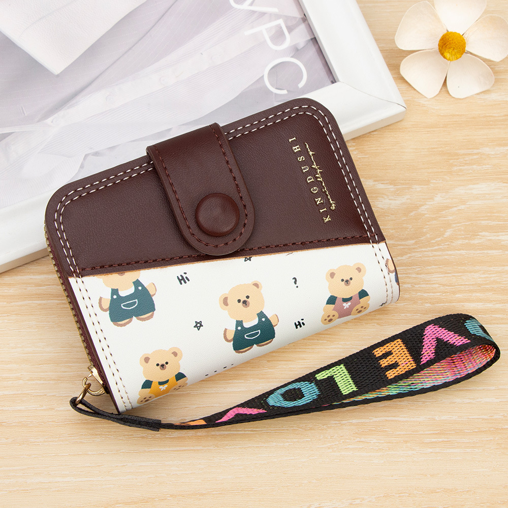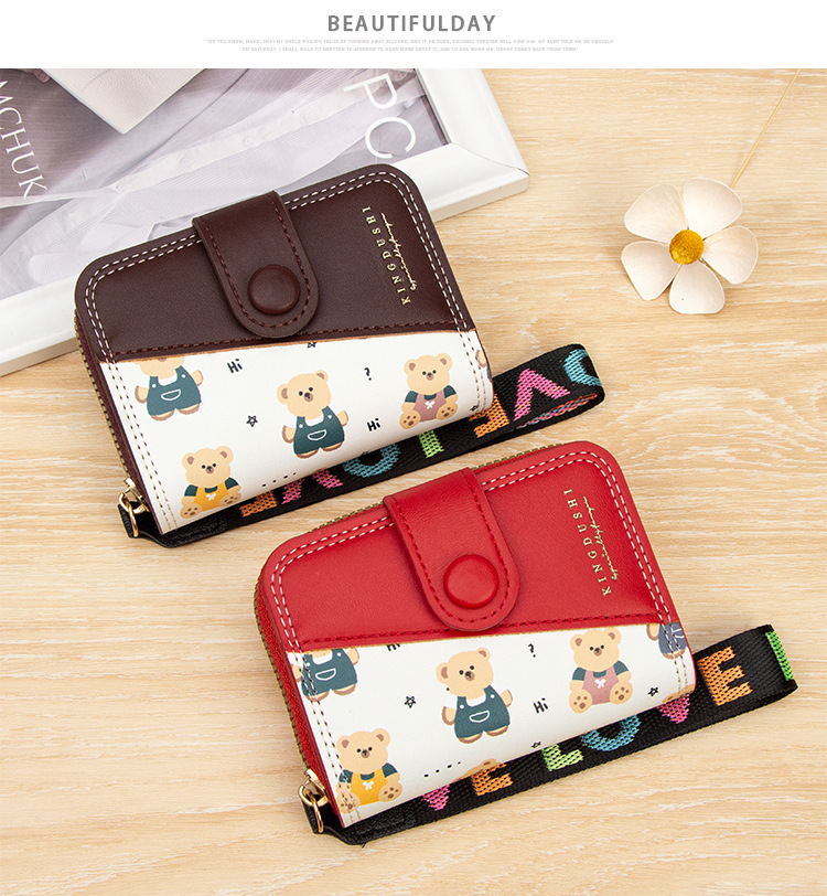 新款女士短款风琴卡包跨境学生可爱卡通小熊钱夹时尚拉链小零钱包