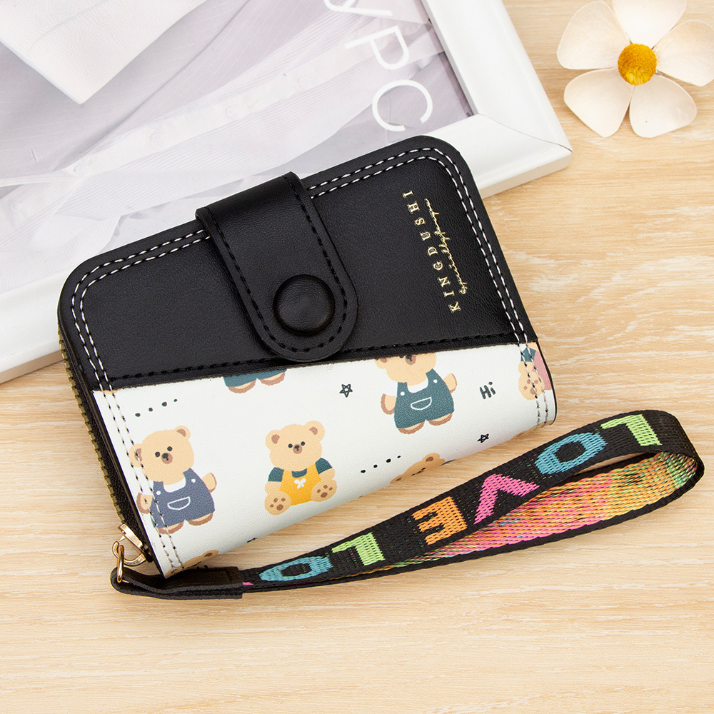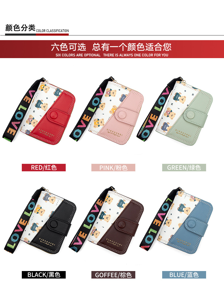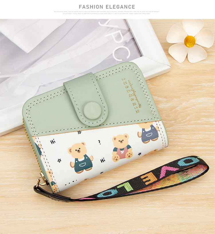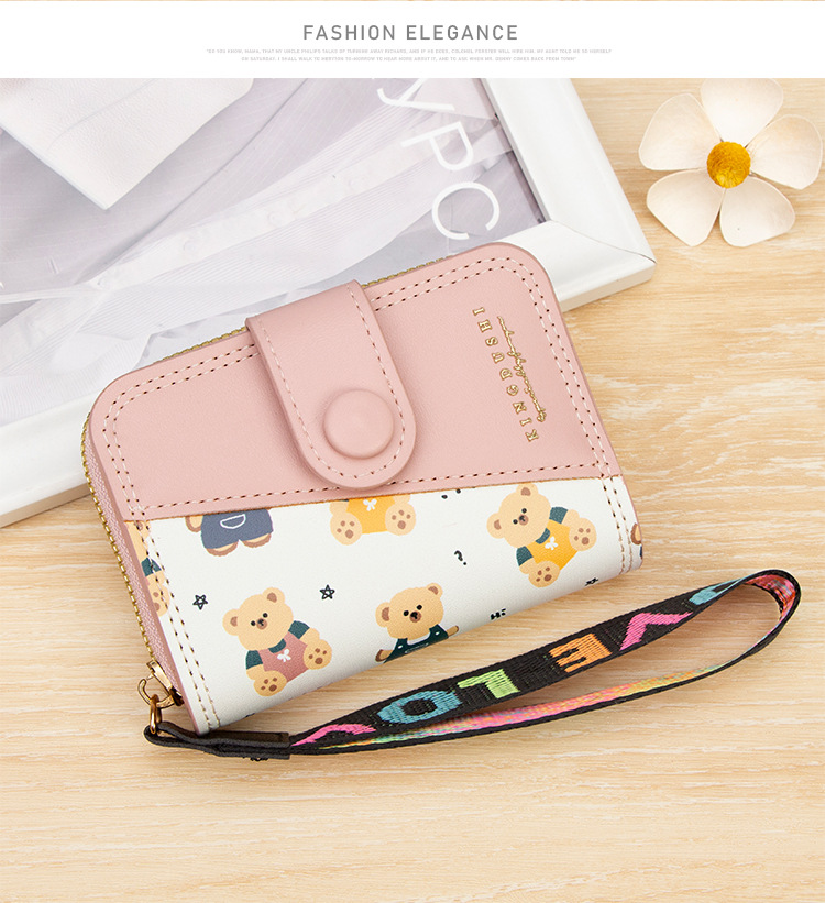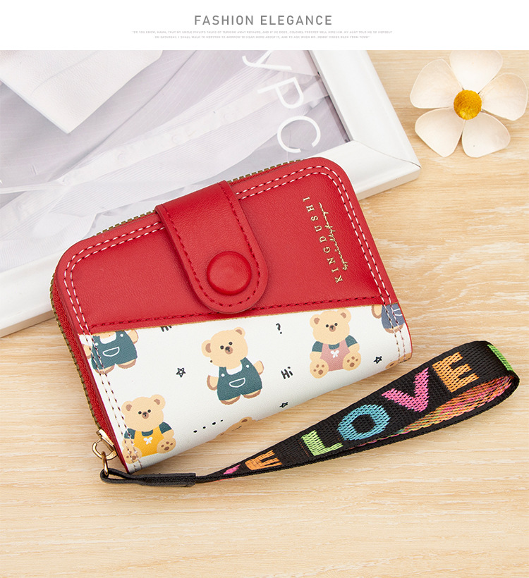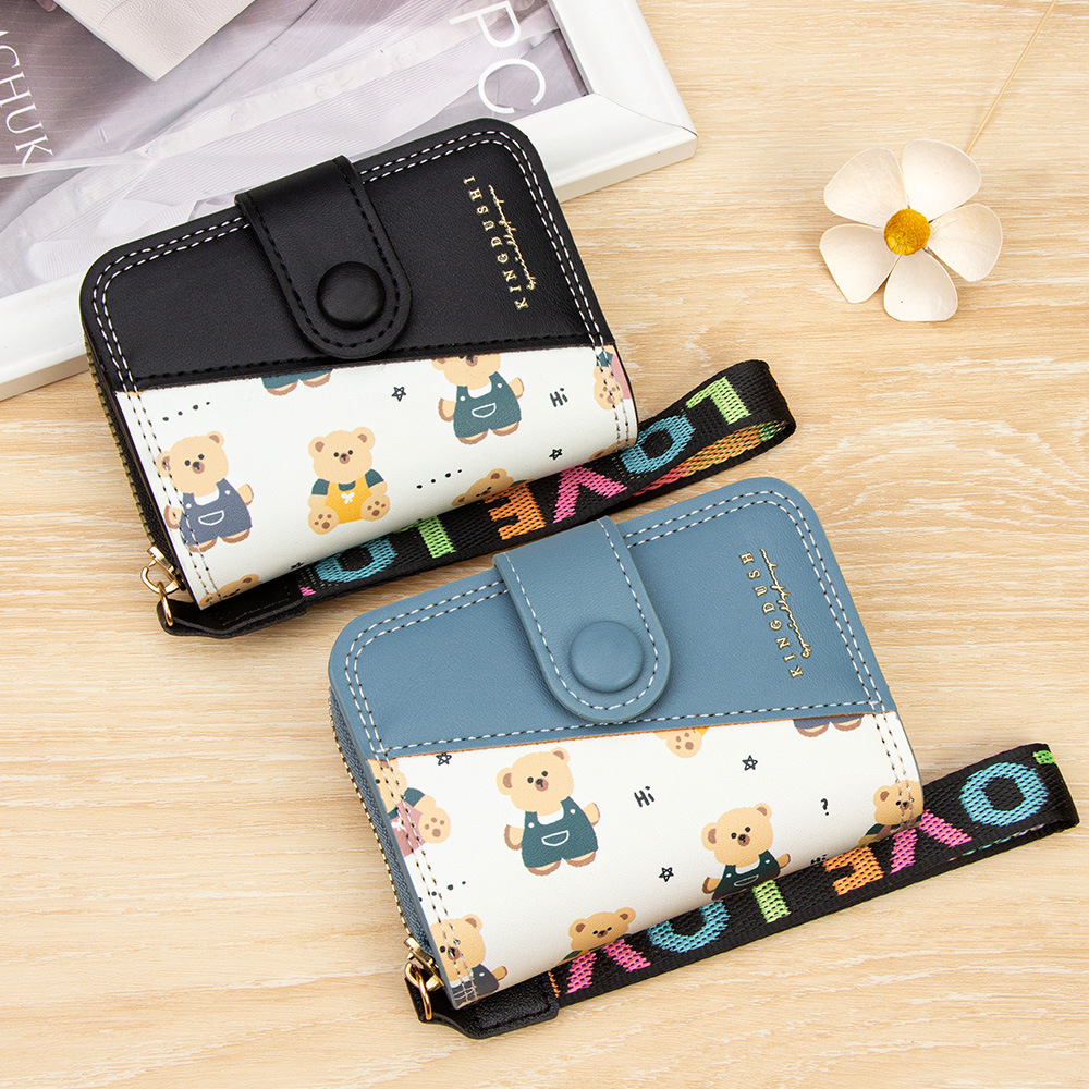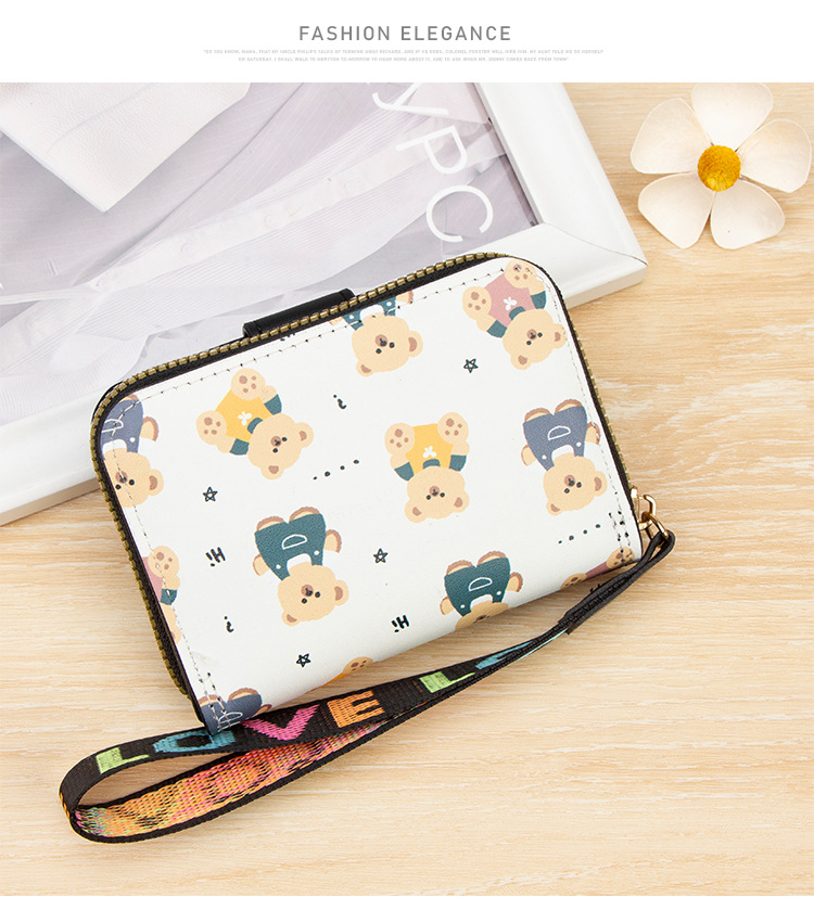 新款女士短款风琴卡包跨境学生可爱卡通小熊钱夹时尚拉链小零钱包
