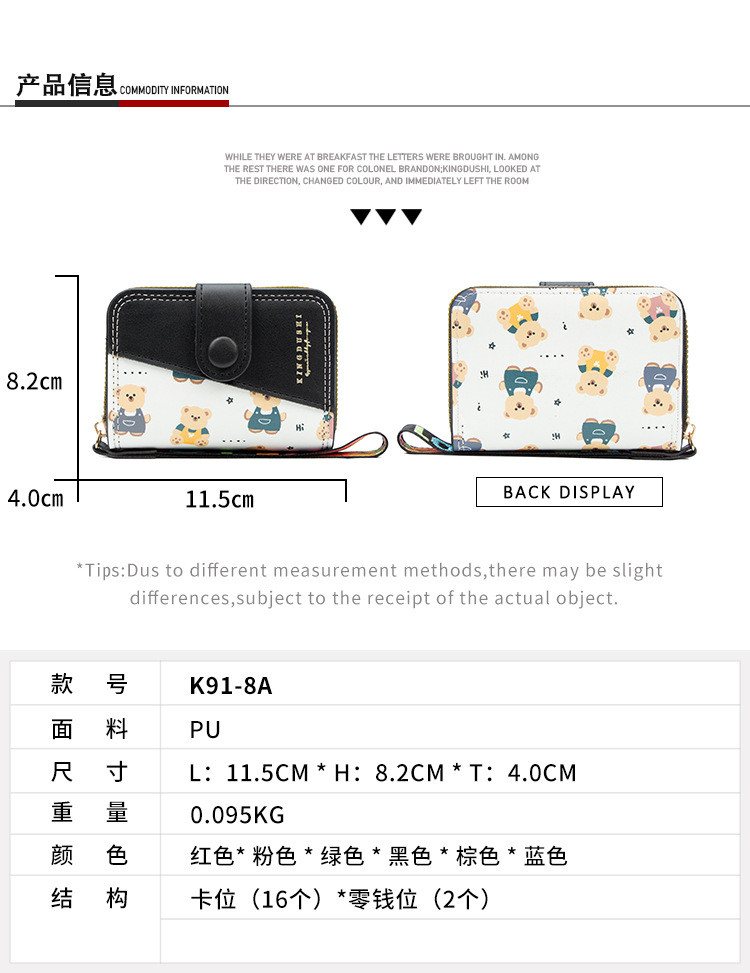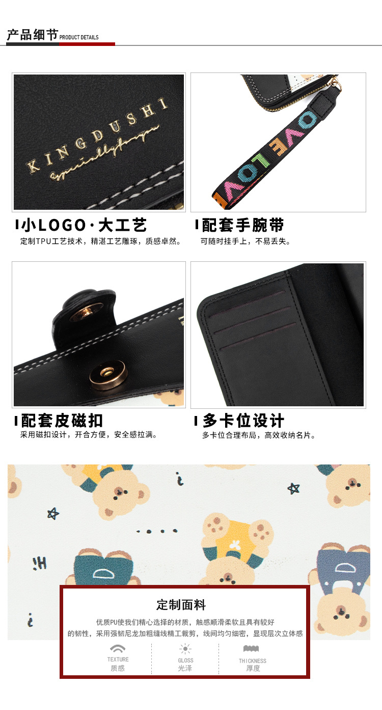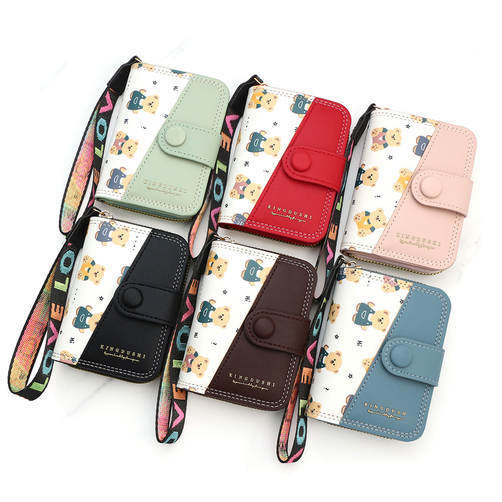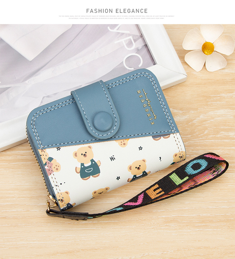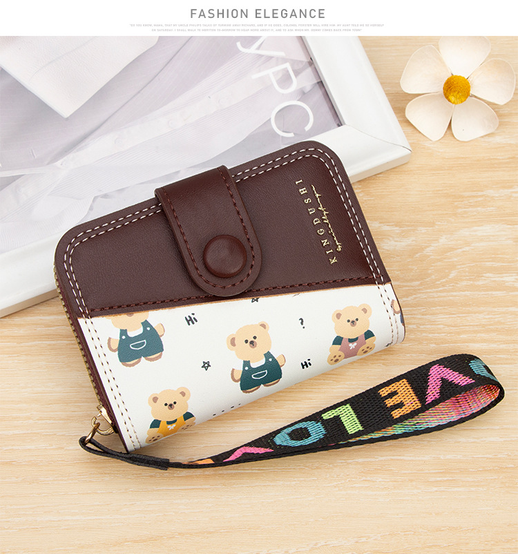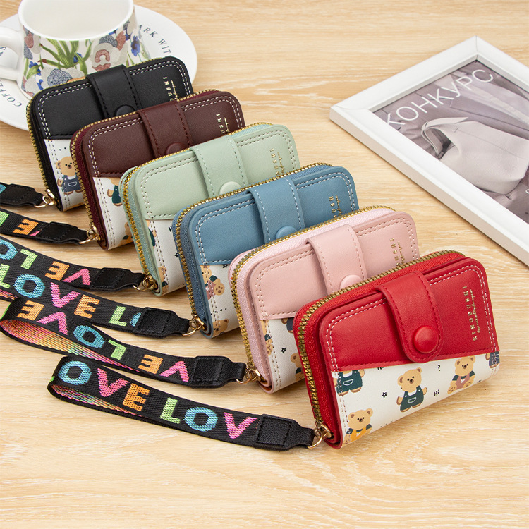 新款女士短款风琴卡包跨境学生可爱卡通小熊钱夹时尚拉链小零钱包