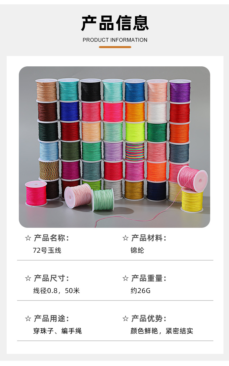 72号玉绳玉线diy手工编织珠宝线手链文玩串珠彩色锦纶红绳子线材
