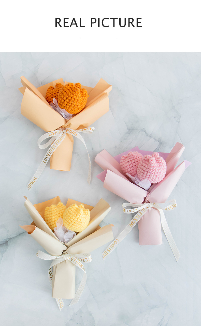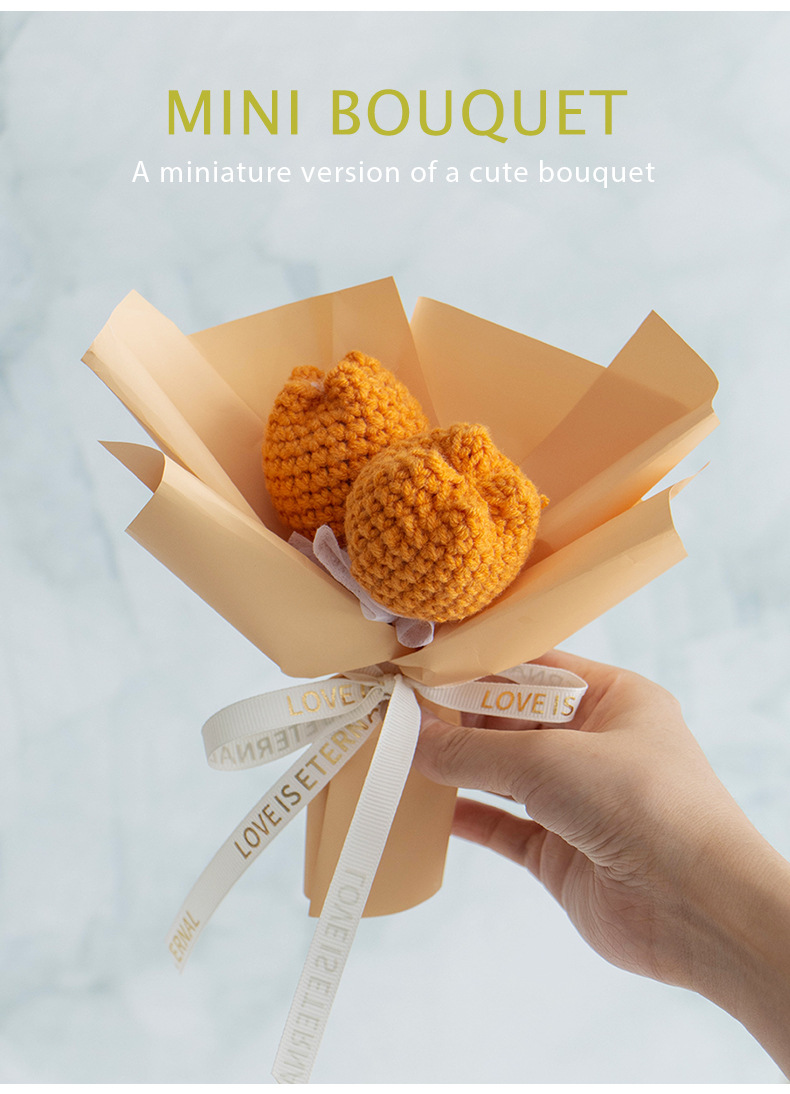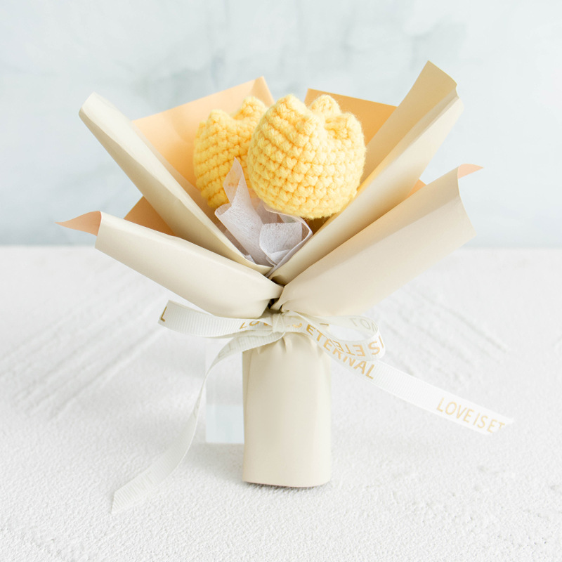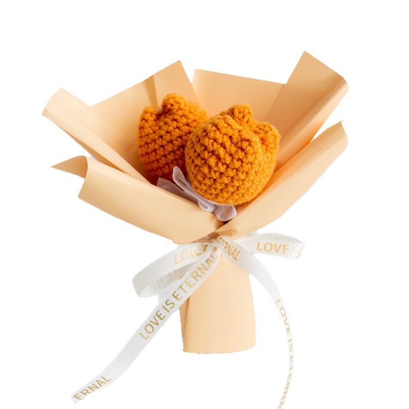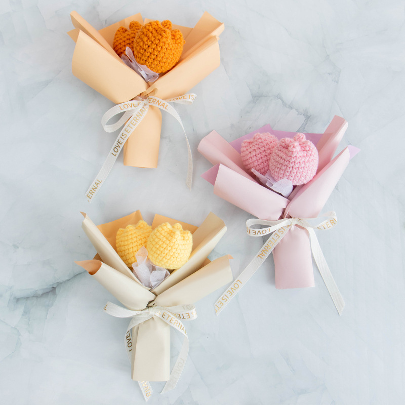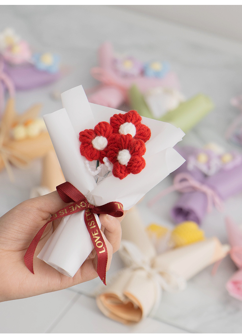 创意迷你装饰摆件花束毛线手工编织郁金香成品仿真花针织礼物花束