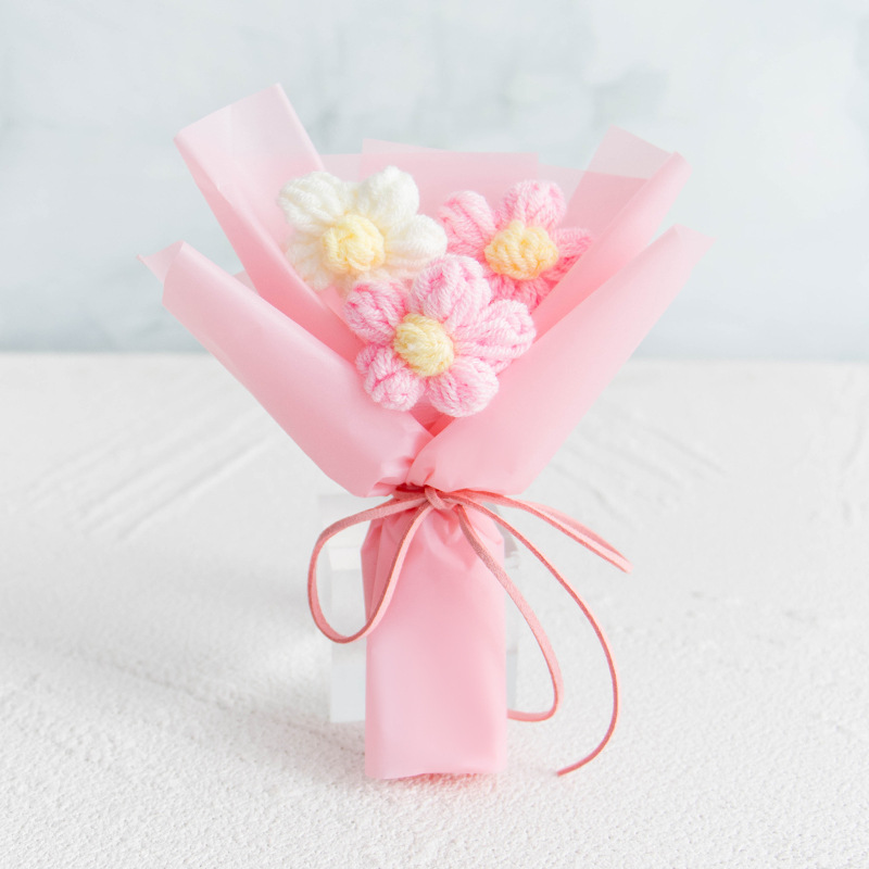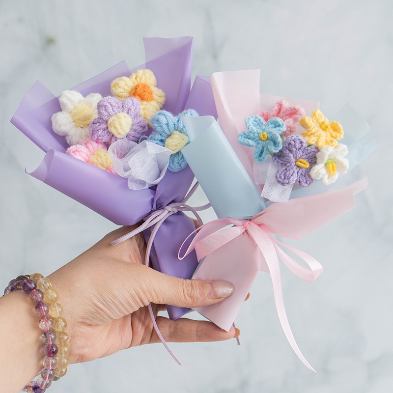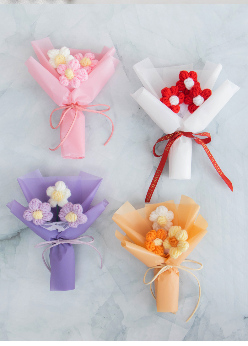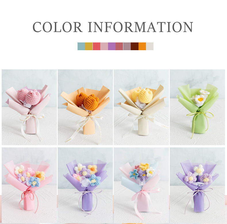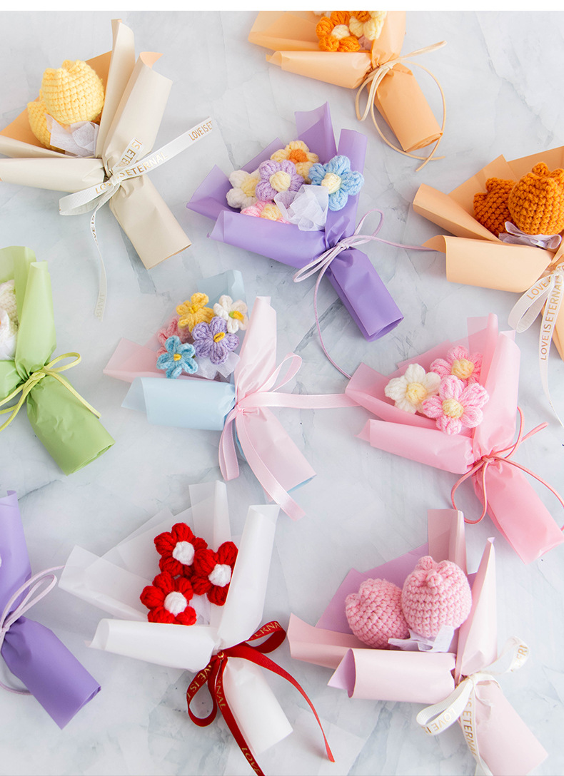 创意迷你装饰摆件花束毛线手工编织郁金香成品仿真花针织礼物花束