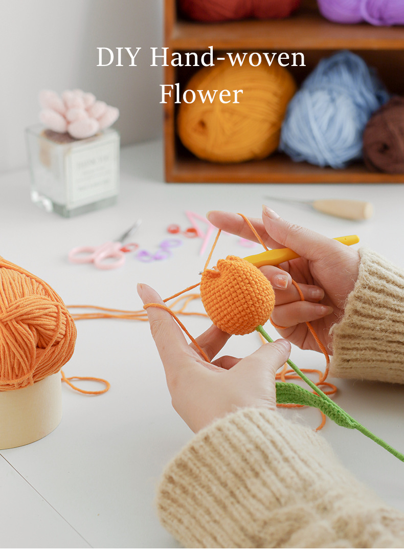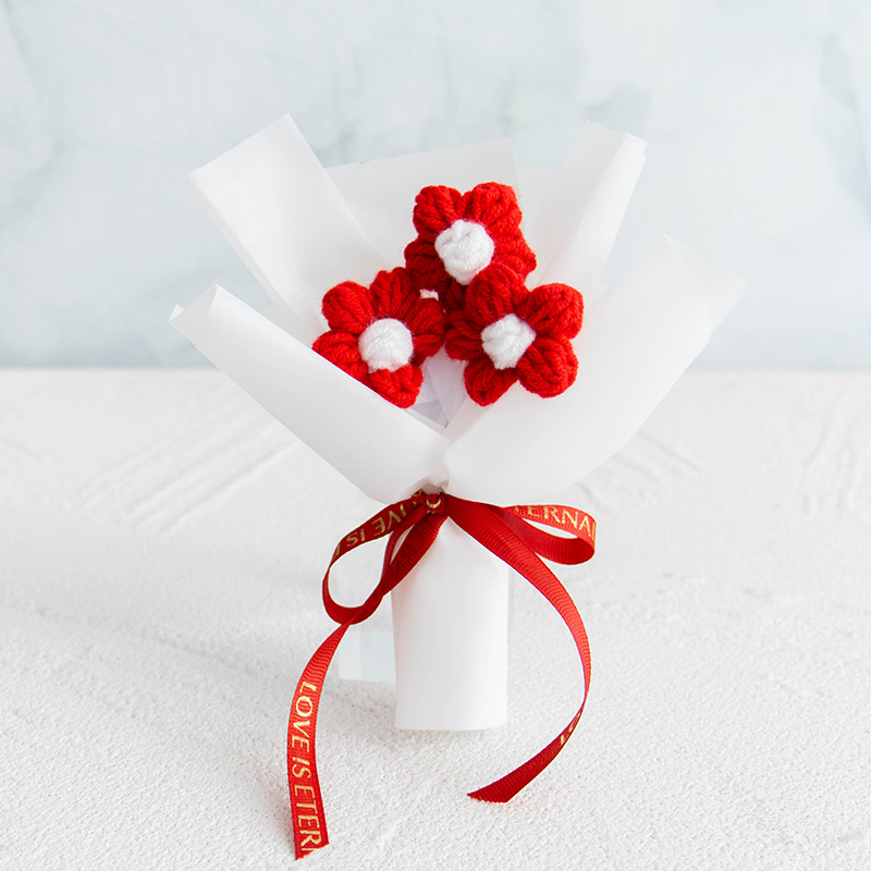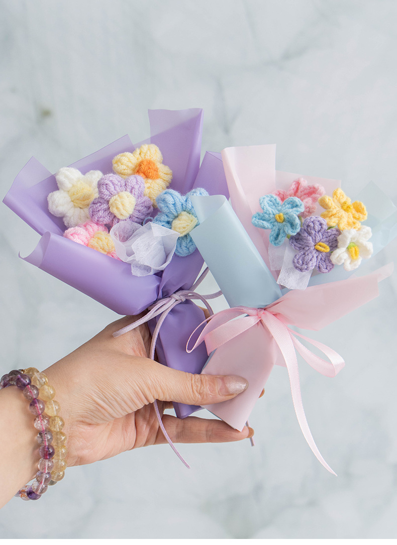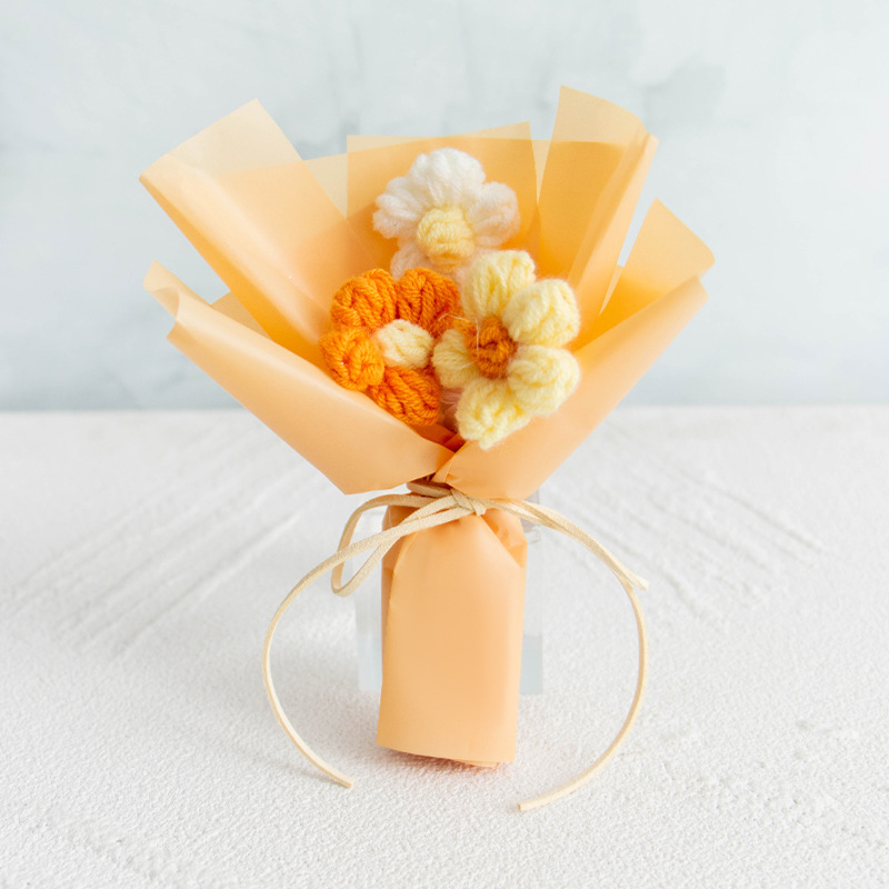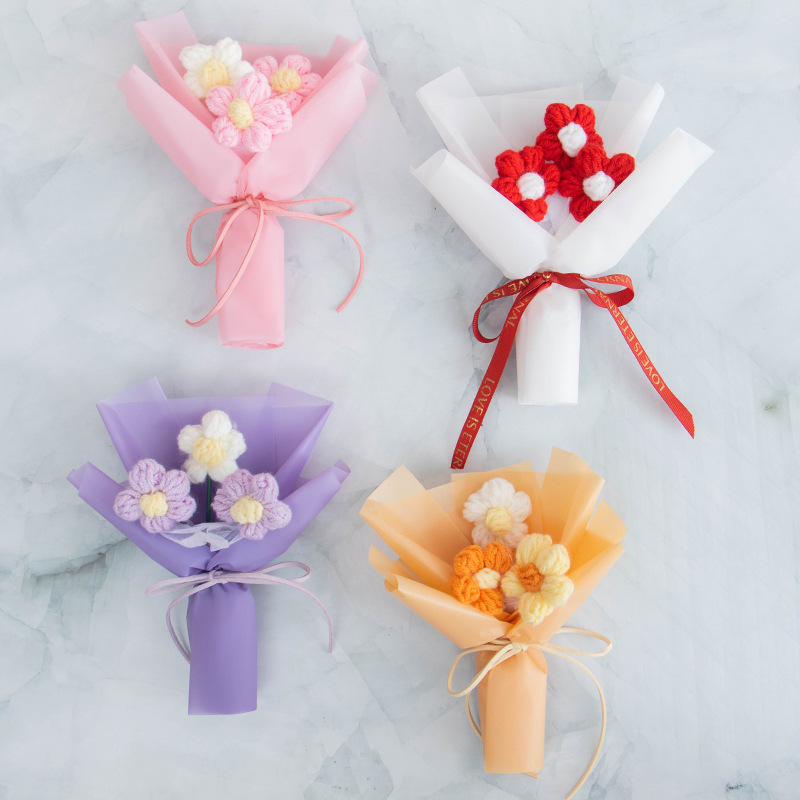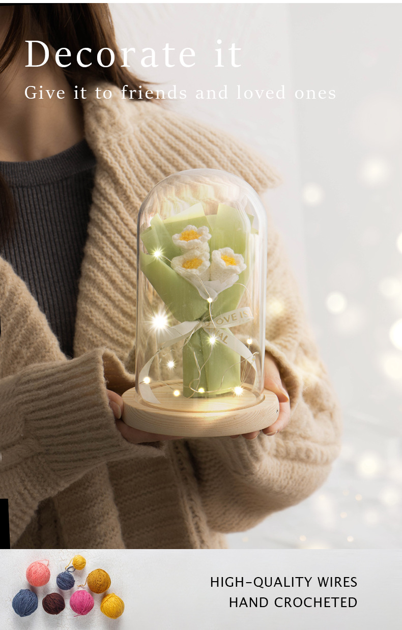 创意迷你装饰摆件花束毛线手工编织郁金香成品仿真花针织礼物花束