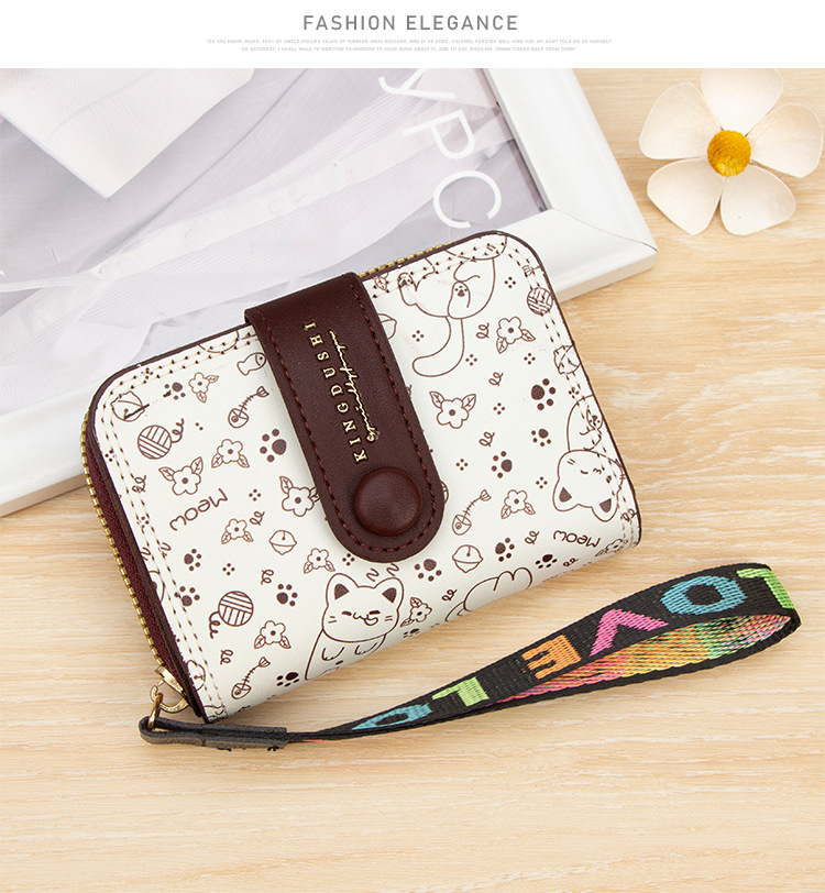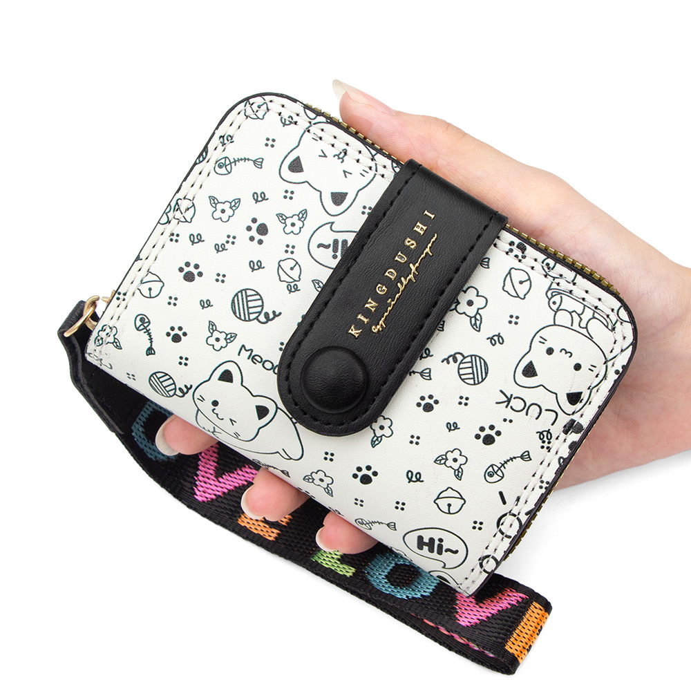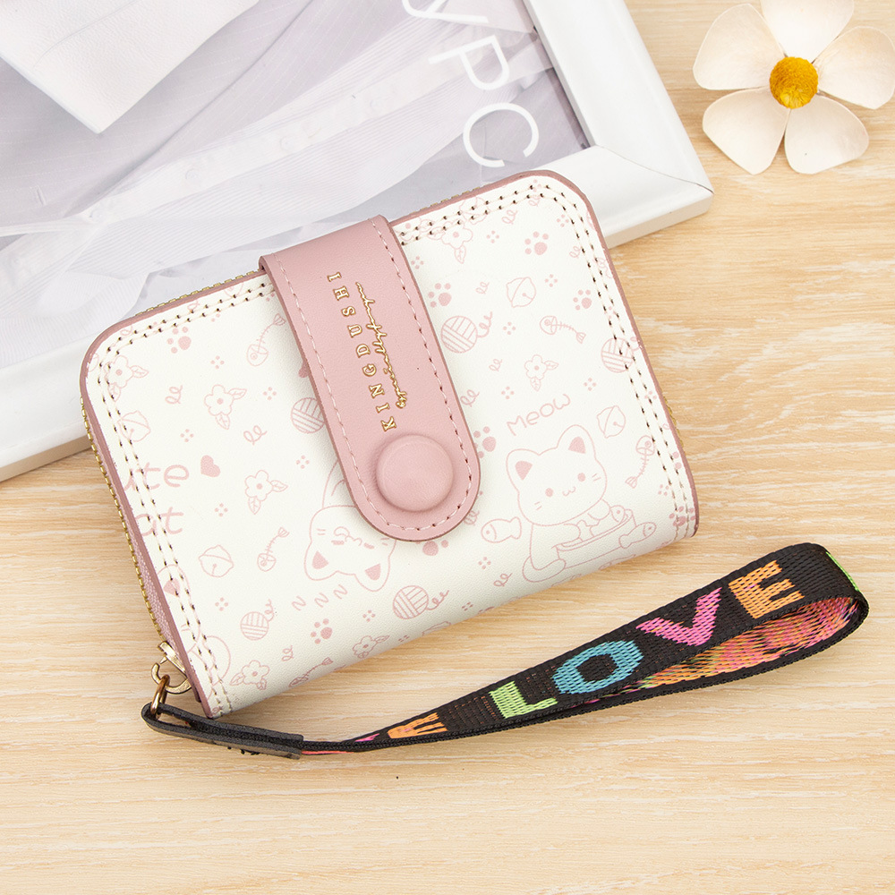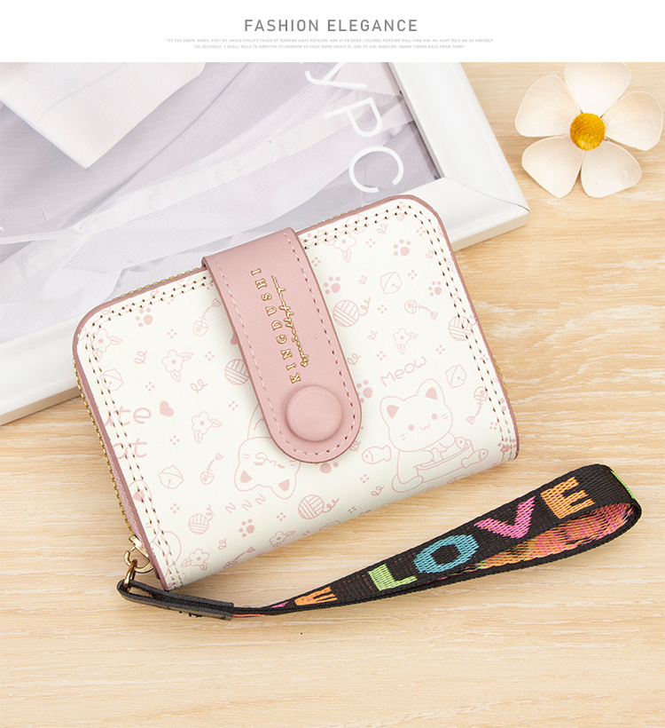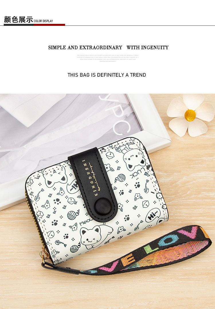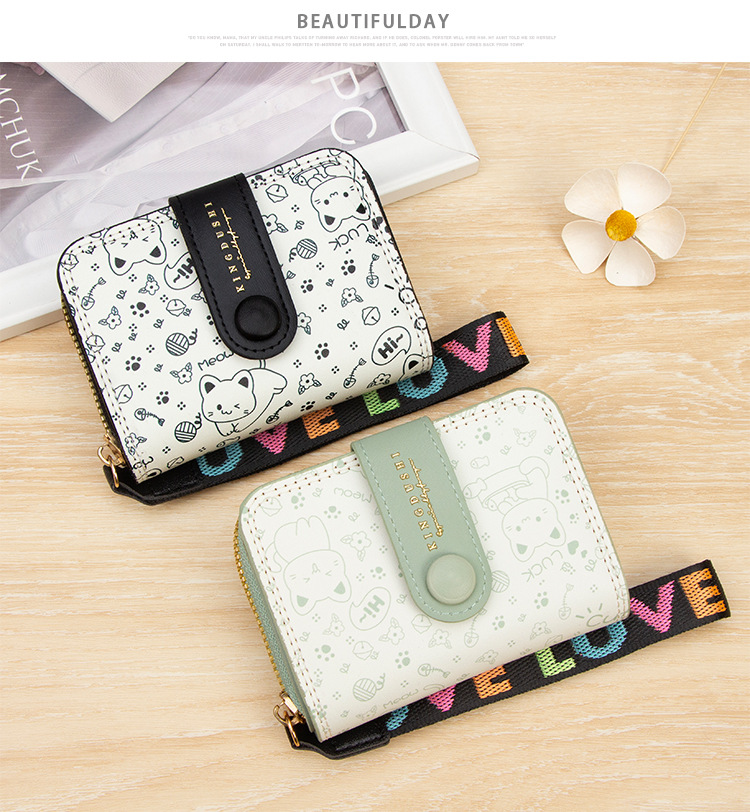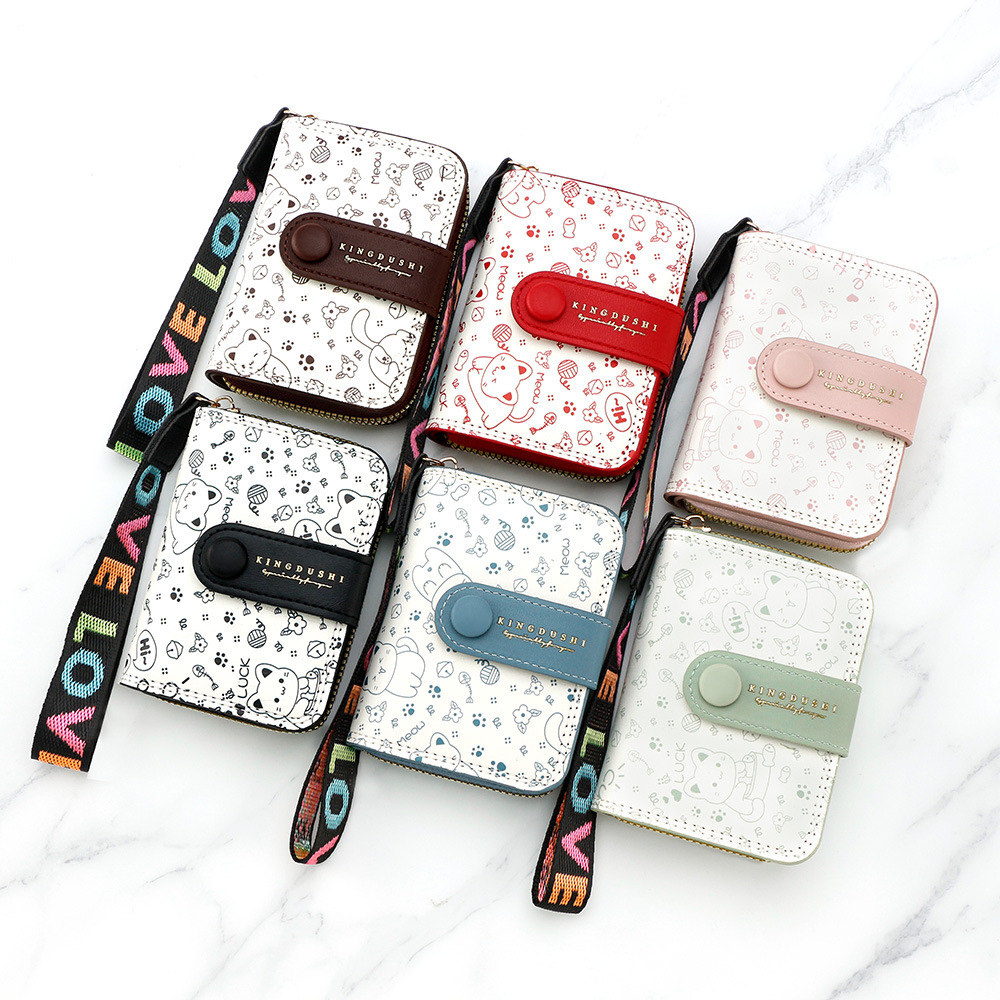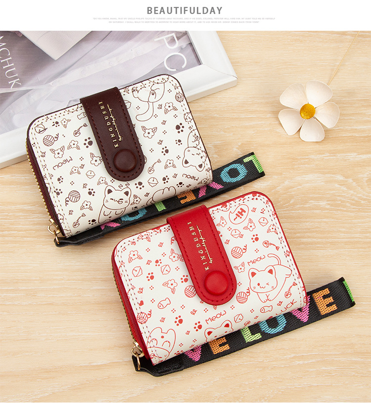 跨境简约可爱小猫日式女士搭扣风琴卡包手提带多功能卡片收纳包