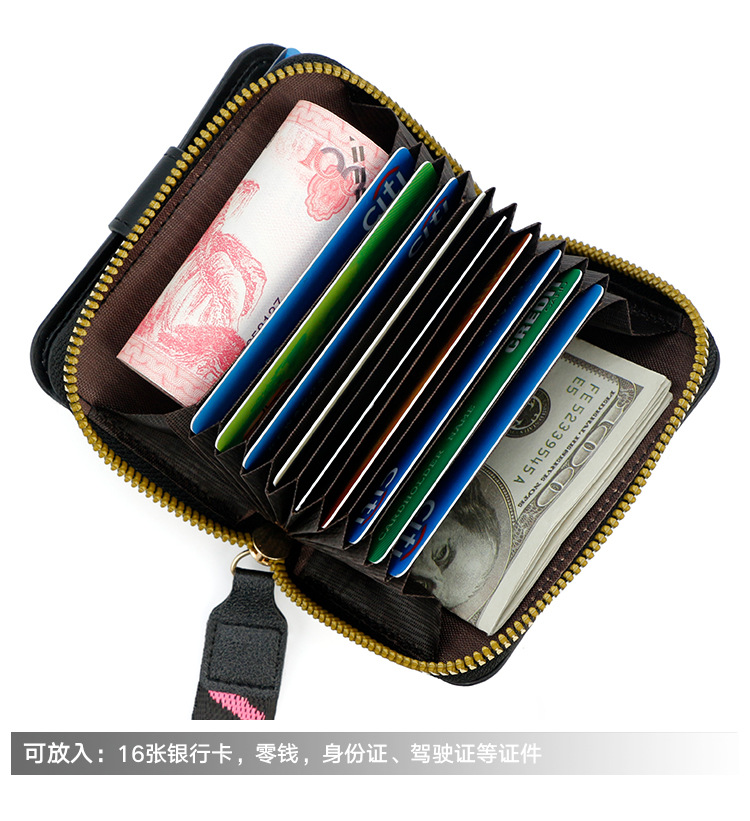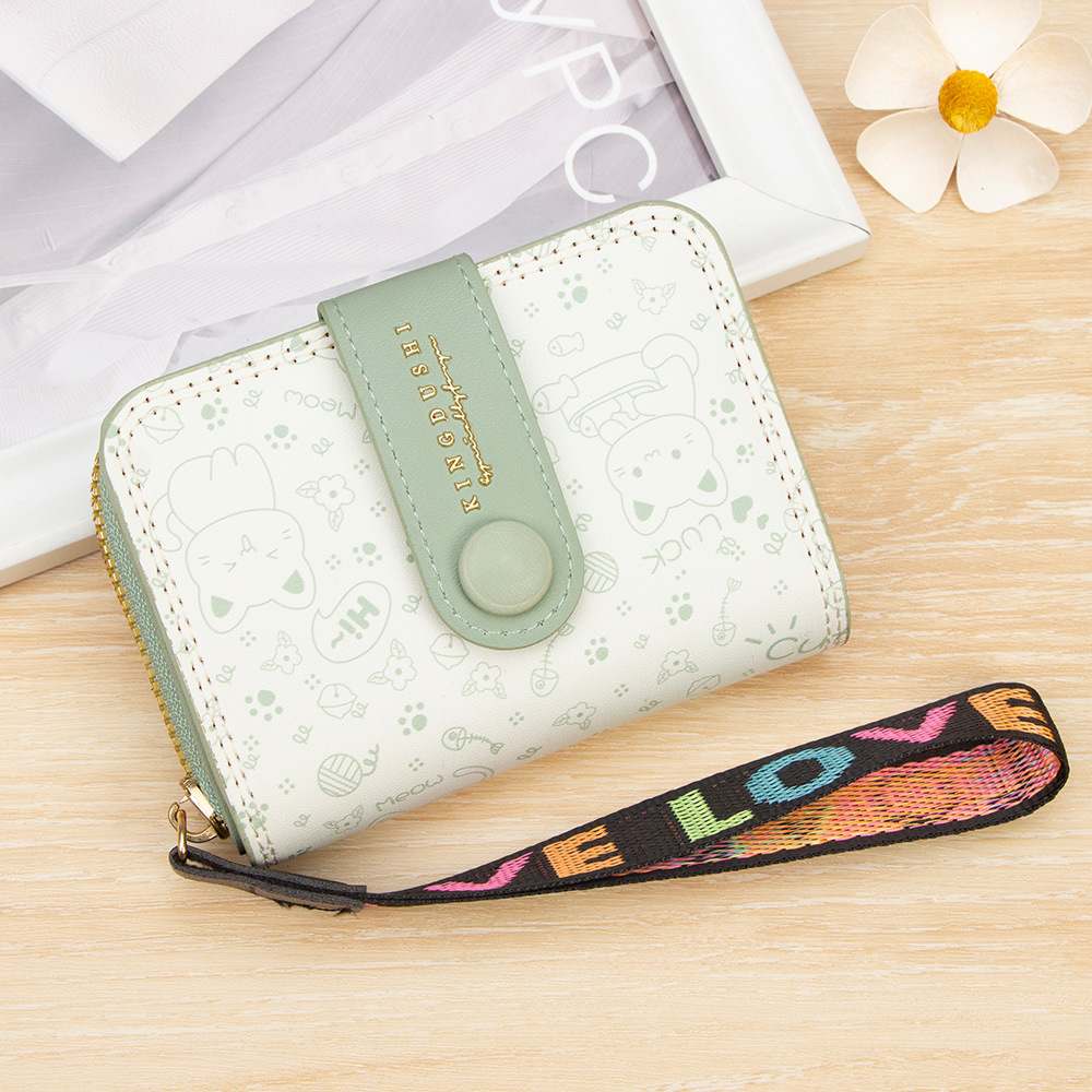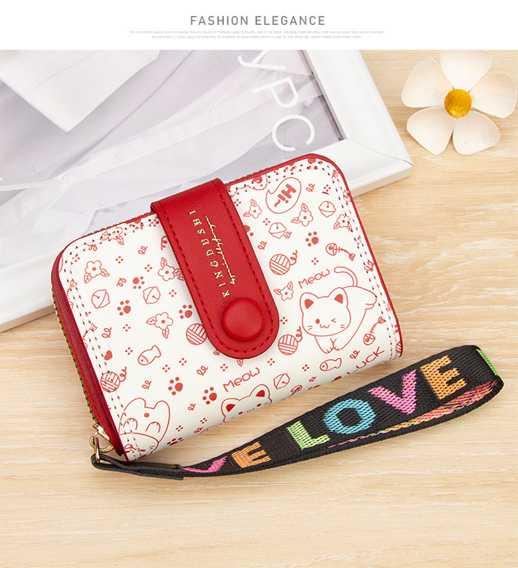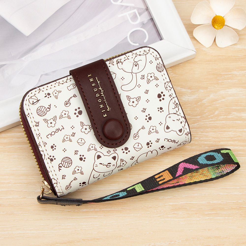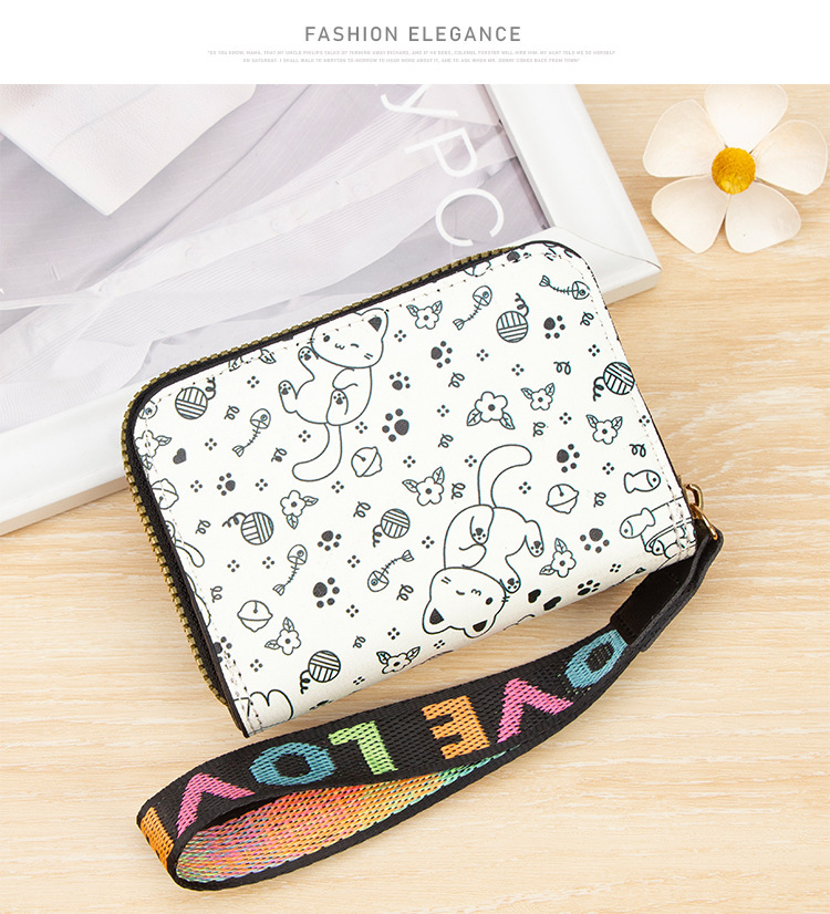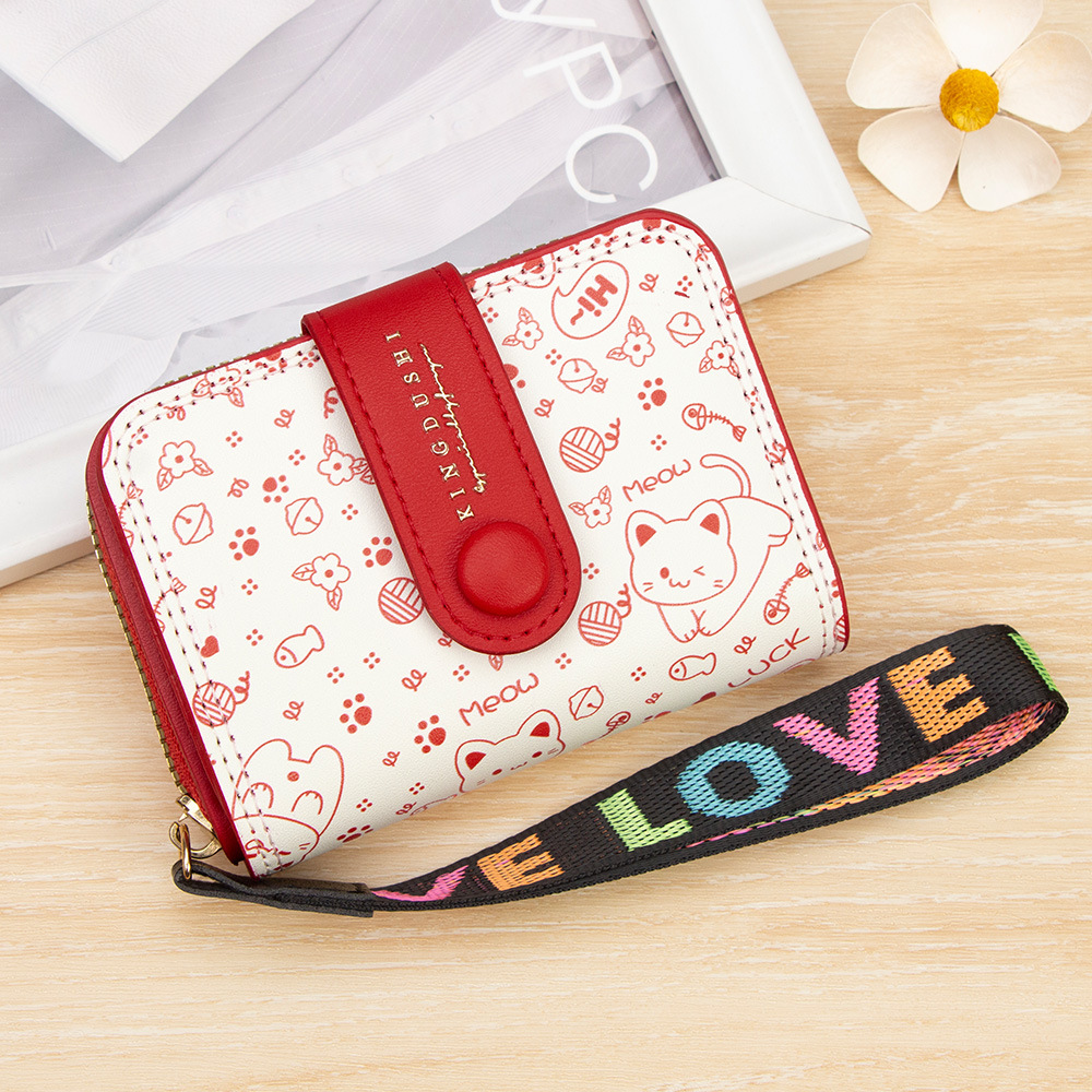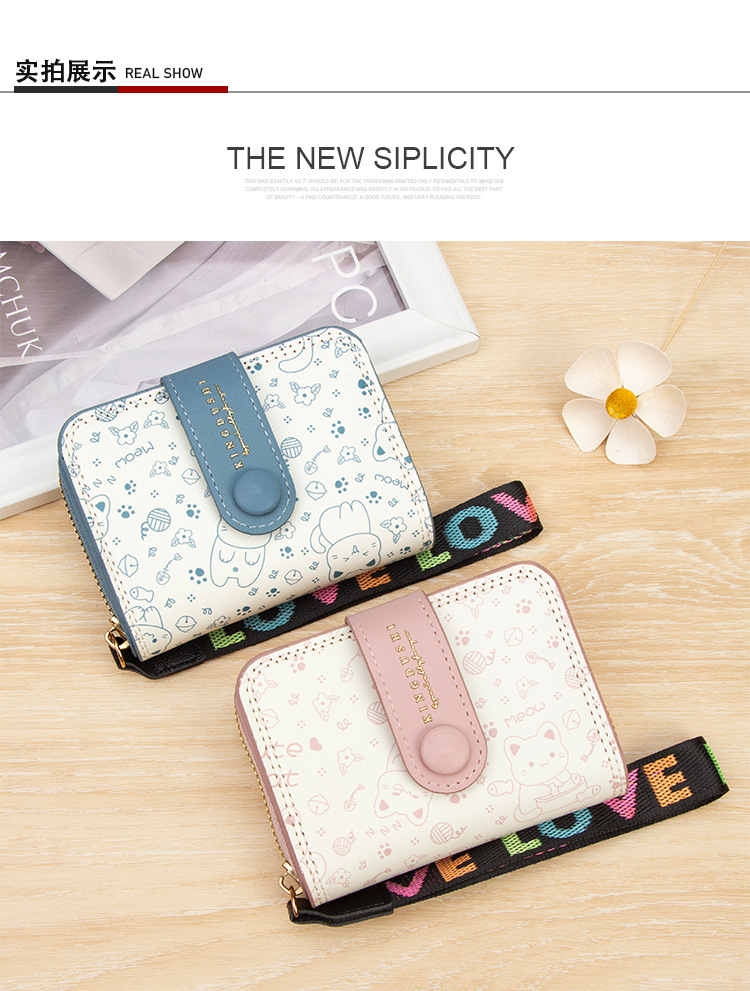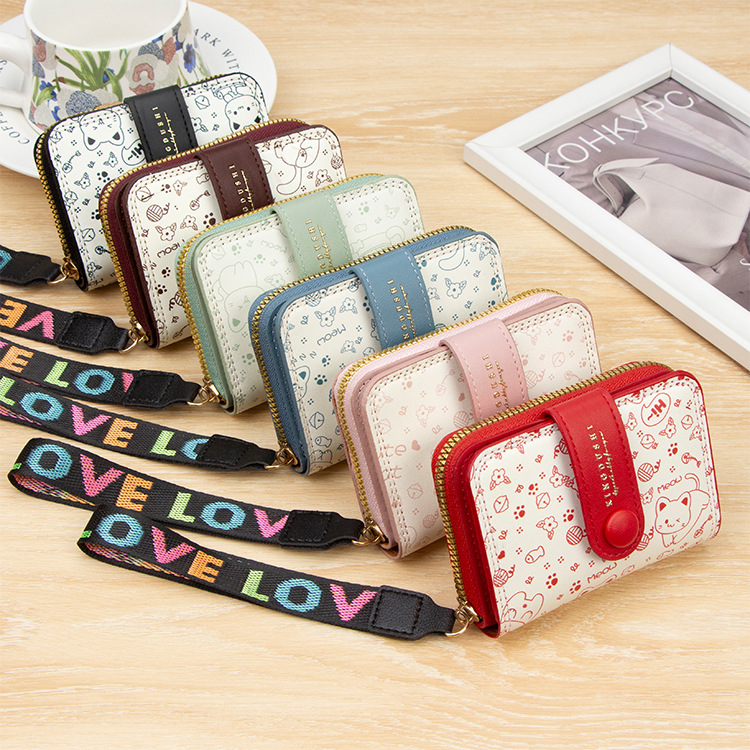 跨境简约可爱小猫日式女士搭扣风琴卡包手提带多功能卡片收纳包
