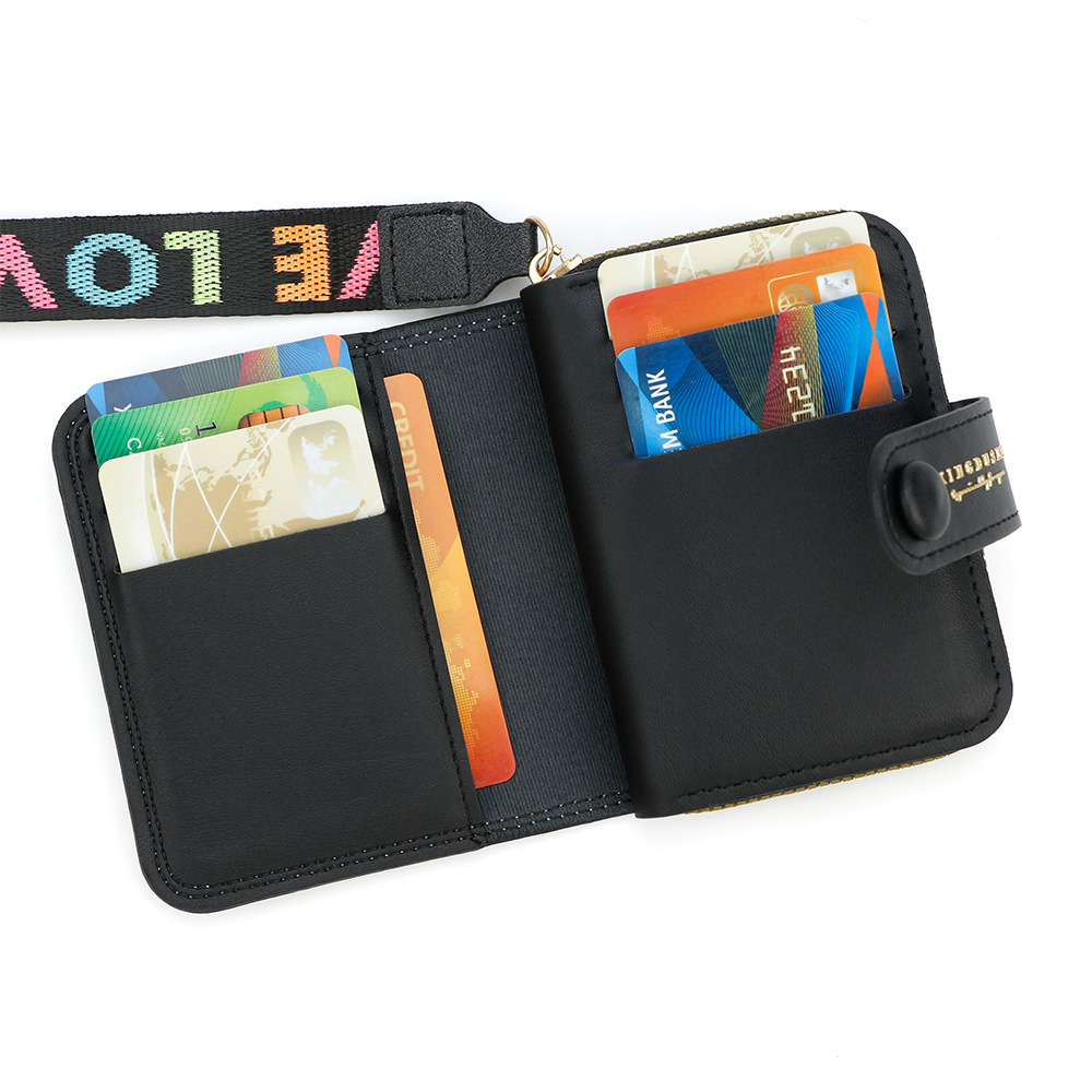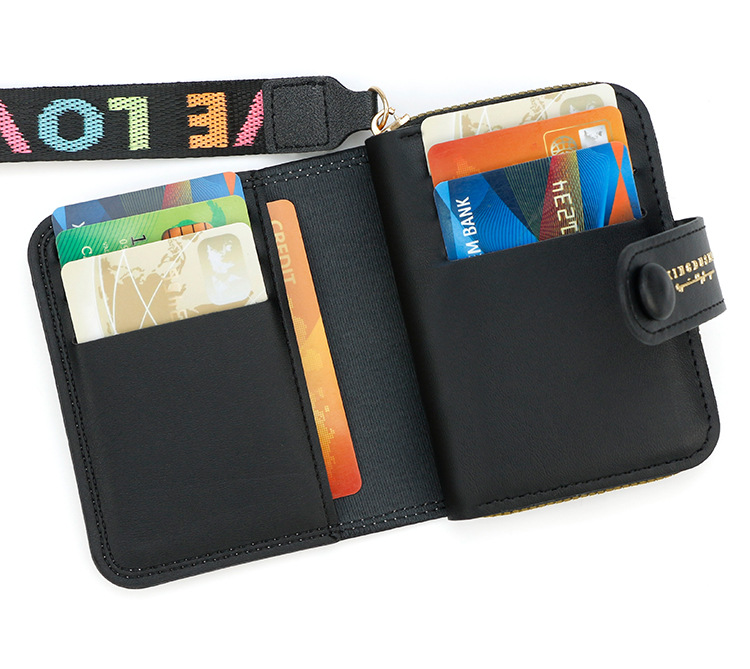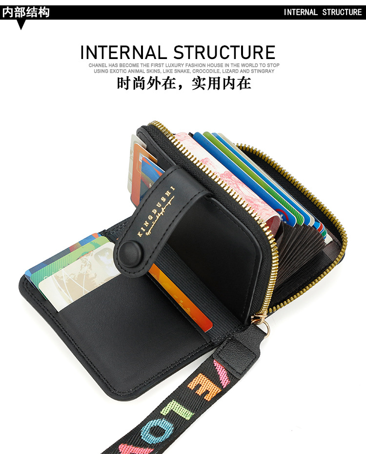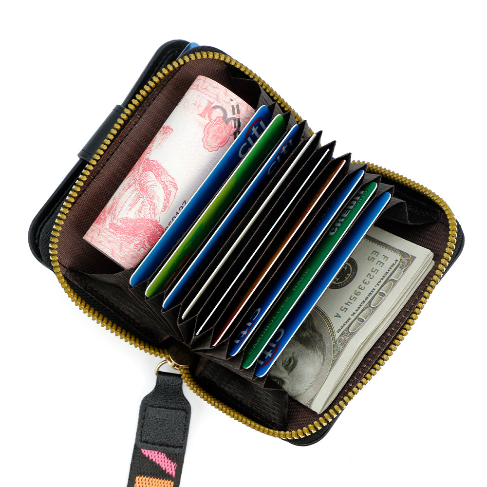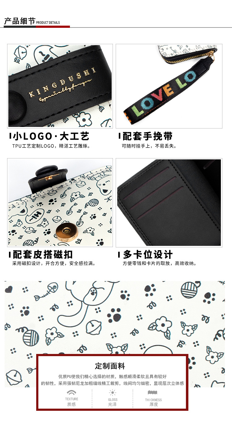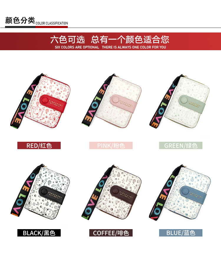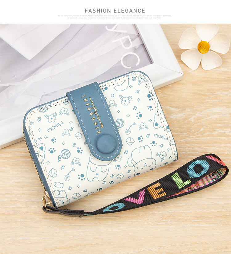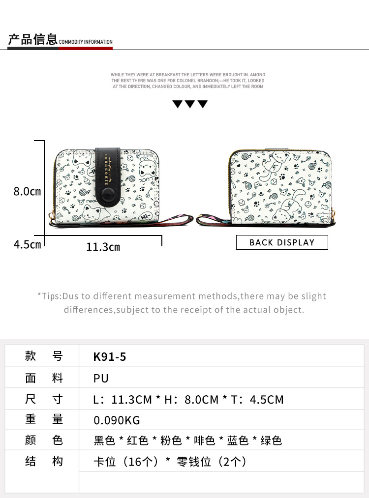 跨境简约可爱小猫日式女士搭扣风琴卡包手提带多功能卡片收纳包
