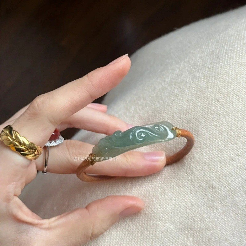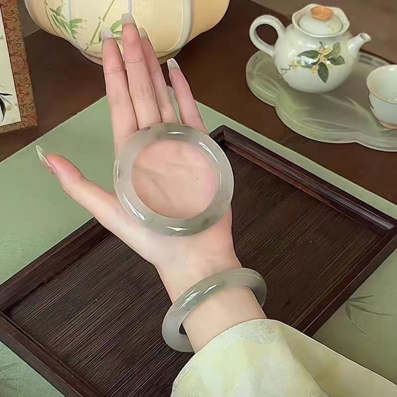 不知春上青山渐变翠绿手镯新中式清冷感小众古风气质简约仿玉手镯