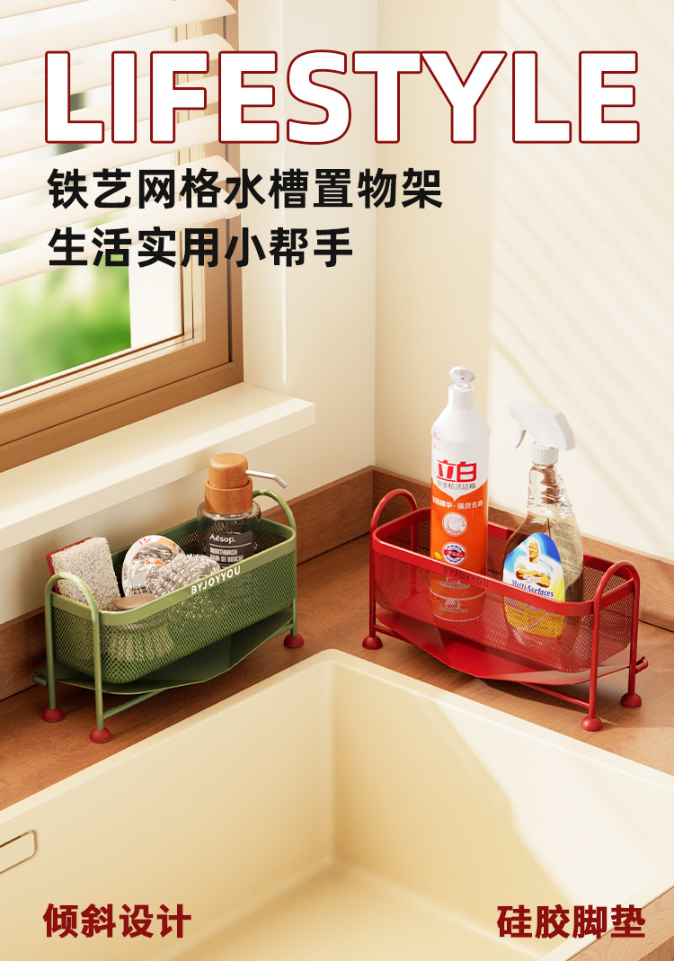 厨房台面水槽置物架抹布海绵洗碗擦钢丝球沥水架洗菜池窄边收纳架