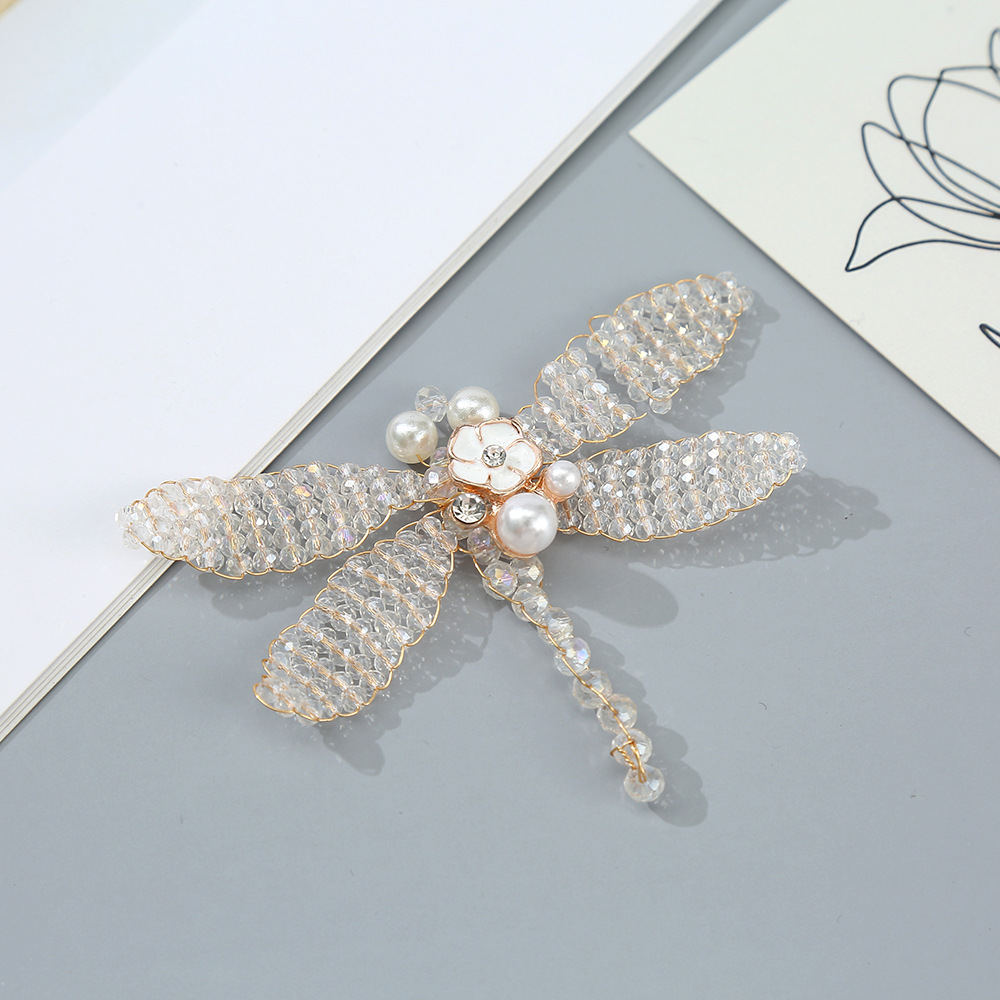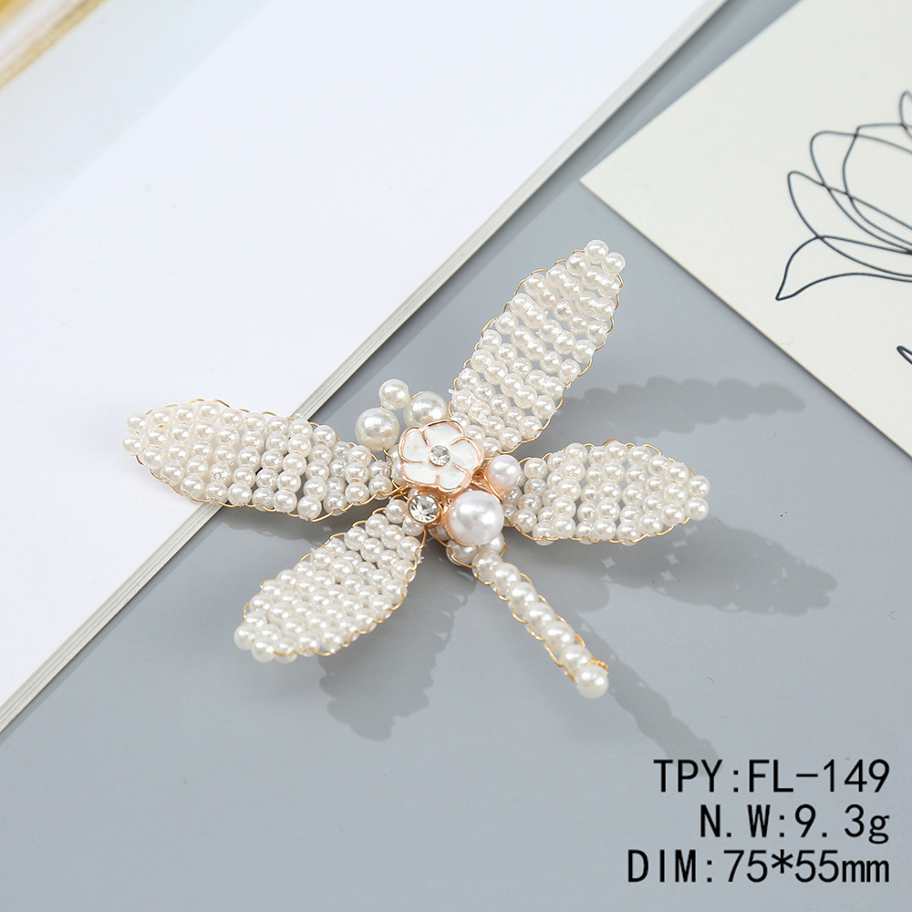 新款铜丝编织蜻蜓手工珍珠串珠蜻蜓diy胸针发饰发夹配件鞋帽装饰
