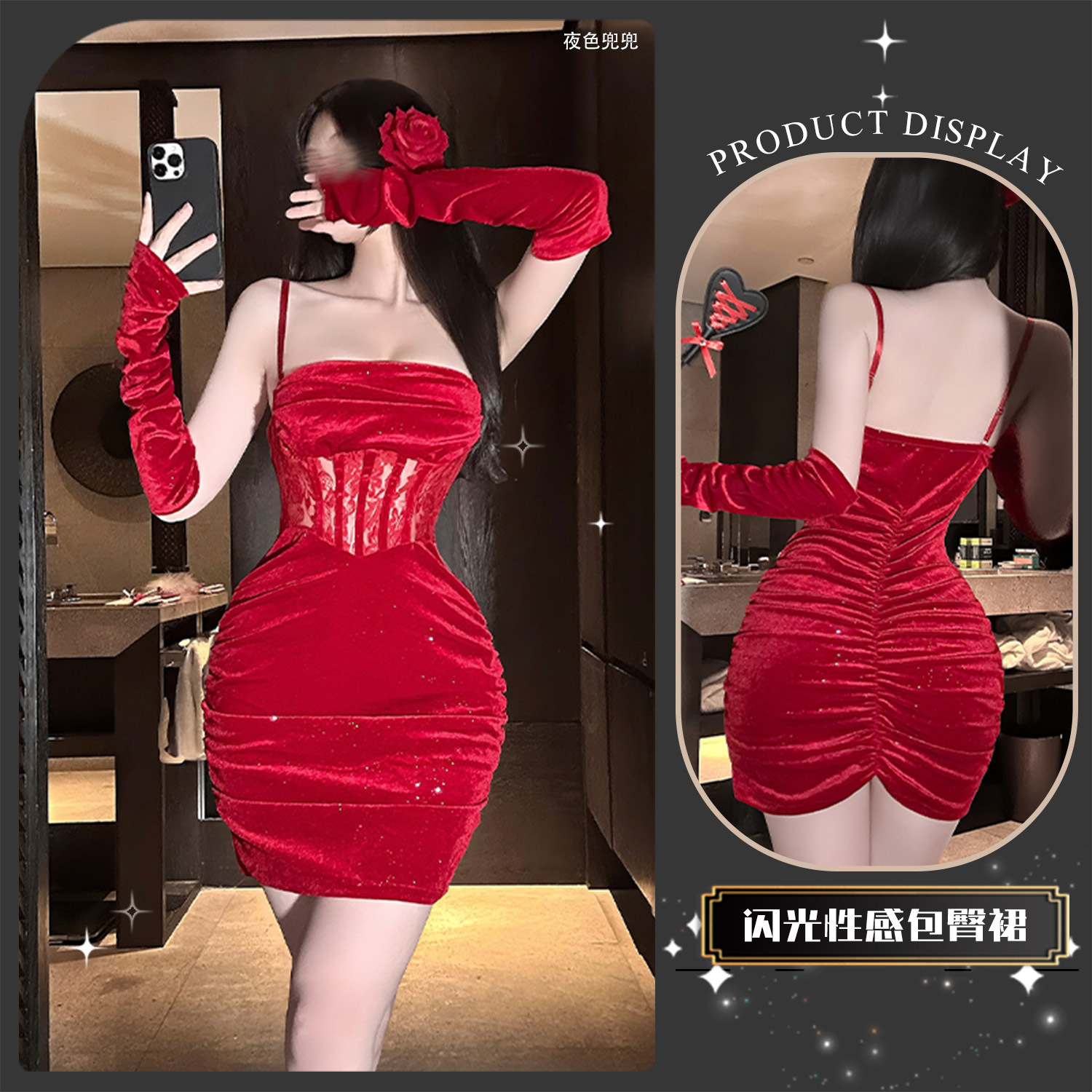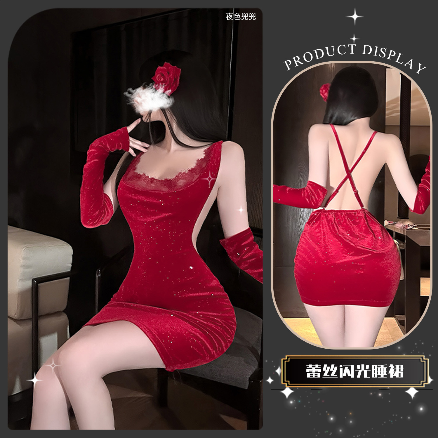 卿社情趣内衣新年款睡裙禁欲系包臀裙吊带抹胸蕾丝制服套装qqny女