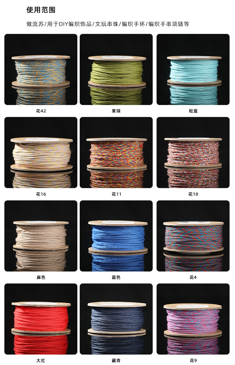 手搓棉绳创意多规格文玩线绳DIY饰品佛珠编绳材料彩色编制手串绳