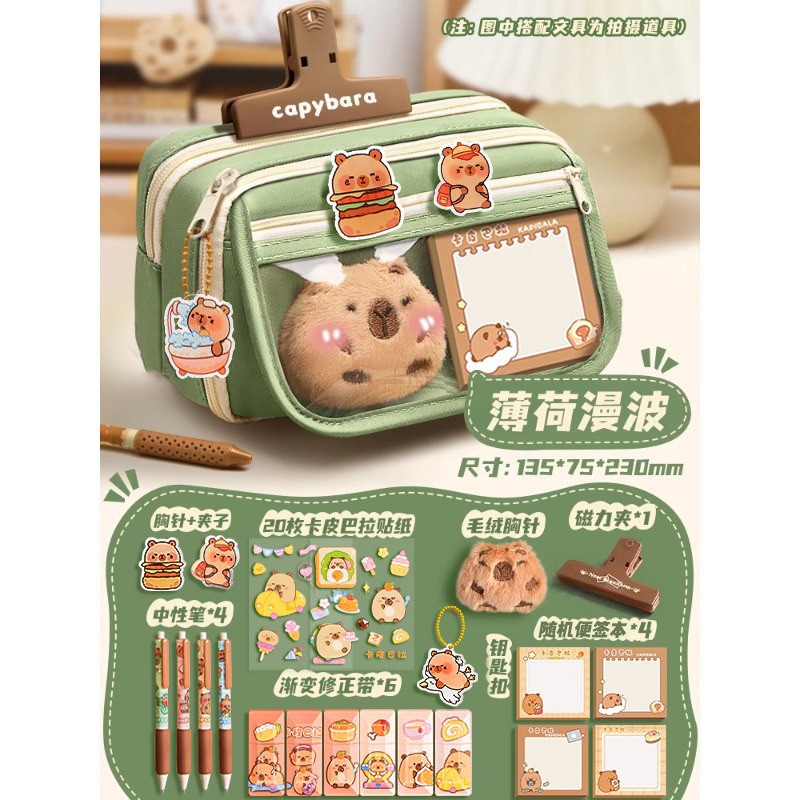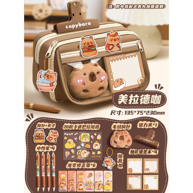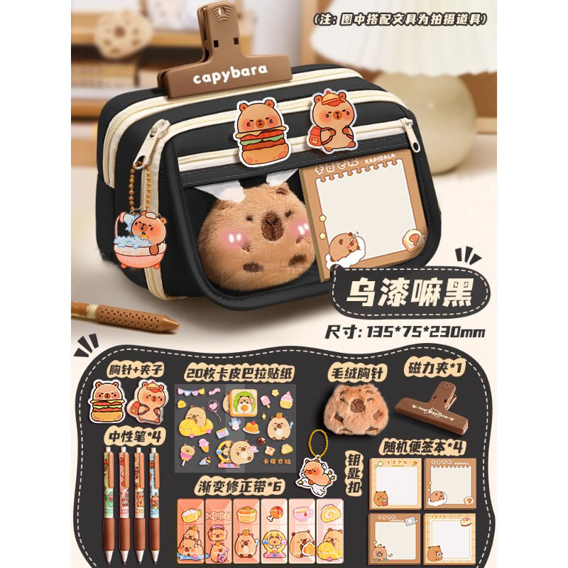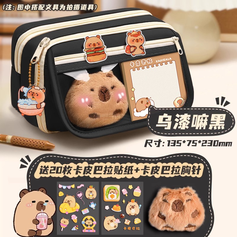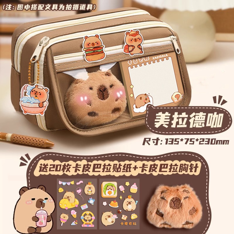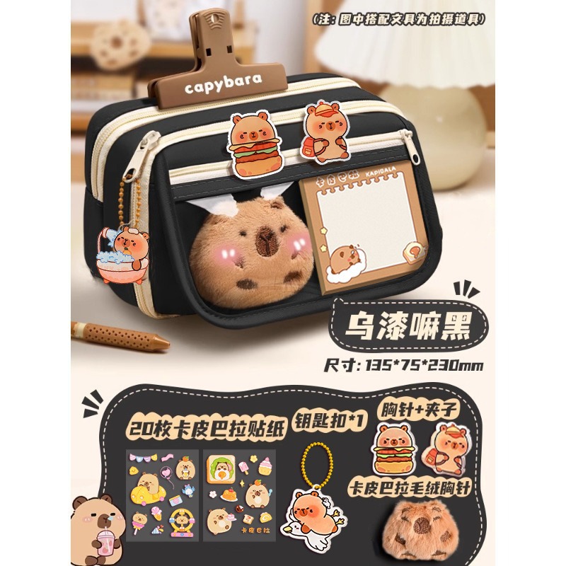 卡皮巴拉女小学生文具盒初中高颜值铅笔盒女孩儿童多层大容量笔袋