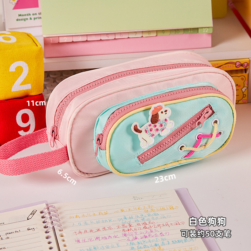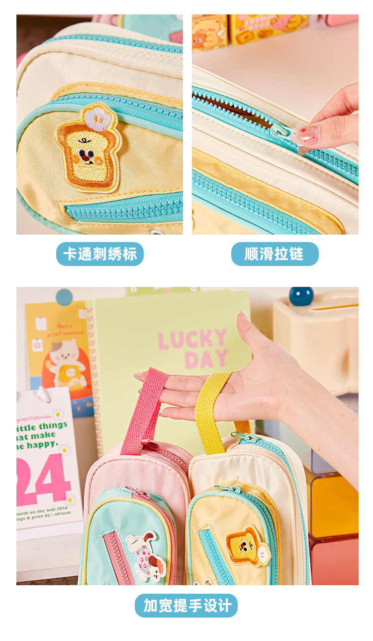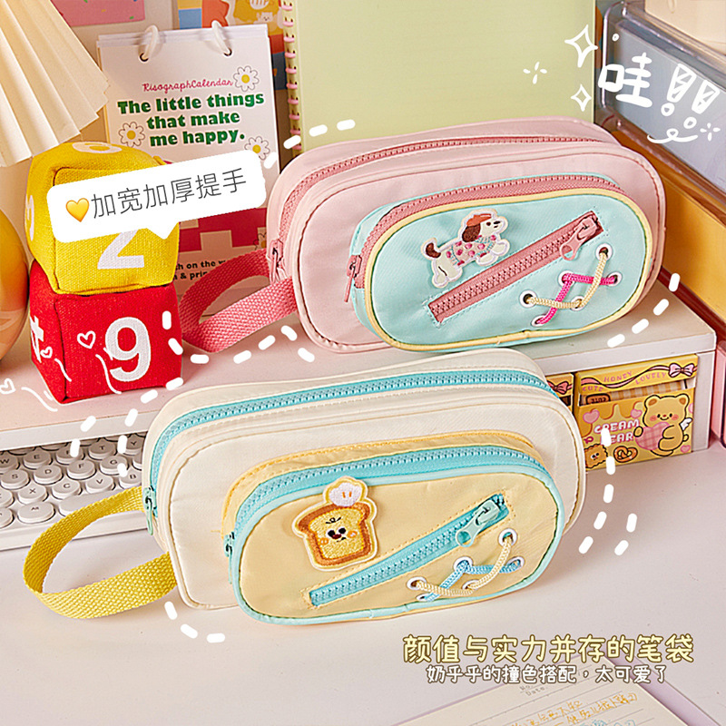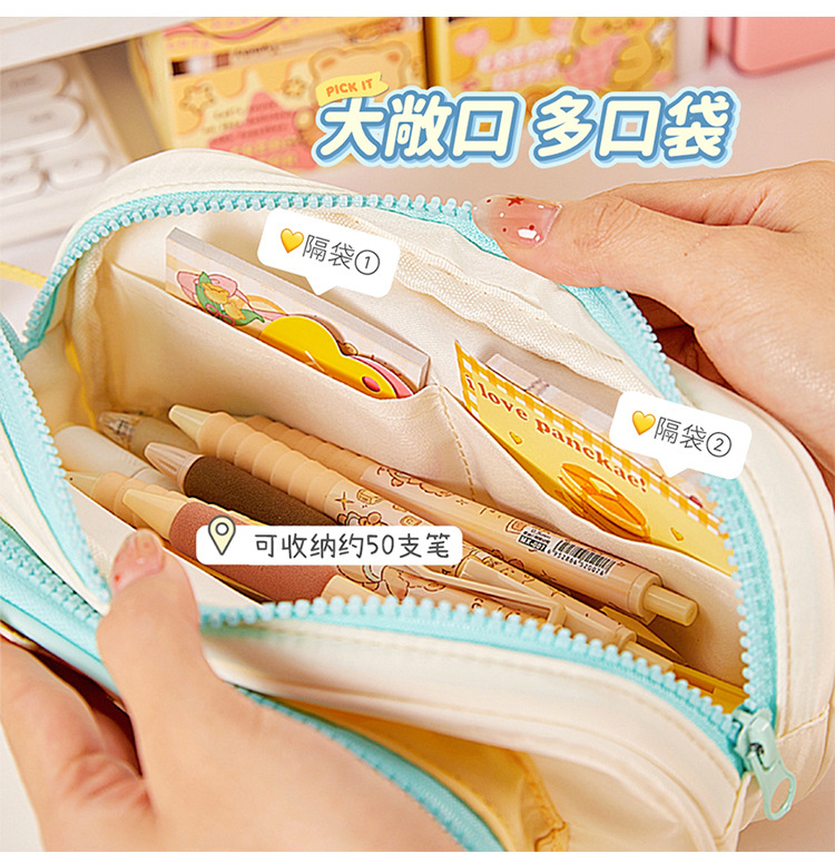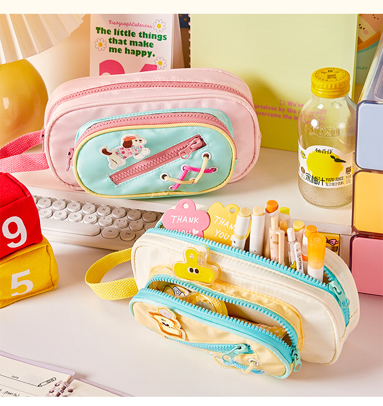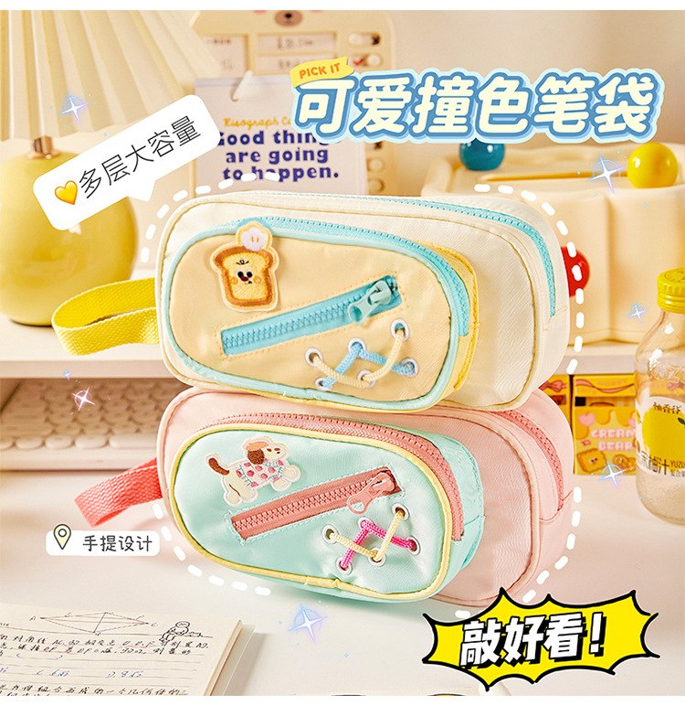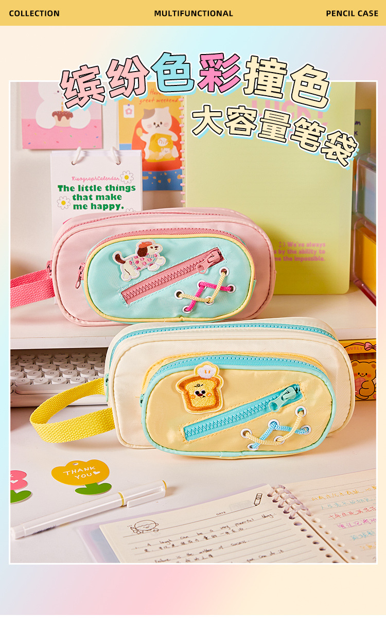新款多巴胺撞色笔袋学生高颜值可爱创意大容量铅笔盒小清新收纳袋