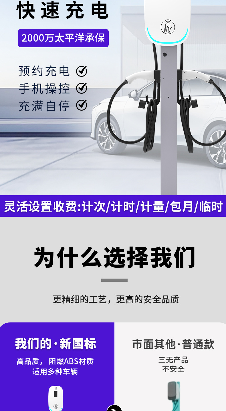 新能源汽车14kw双枪交流充电桩家用商用适配比亚迪特斯拉小米车型